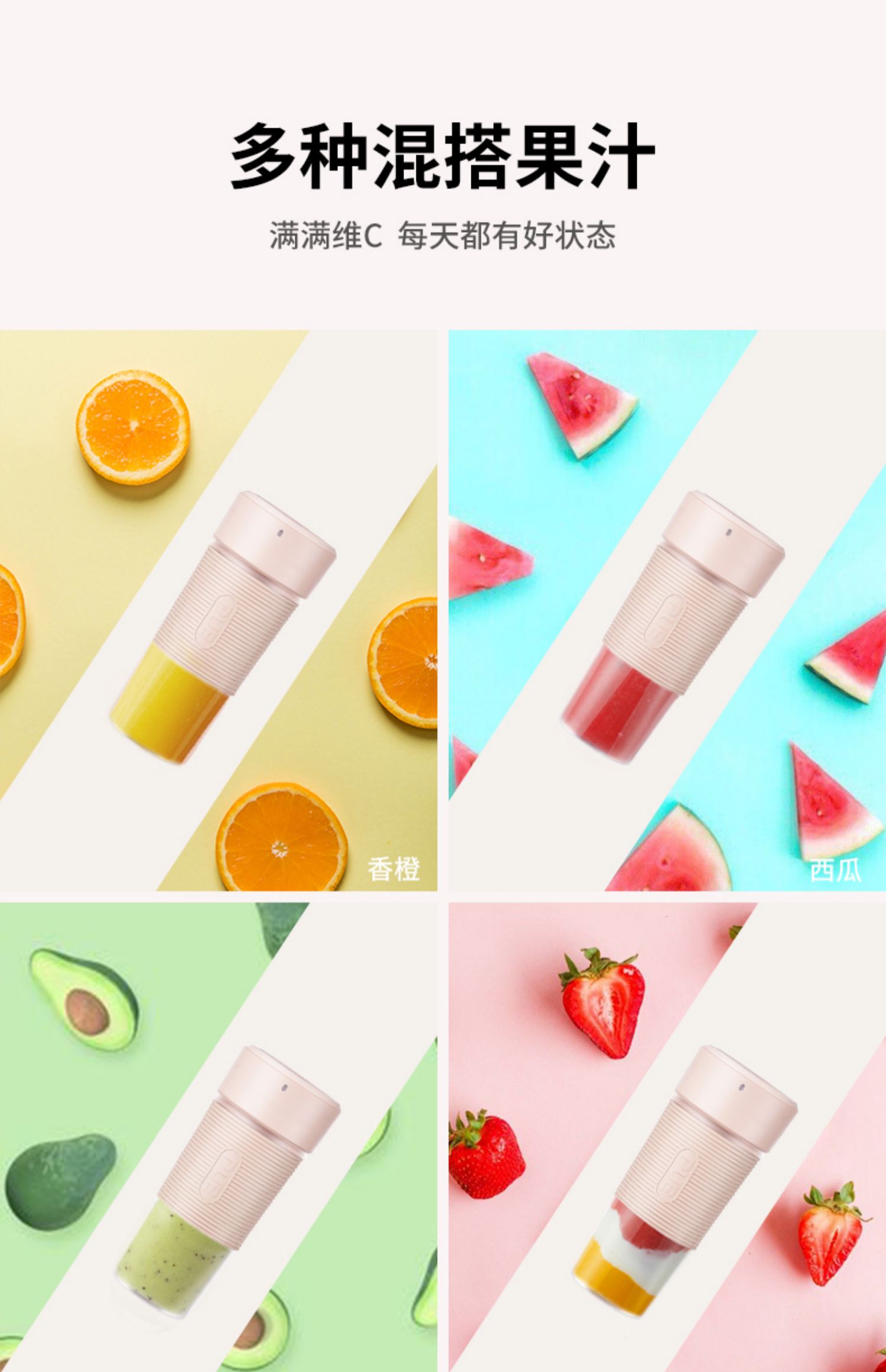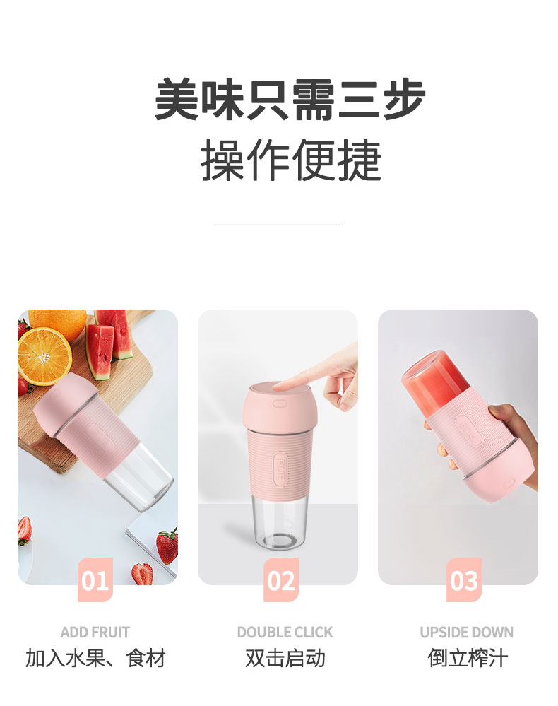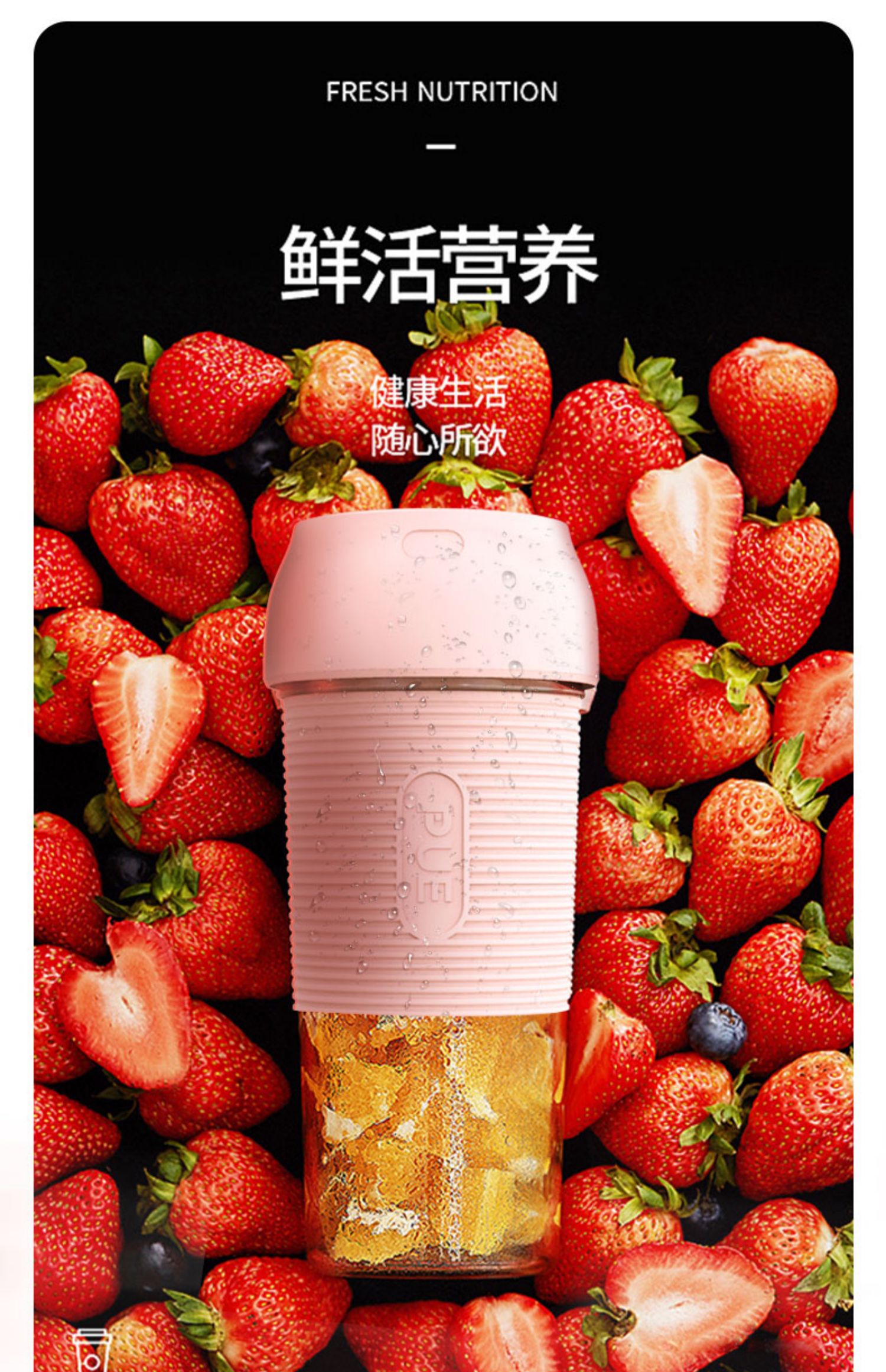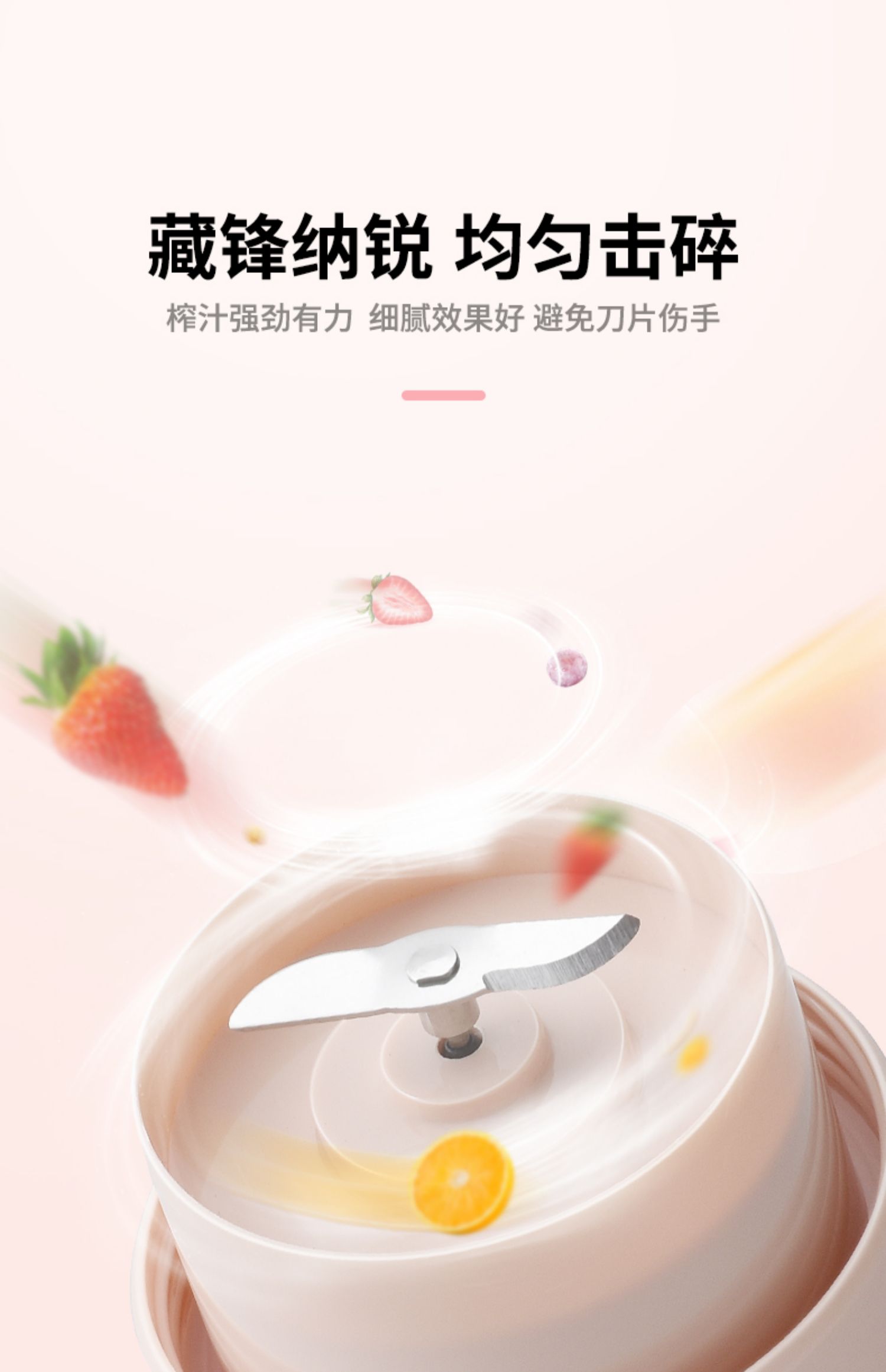 【火爆大卖,天猫促销,1年免费换新】搅打彻底,食品级材质的杯体,不爆裂,耐摔耐撞,一次充电约可榨10杯,长按两秒启动,快速榨汁,口感细腻顺滑