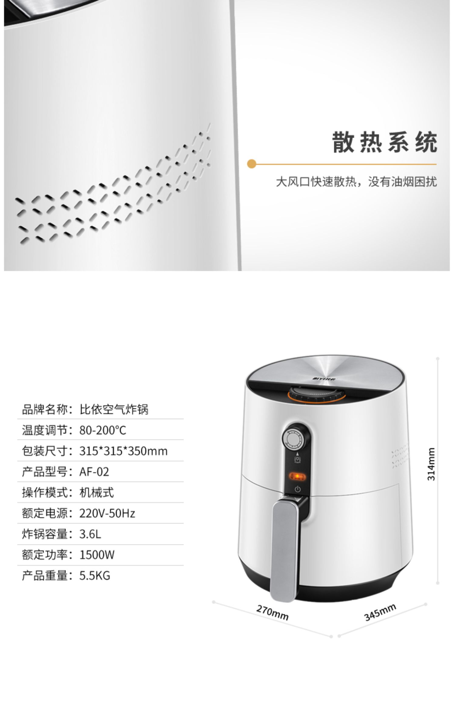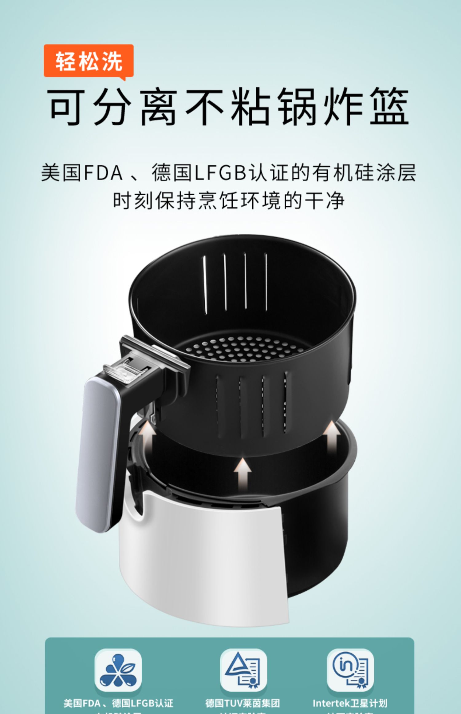 【赠运费险】宝宝吃着开心,妈妈用着放心。全新健康烹饪模式,360°热风加热,可分离不粘锅炸篮,轻松清洗,机械式操作简单,煎炸、烧烤、烘焙、满足你吃货的胃!