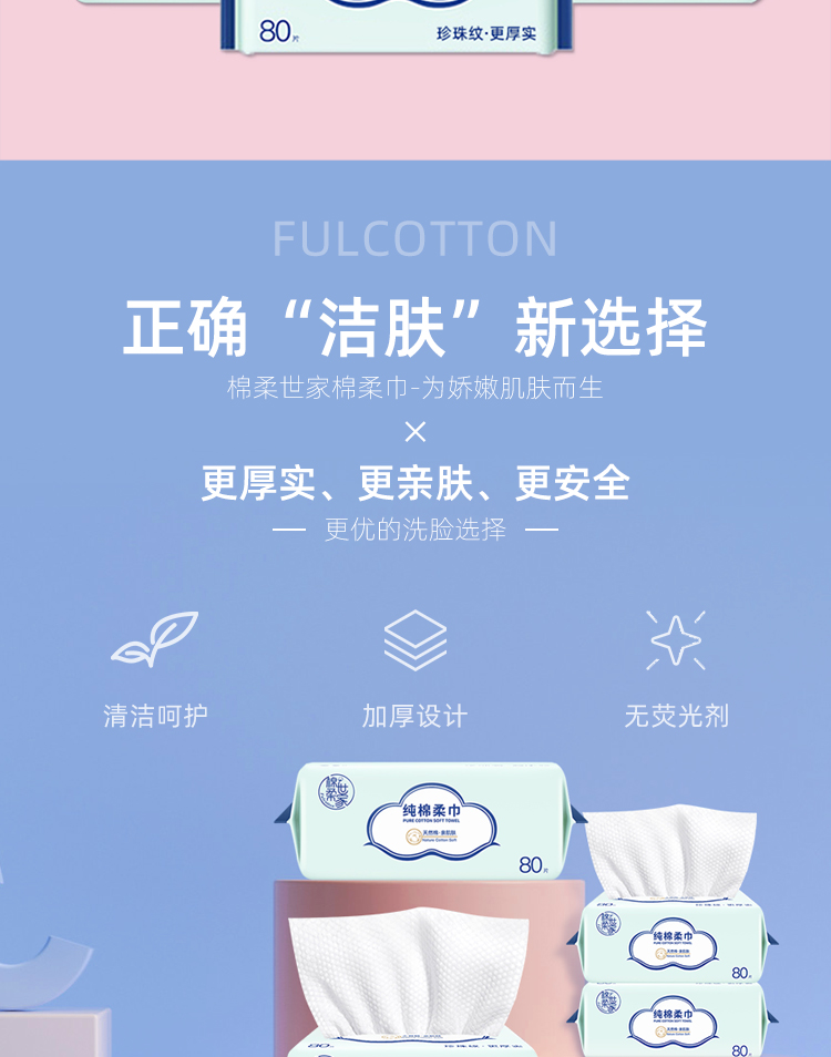 【下单立减44元,在返3元。到手24.9】Fulcotton棉柔世家,加厚珍珠纹棉柔巾,80抽6包洗面巾一次性洗脸巾快来抢购!