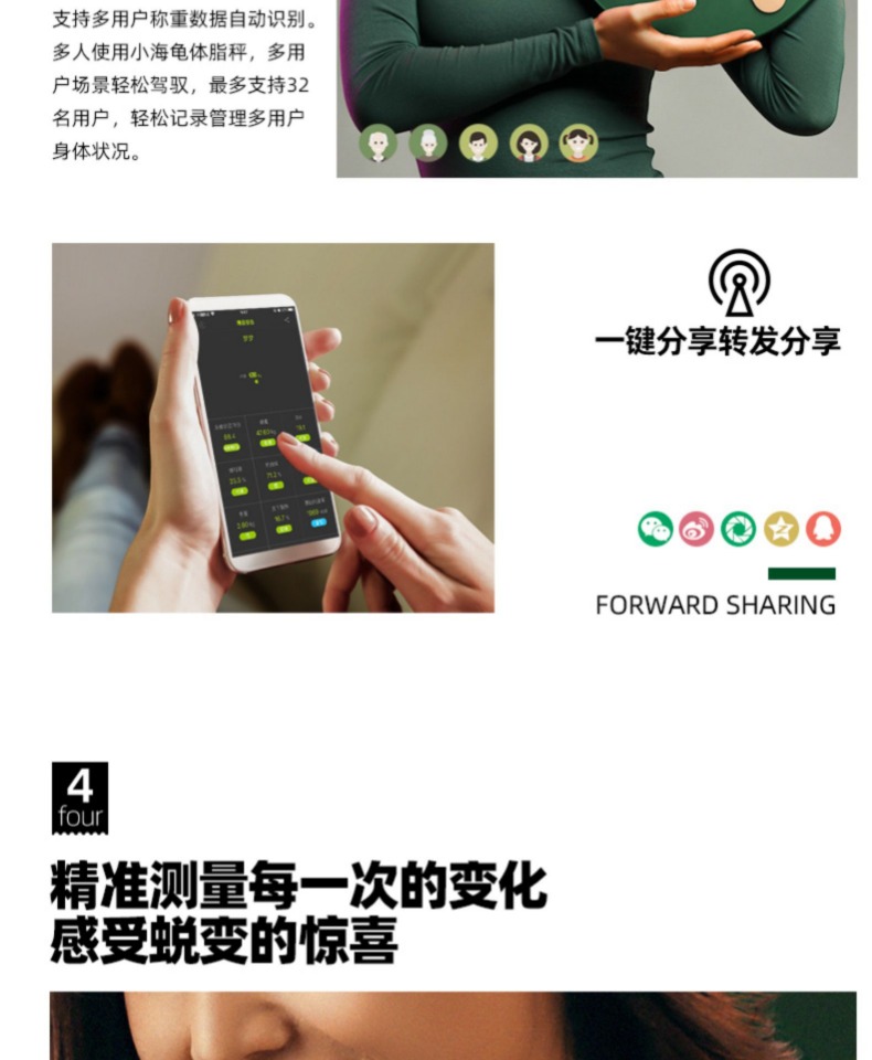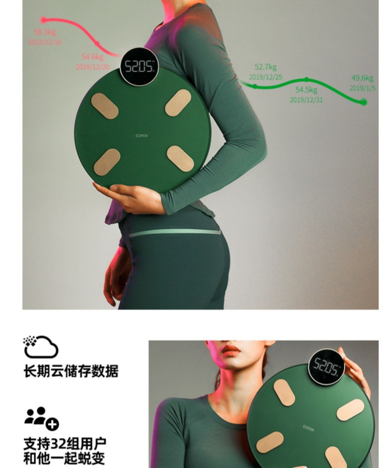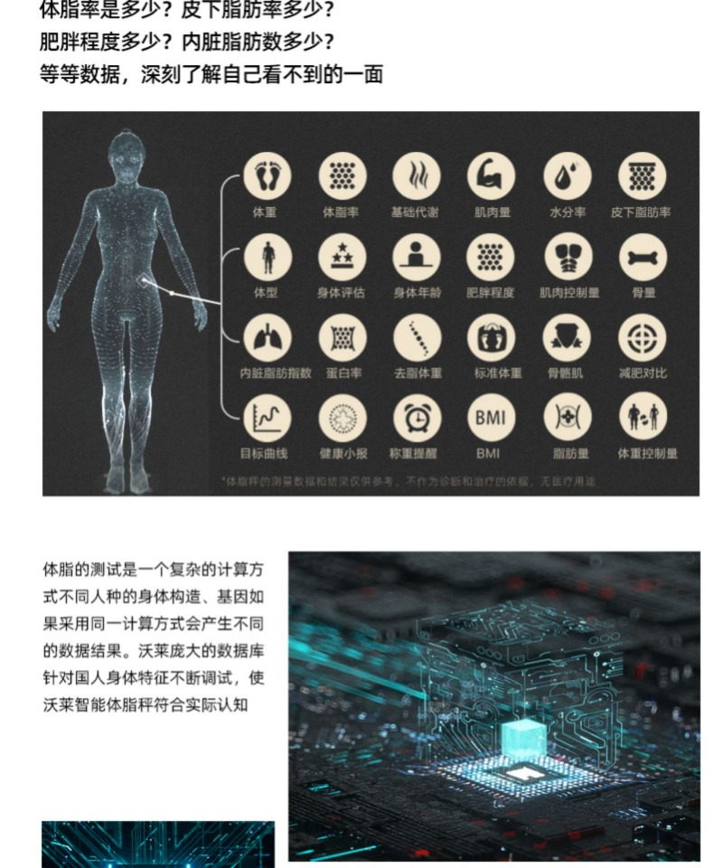 沃莱体重体脂称,手机蓝牙一键互联,操作简单;精准测量每一次变化。