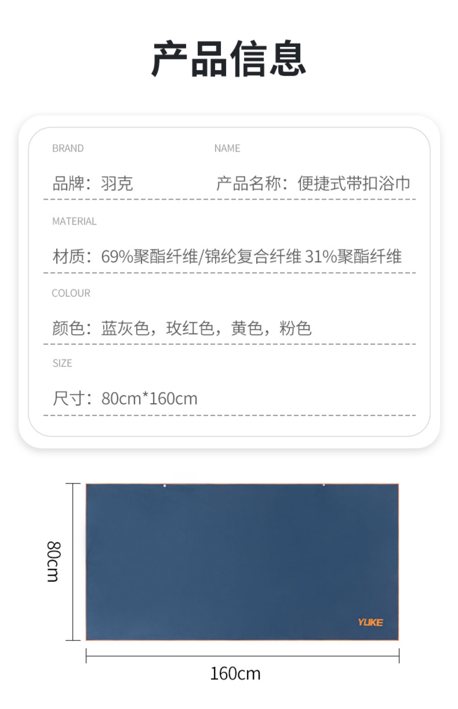 【羽克旗舰店】实力派运动用品,如少女般肌肤触感,至柔至轻,集颜值与实力一体,吸水快干,小巧便捷,不易起球,色彩尽在掌握,游泳、温泉、出差必备~