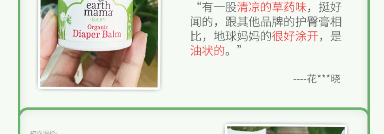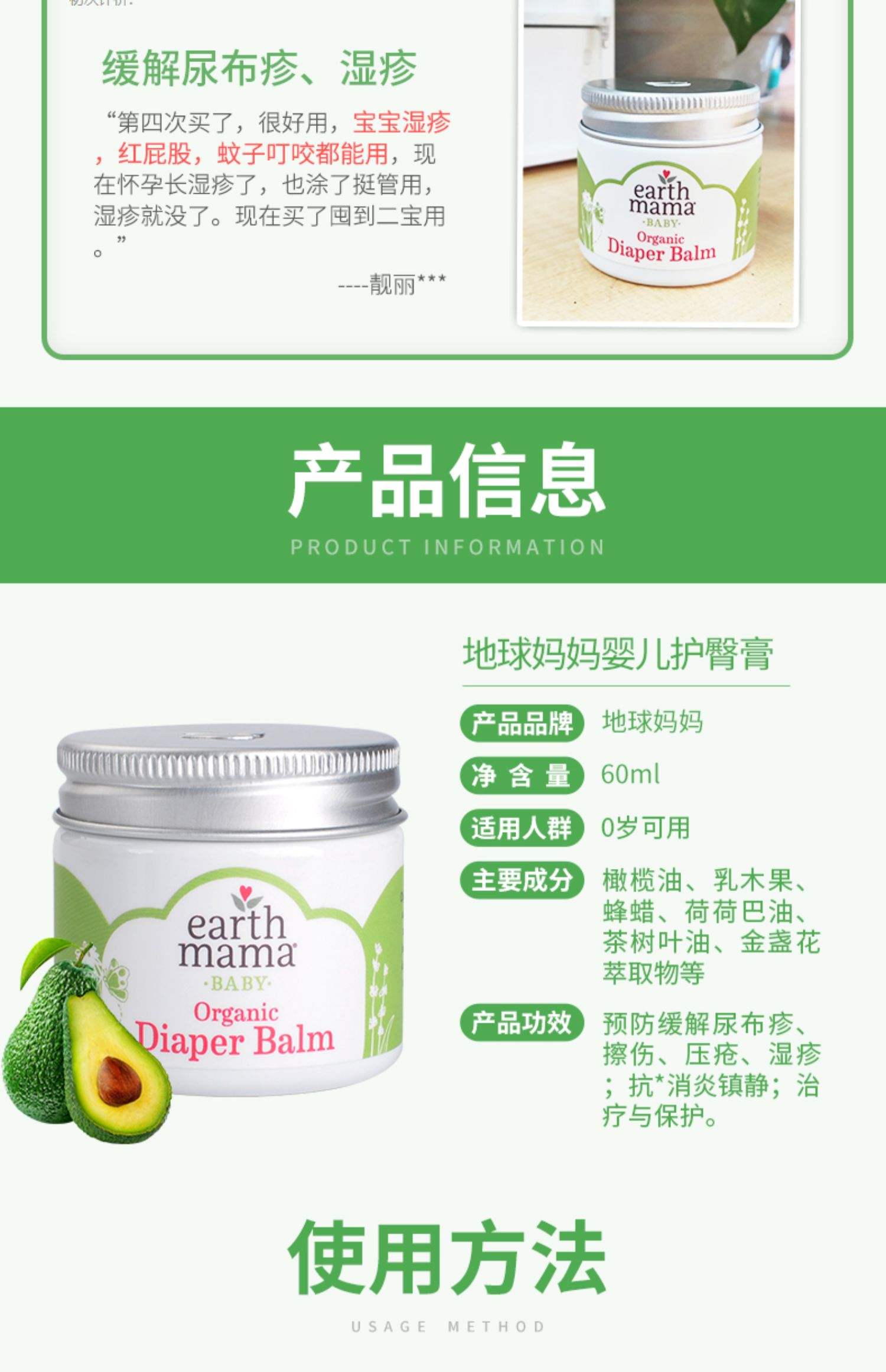 【小红书+明星宝妈都在推荐】美国EarthMama地球妈妈宝宝护臀湿疹膏,天然不刺激远离红屁屁。潮湿导致滋生细菌,尿布与屁屁的摩擦,闷热以及不及时清洗。专为宝宝研制,带给宝宝更安全的呵护【保税仓发货】