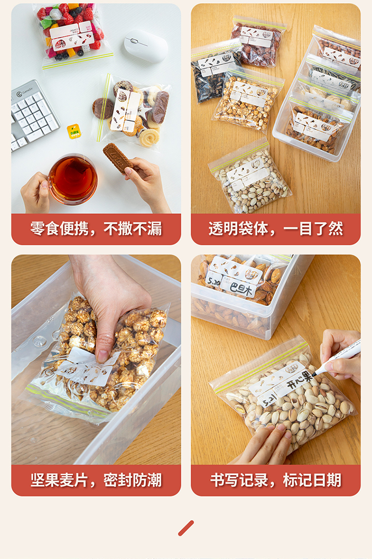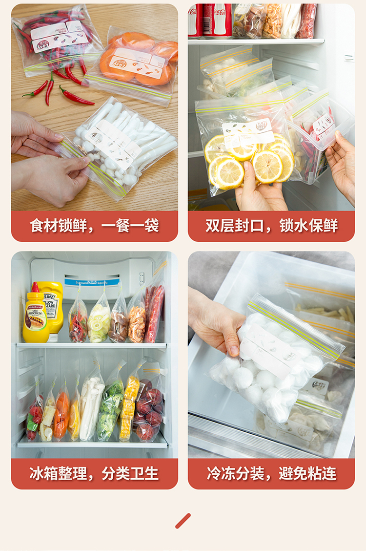 【下单领5元券,再返5元猫超卡,最终到手19.9元/65只,到手0.3元/只】猫超官方质检,专业出口23年国际品质,易优家严选进口食品级PE原料,,各达人及KOL推荐款,夏季冰箱专用食品级密封袋环保安全,可储存保鲜,分类收纳,重复使用,双道夹链更密封,家庭经济装更实惠!