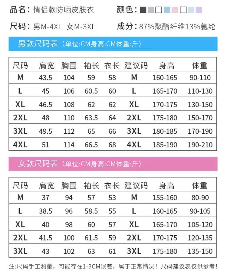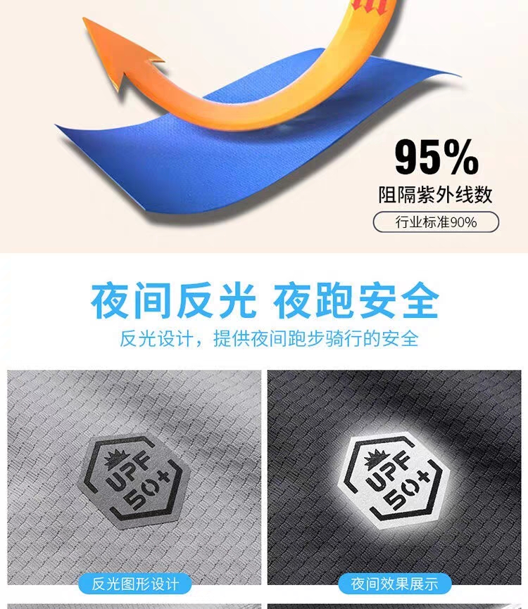 面料亲肤舒适,吸湿透气,四面弹力,抗皱不起球,柔软舒适,弹力大不紧绷运动零束缚,UPF50+有.效阻挡紫外线!