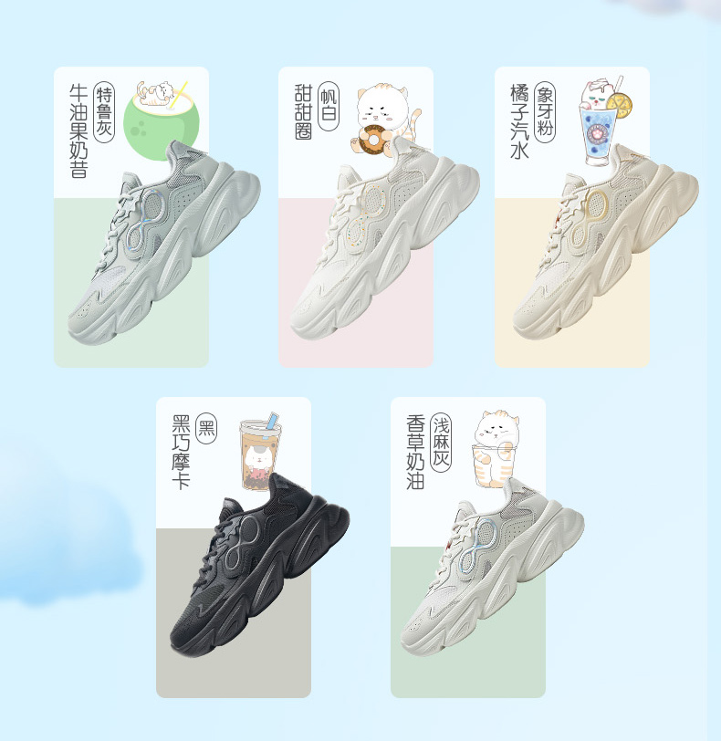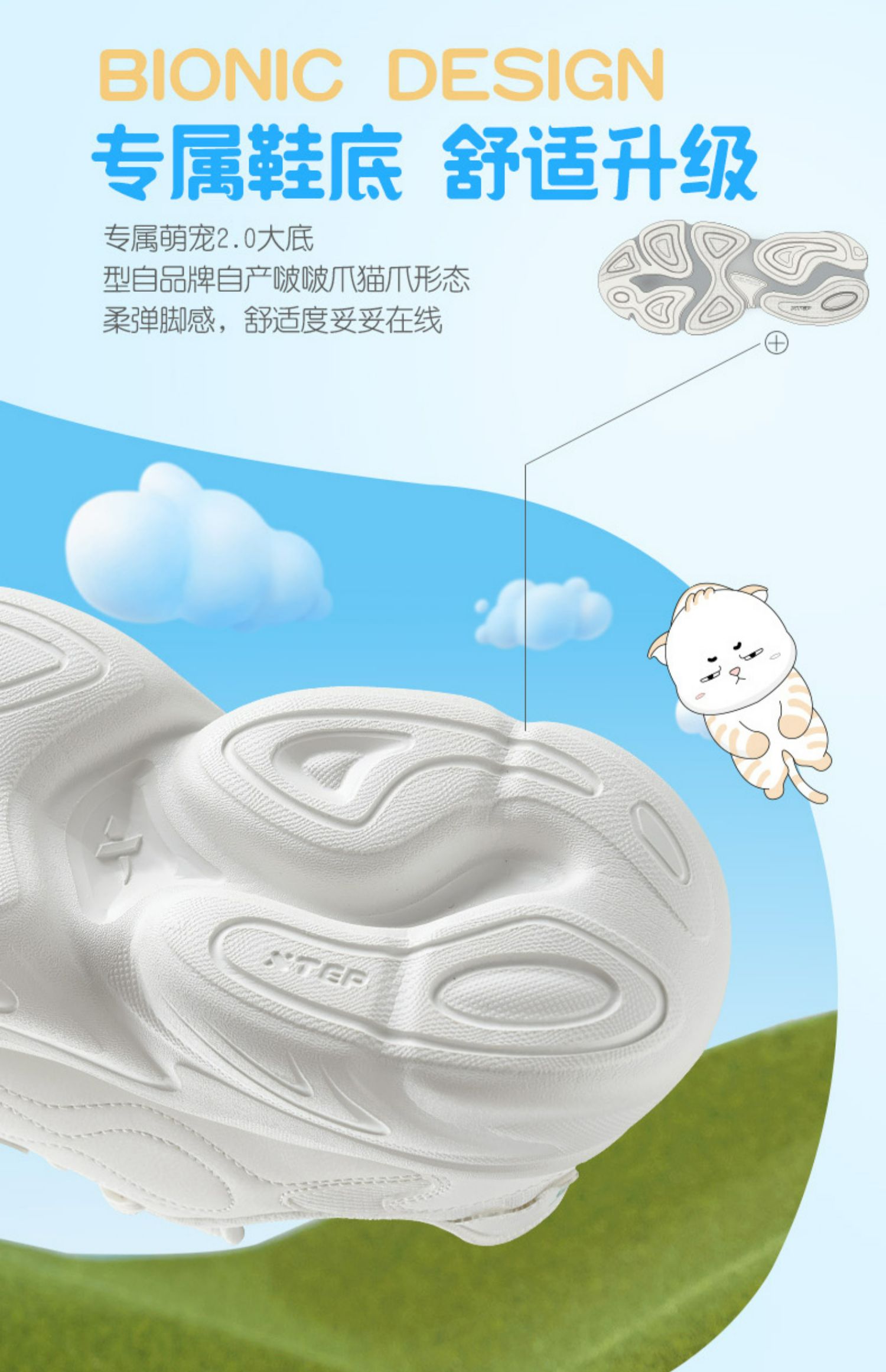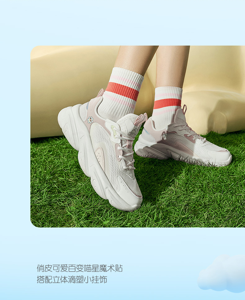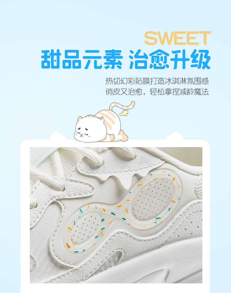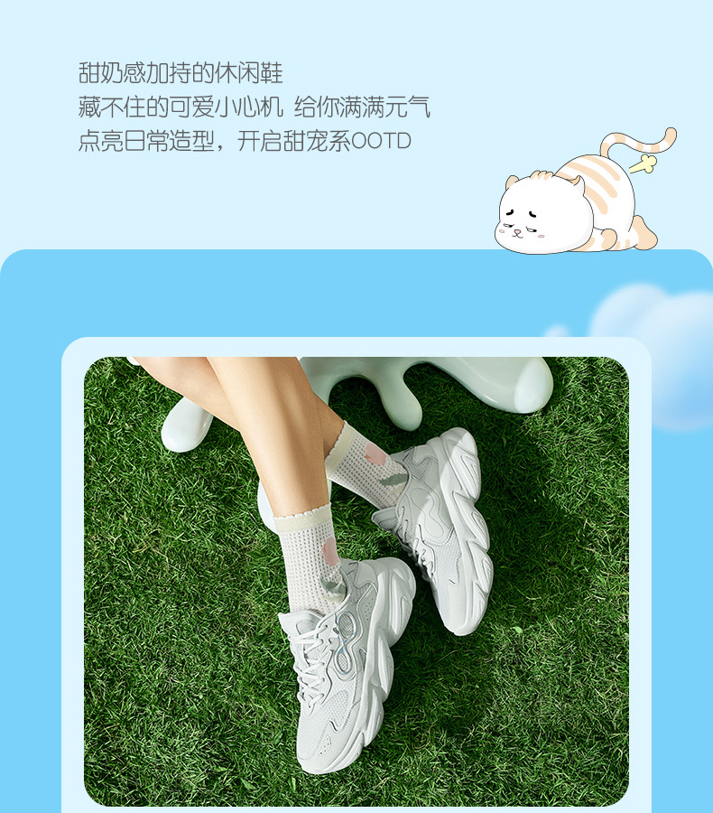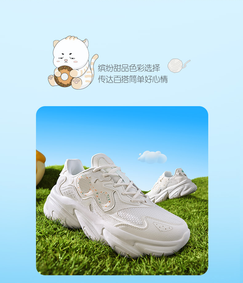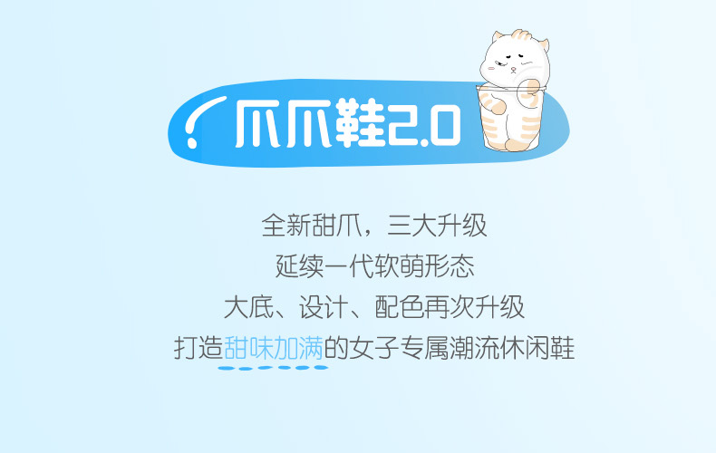 全新甜爪,三大升级,延续一代软萌形态,大底、设计、配色再次升级,打造甜味加满的女子专属潮流休闲鞋