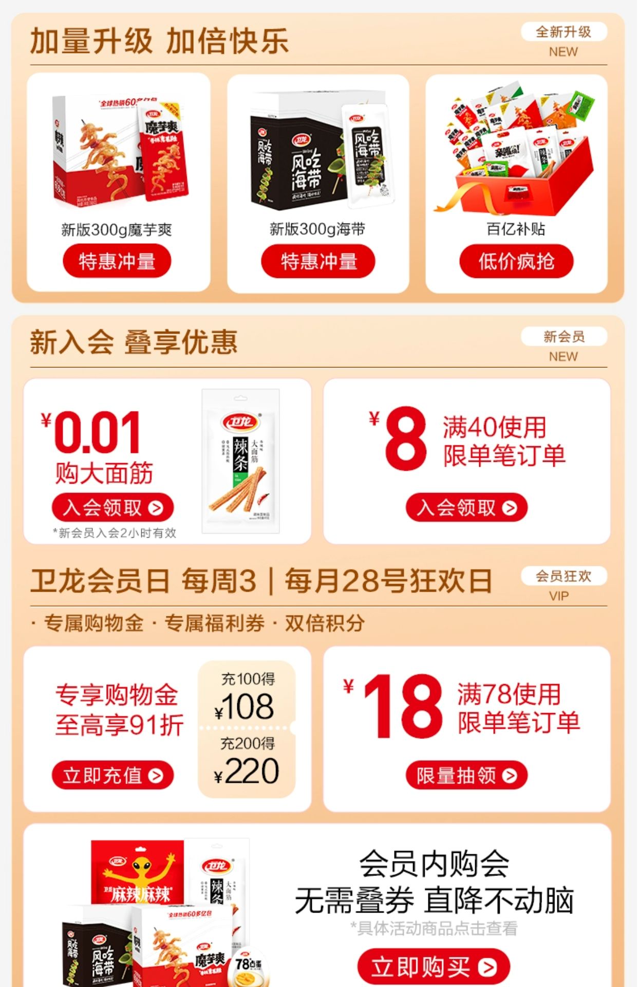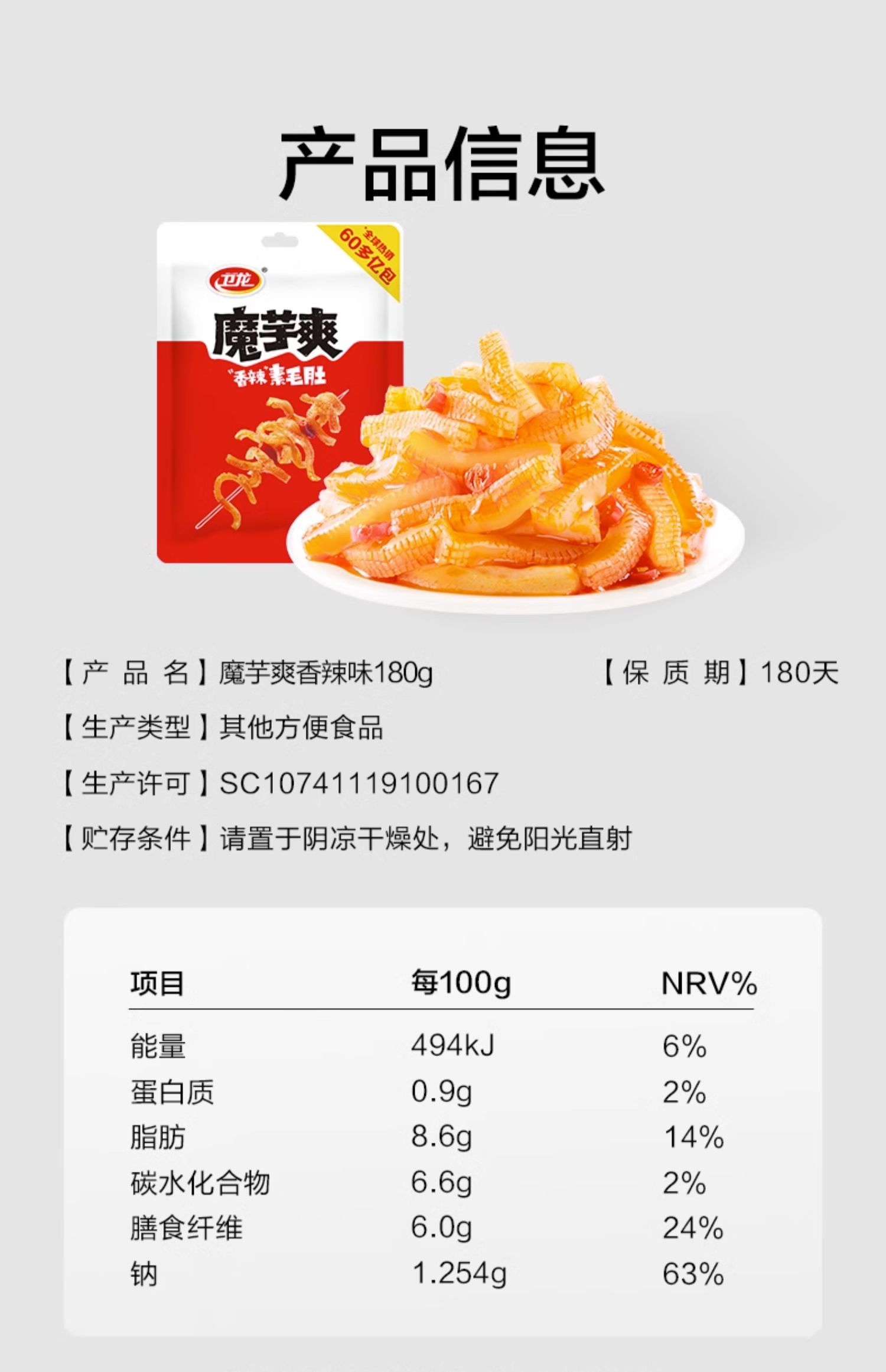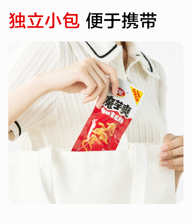 【热销10w+】足足12包!卫龙魔芋爽辣条,富含膳食纤维,0脂肪,吃了不怕胖!入口鲜辣Q弹,像是在吃毛肚一样,还会飚汁呢,超好吃!!独立包装,携带方便,想吃就吃!