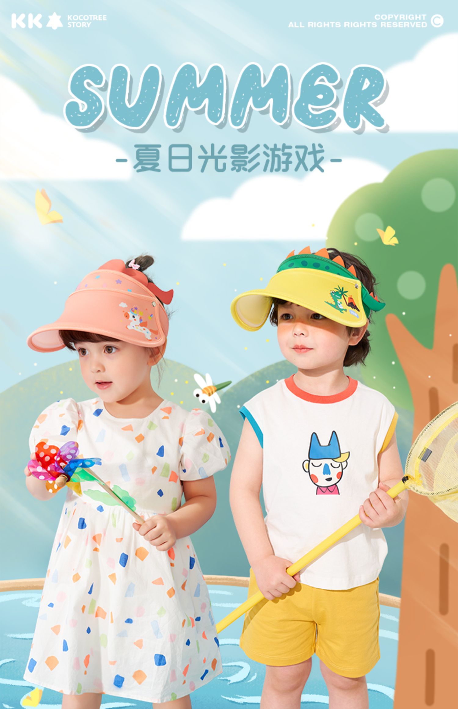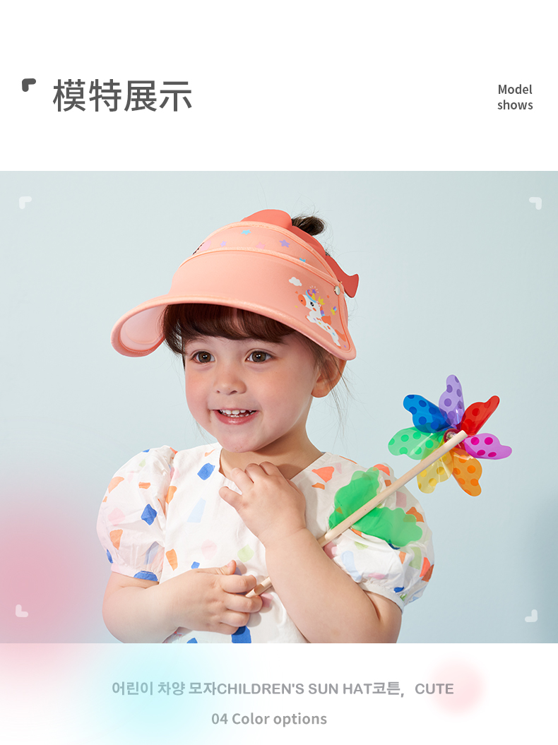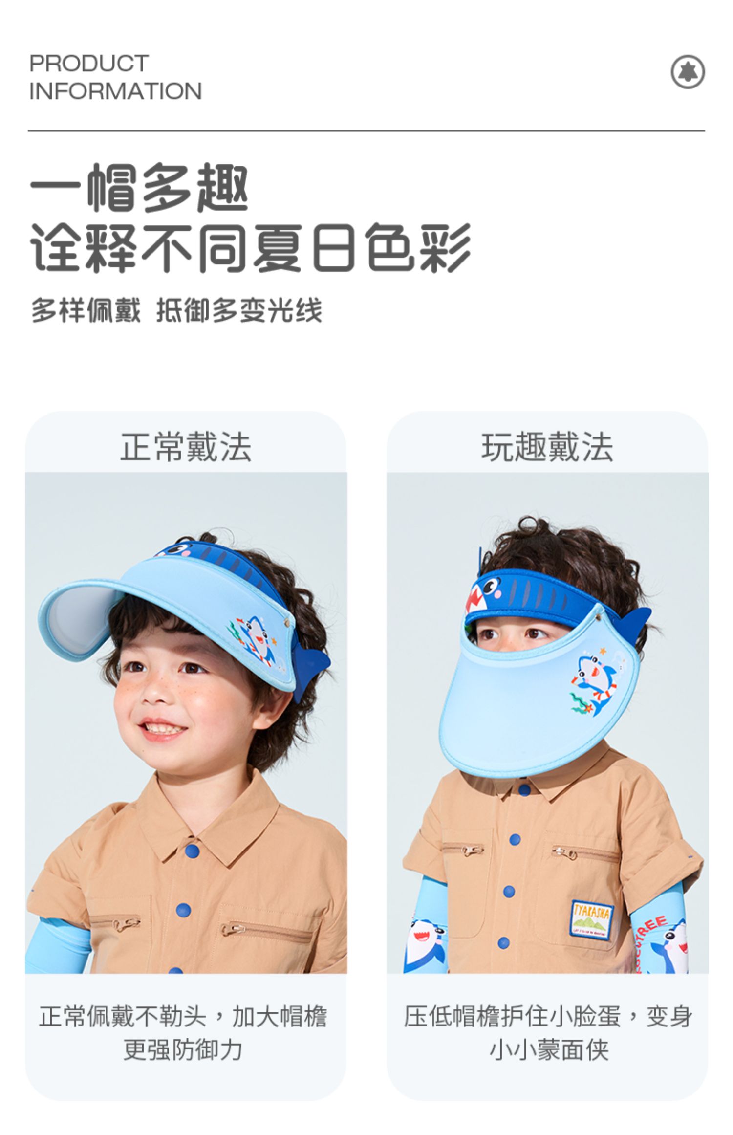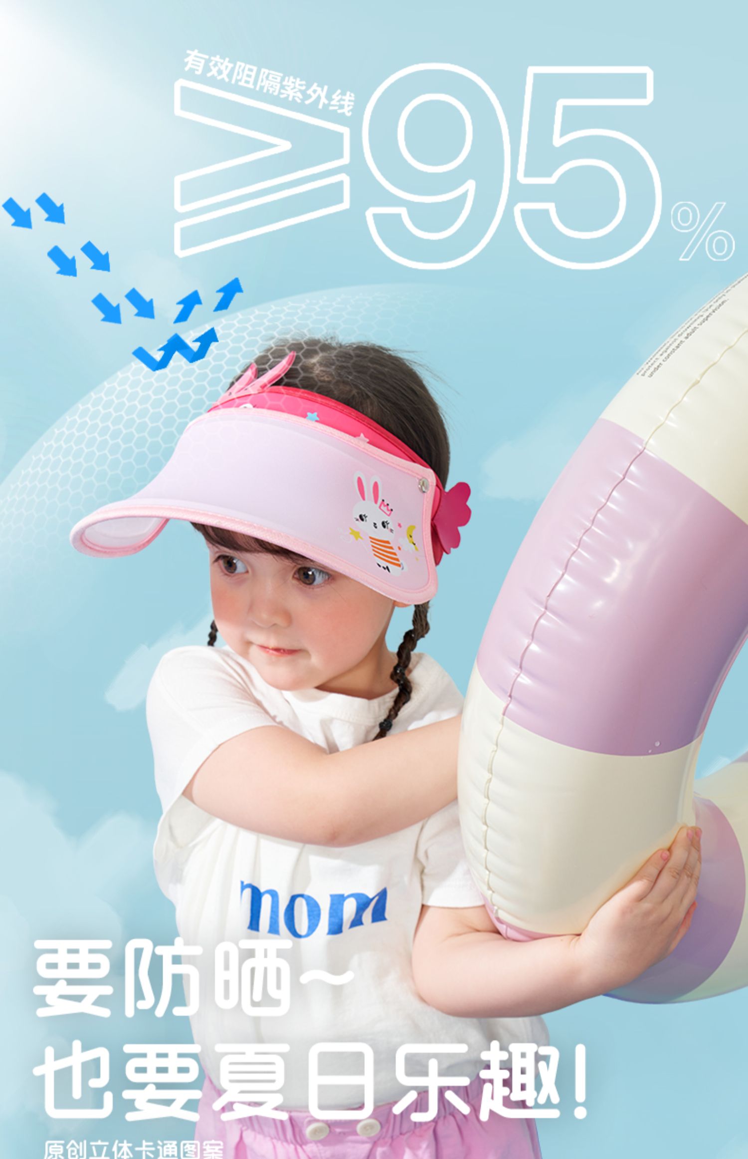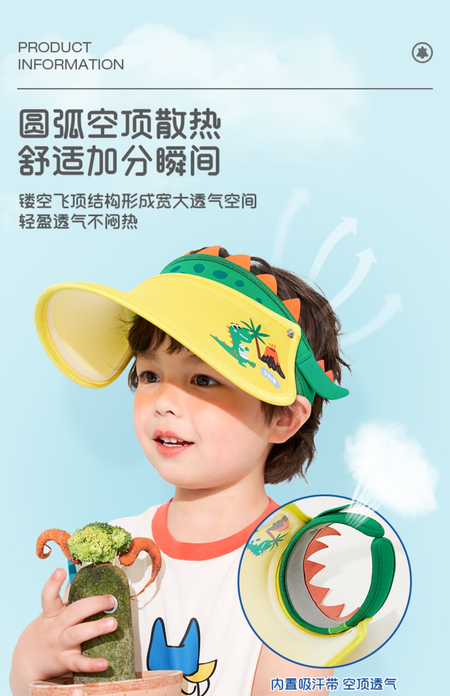 KK树儿童空顶帽防晒遮阳帽.宝宝帽子大帽檐,男女童夏防紫外线太阳帽。带吸汗带,角度可任意调节,轻薄透气,久带无负担。