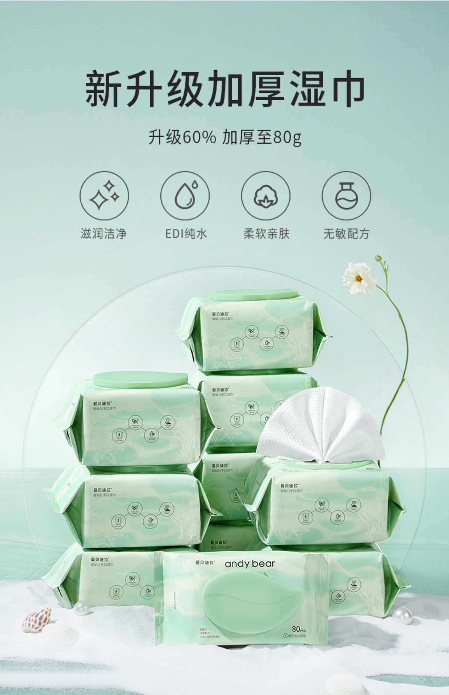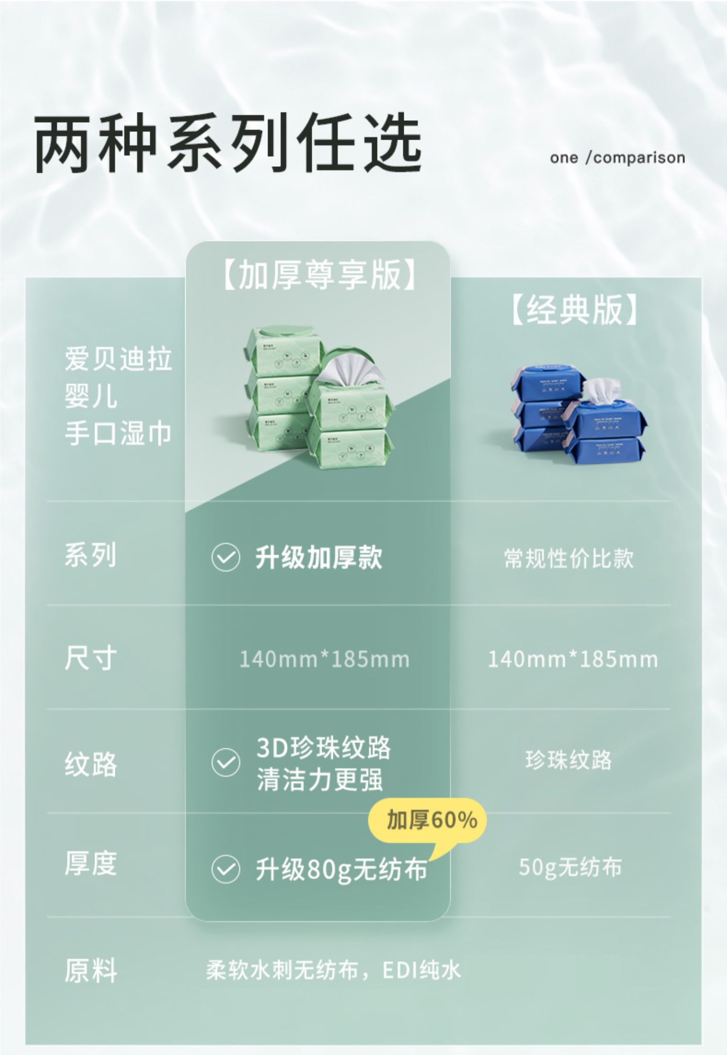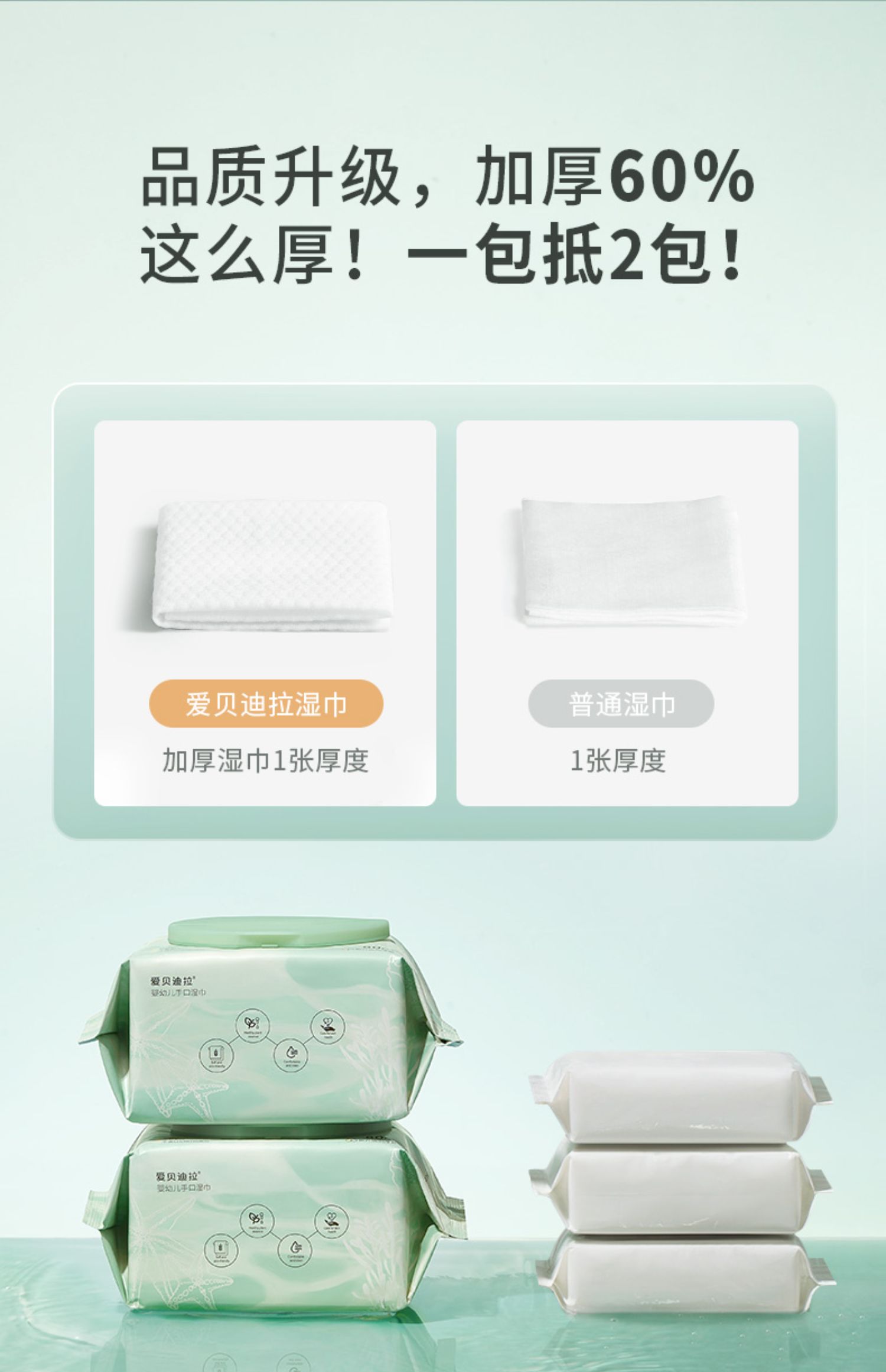 【爱贝迪拉5包装】加厚湿巾,两斤重!!!回购率极高的大牌湿巾降价了!母婴店8元一包。一张顶三张普通湿巾厚度,真正的不连抽,耐拉扯!用完了赶紧囤啊!