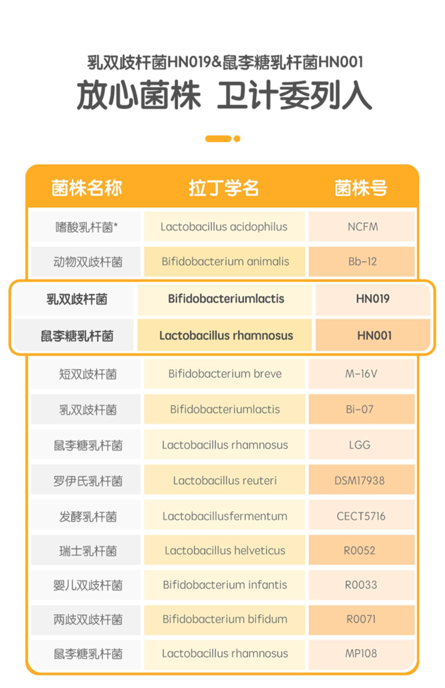 这款益生菌含有鼠李糖乳杆菌HN001和乳双歧杆菌HN019,益生菌和益生元的强大组合,提升宝宝小肠防护力和帮助大肠吸收,用来缓解宝宝肚子胀气,消化不良,便秘的问题简直不要太方便【官方旗舰店】