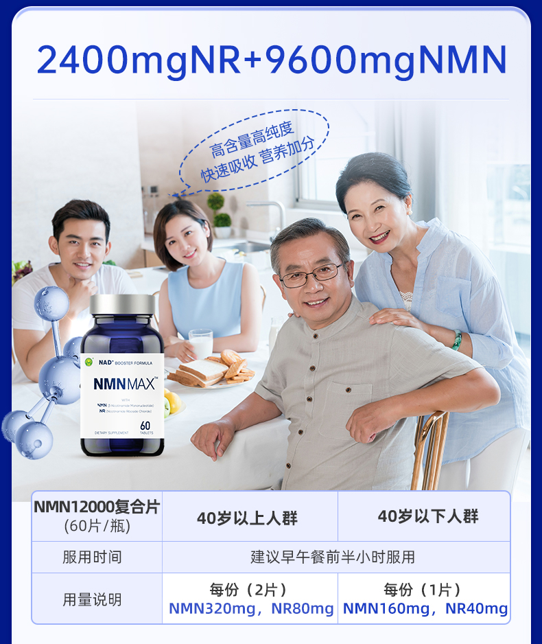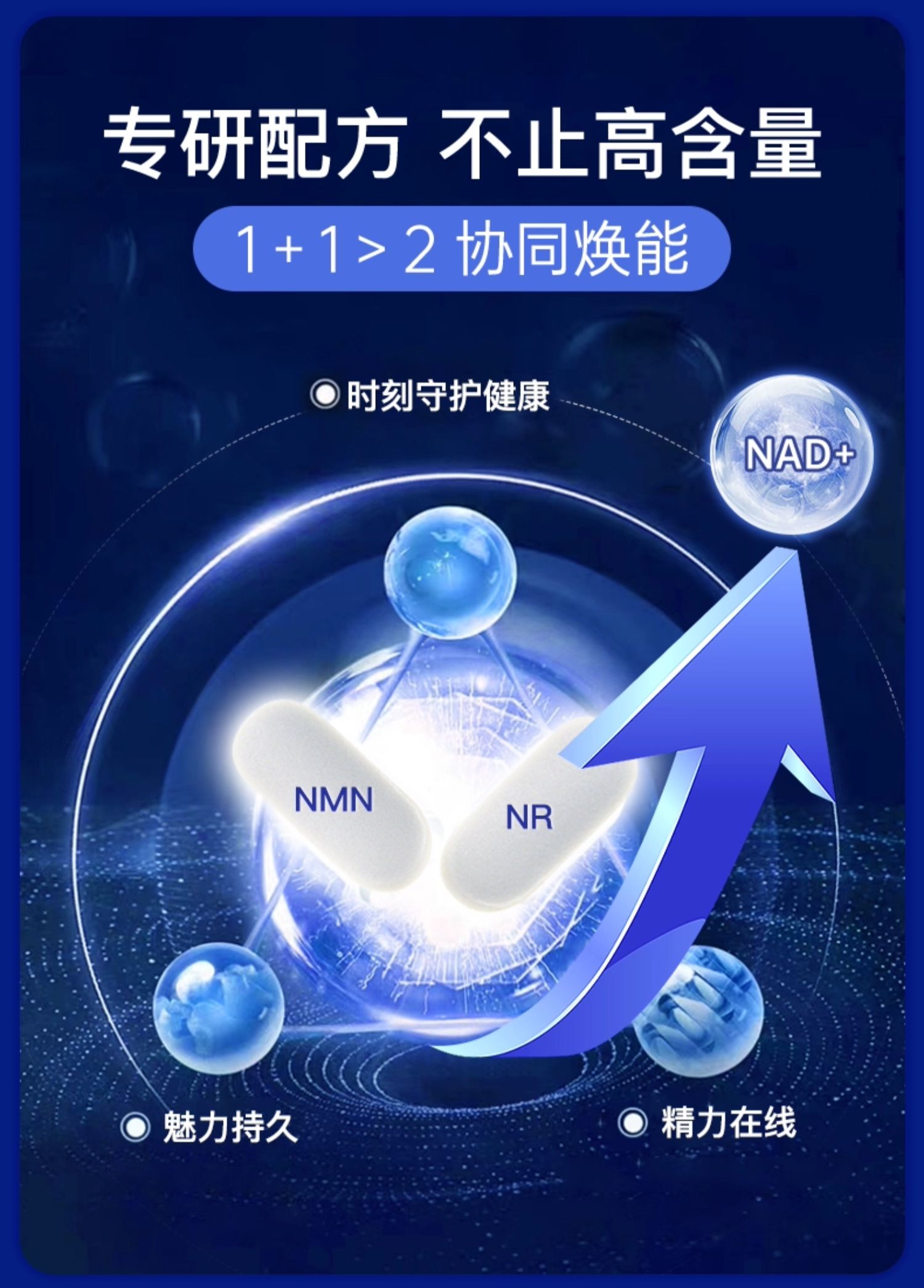 nmn双效复合片60片,烟酰胺单核苷酸NAD防初老9000+,年龄保鲜的秘语,辅助转化能量,调整身体素质,补充NAB+,调节生物钟。
