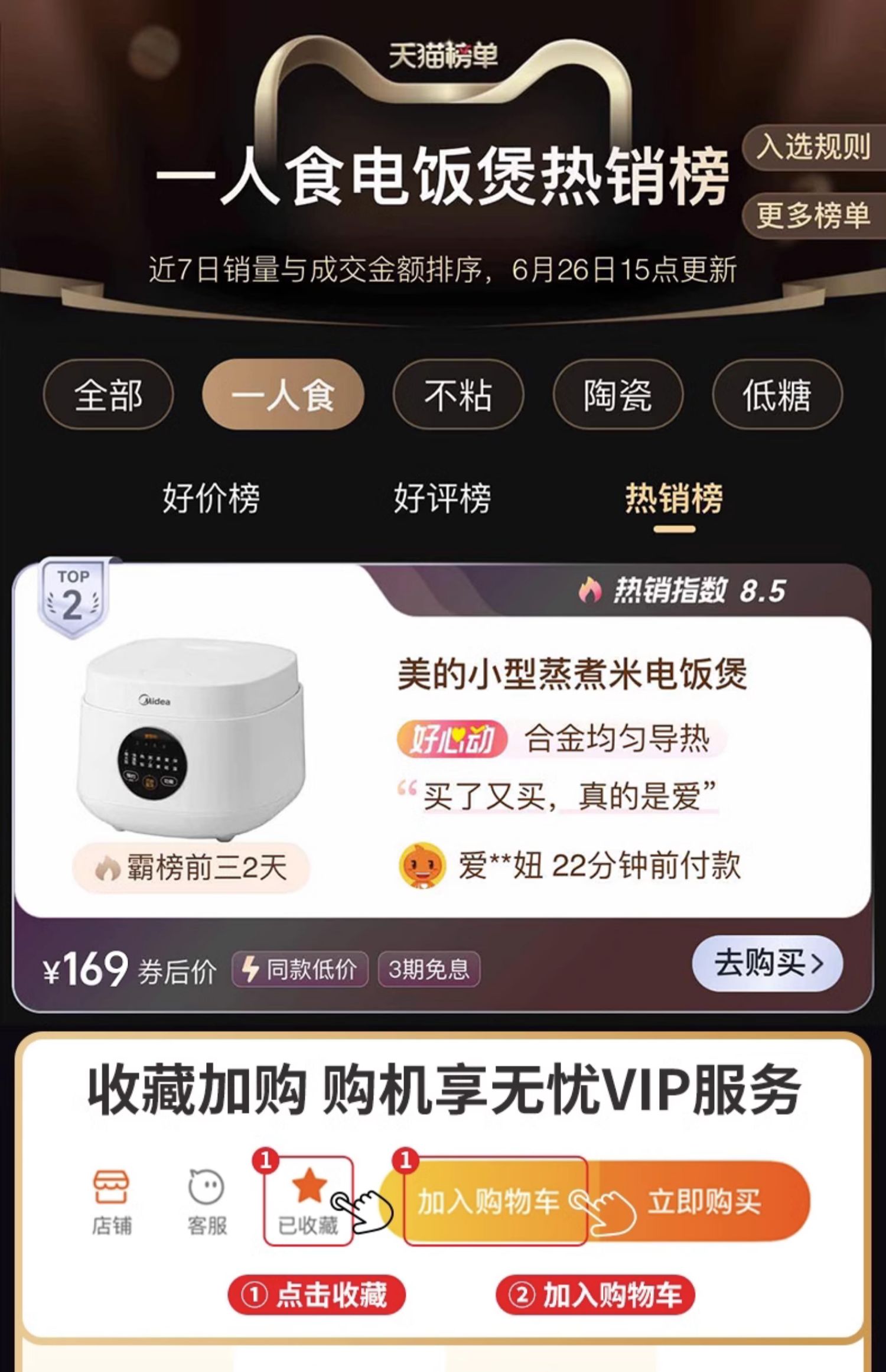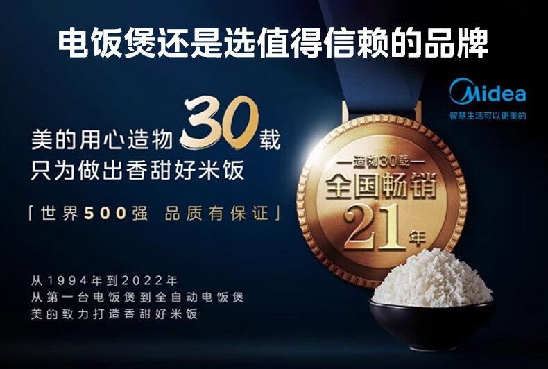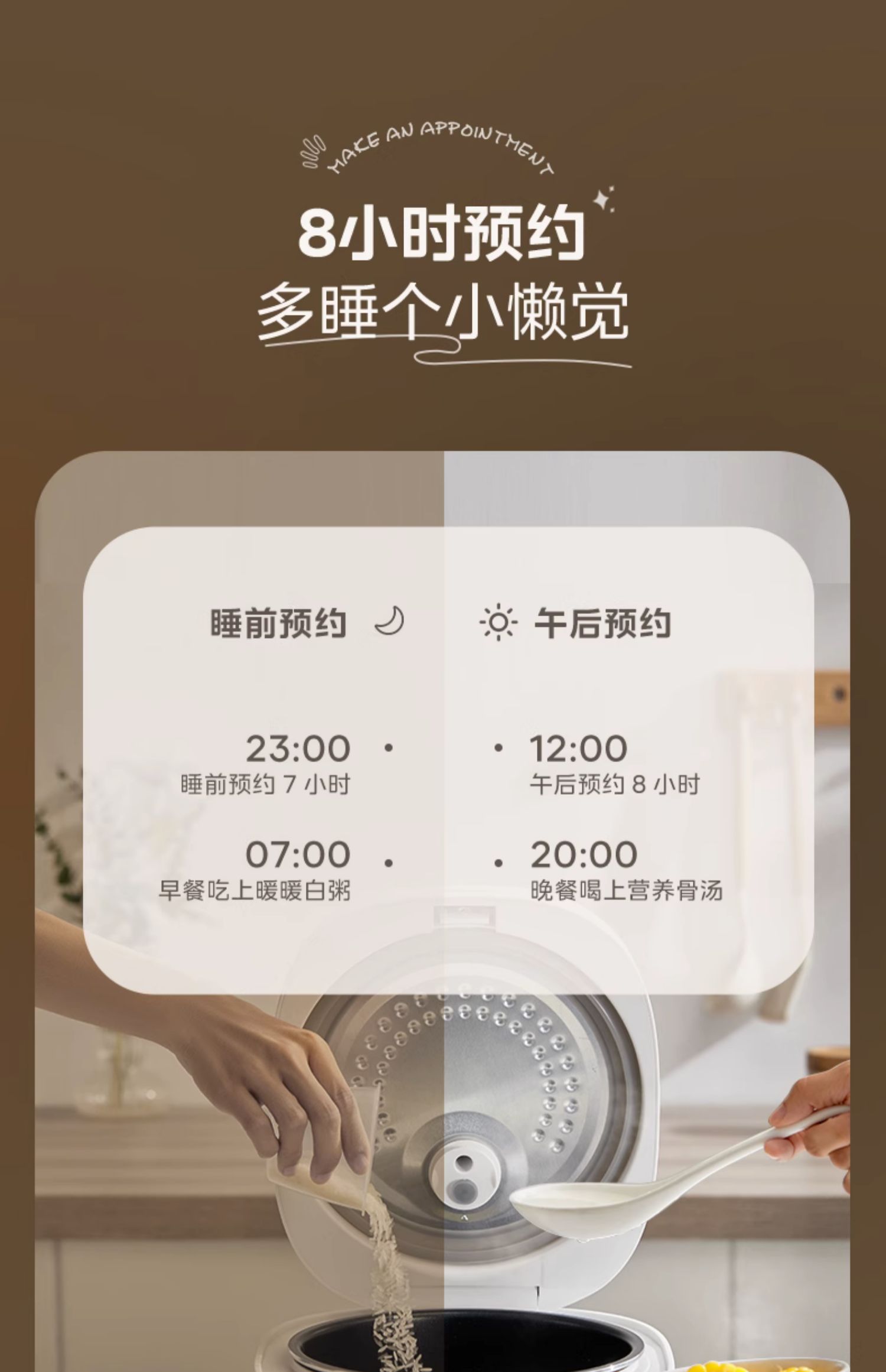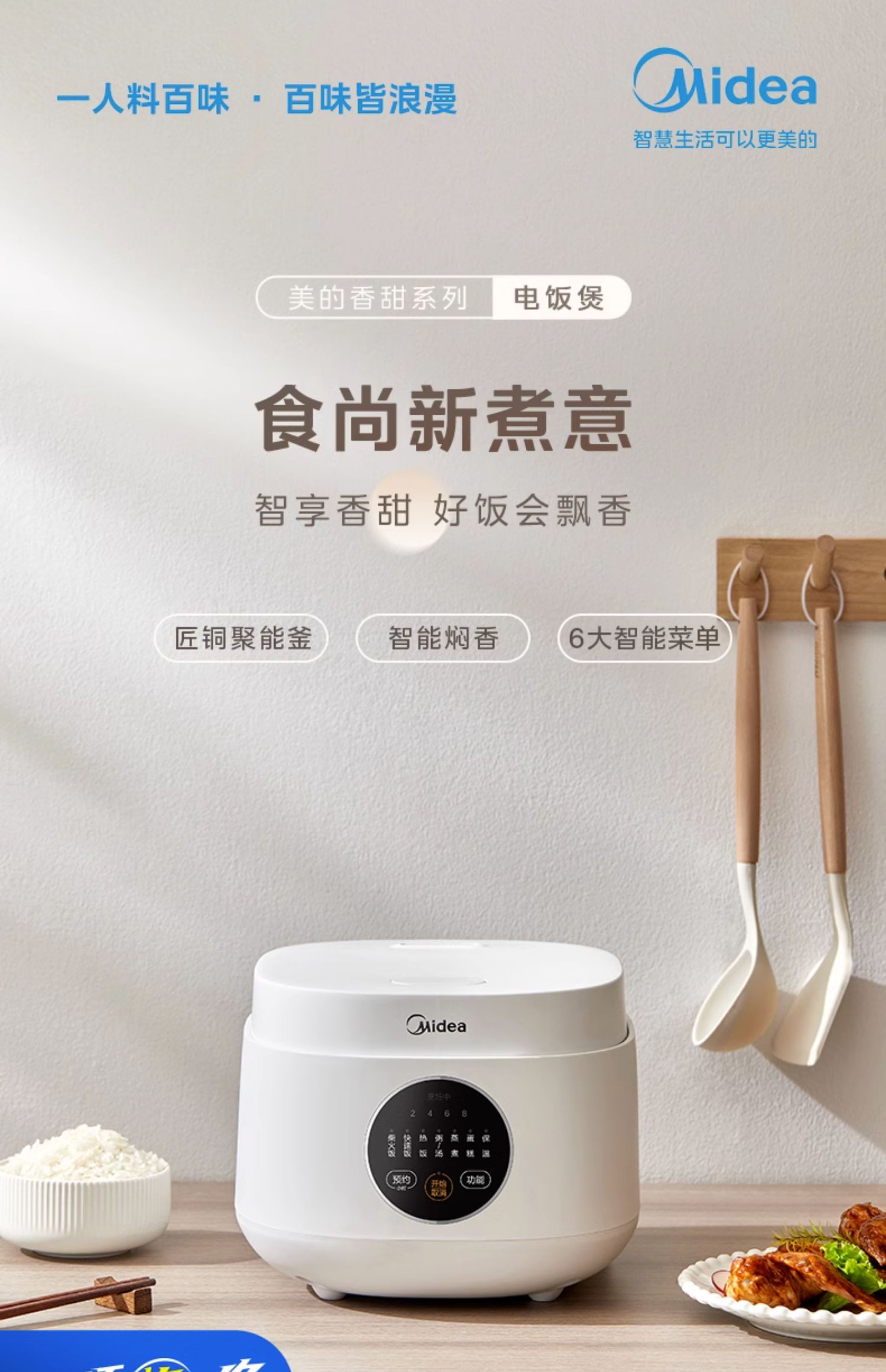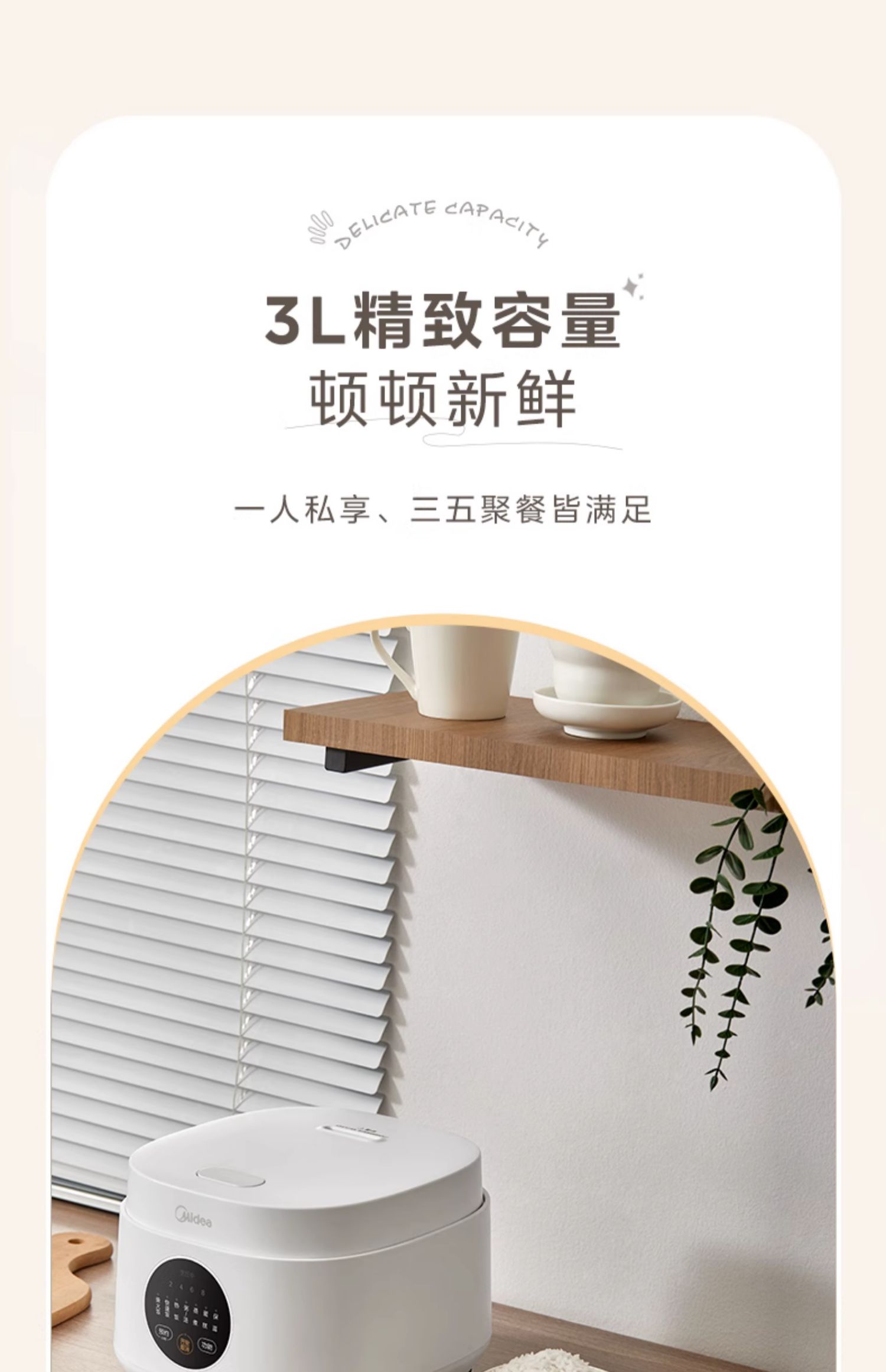 【有首单】美的家用多功能煲汤煮饭电饭锅,智能焖香,3L恰好容量,黑晶不粘内胆,8H预约煲煮两用,提前预约,到点就吃不匆忙