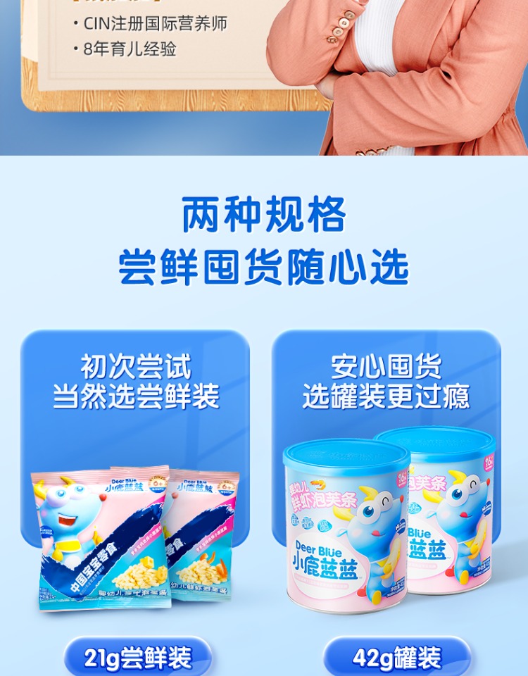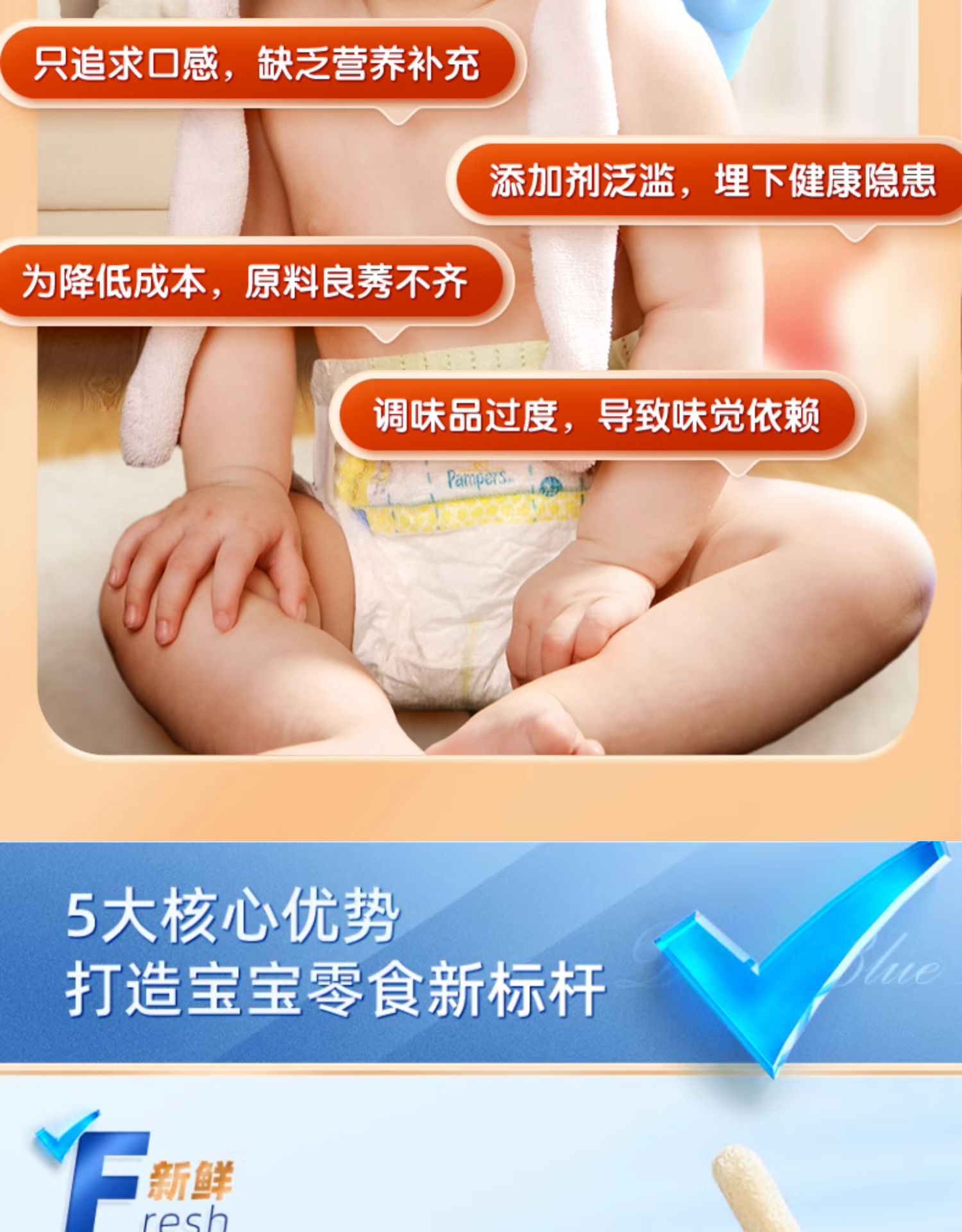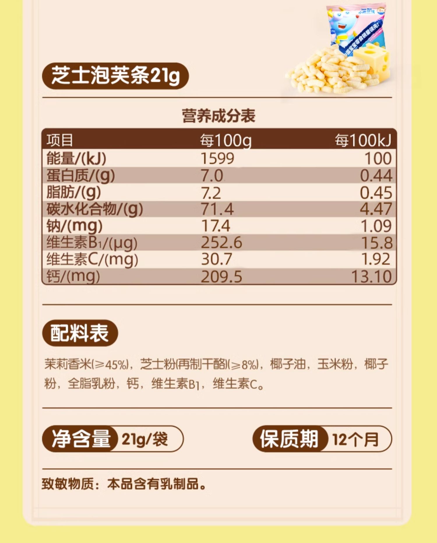 婴幼儿标准,宝宝专属泡芙条,不乱添加,宝宝放心吃,妈妈更安心,非油炸,谷物自然膨胀,入口即溶,不易上火,易抓取,让宝宝乐趣不停
