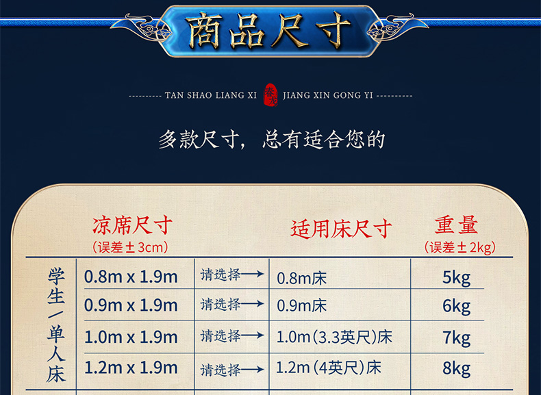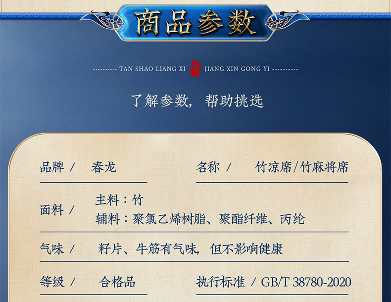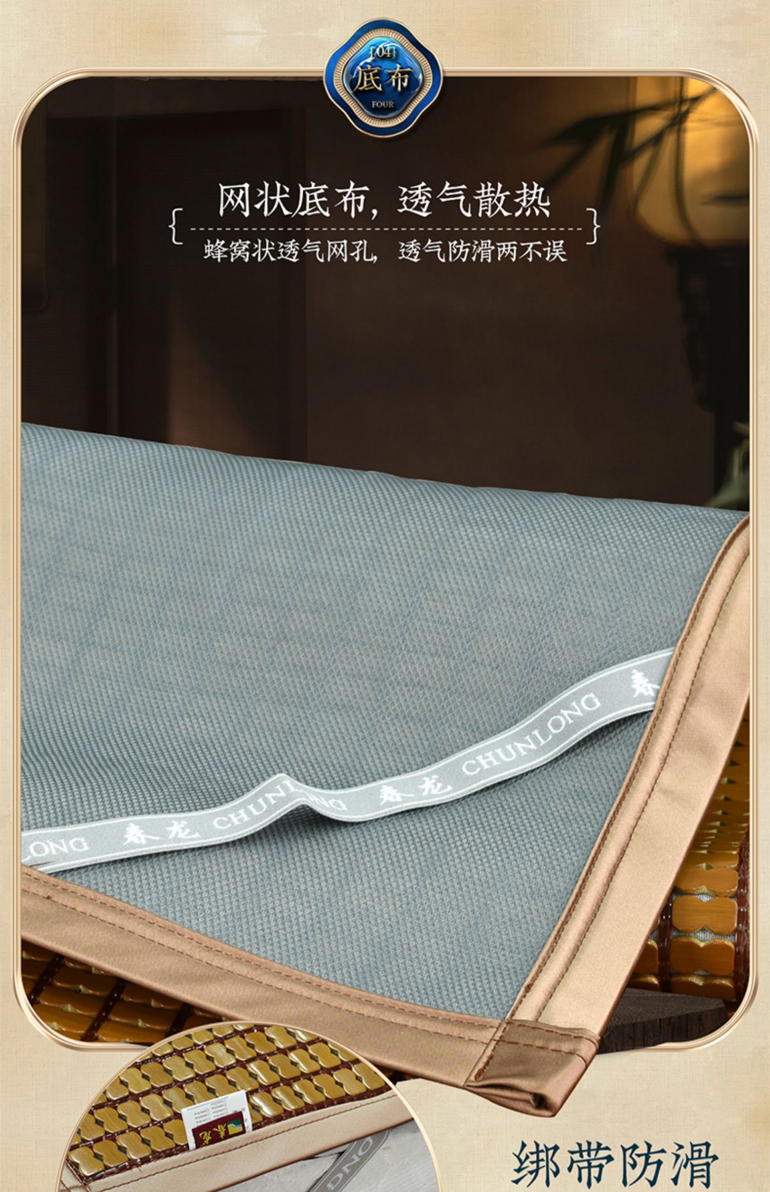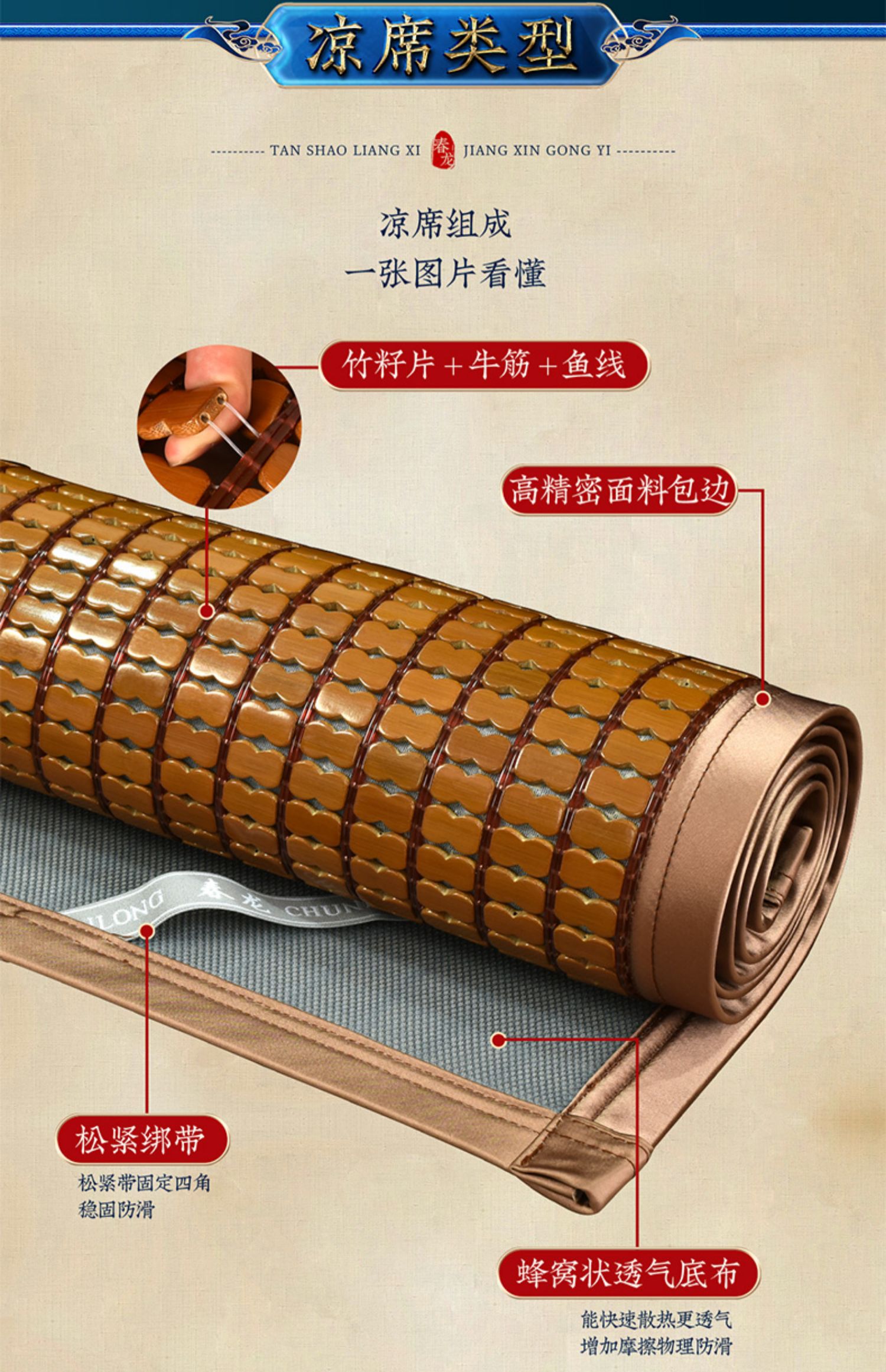 【春龙官方旗舰店】竹麻将凉席品牌,品牌旗舰店,购物无忧!表面光滑,无毛刺,20h高温烧烤,更健康,睡下凉意盎然,好品质更耐用,睡的踏实!