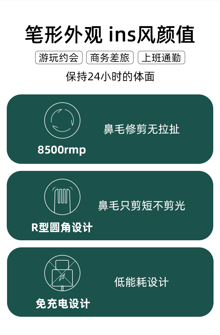 【焕醒鼻毛修剪器】精钢工艺制造,全方位修剪,只剪短不剪光,一点都不扯鼻毛,没有一点疼痛。像马克笔一样的外形,不论是在家还是外出都方便携带。分体结构设计,可以全身水洗,清理方便,使用更卫生