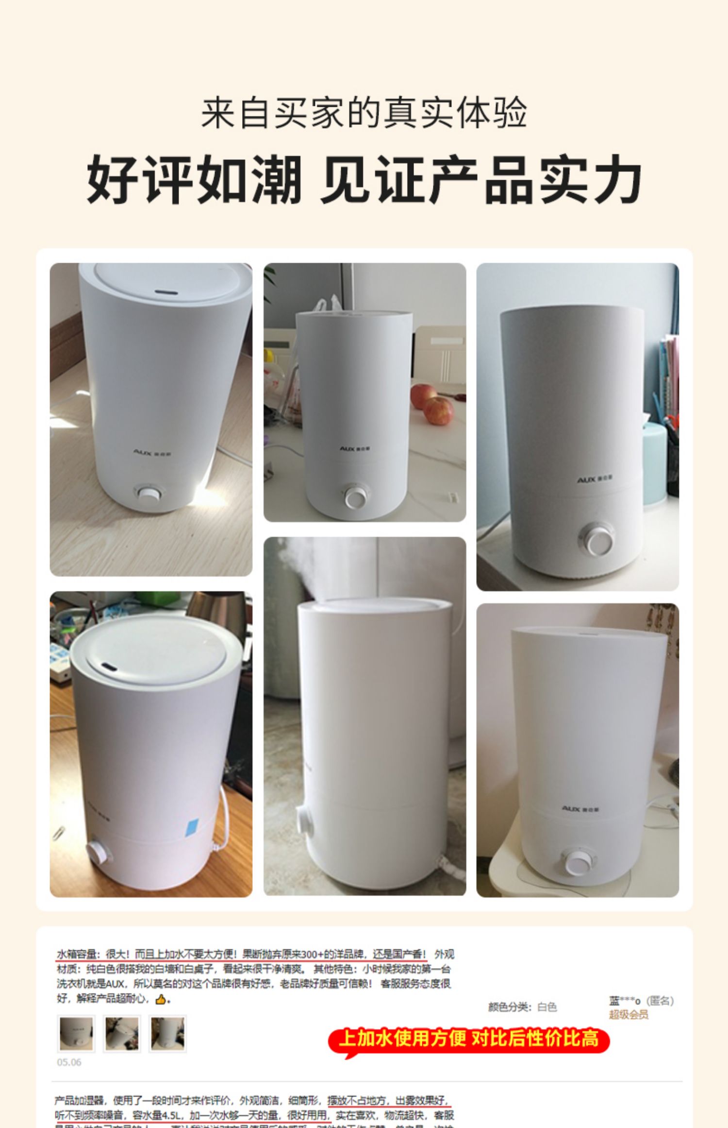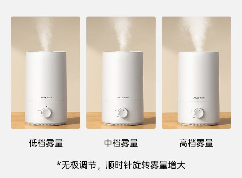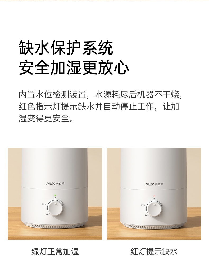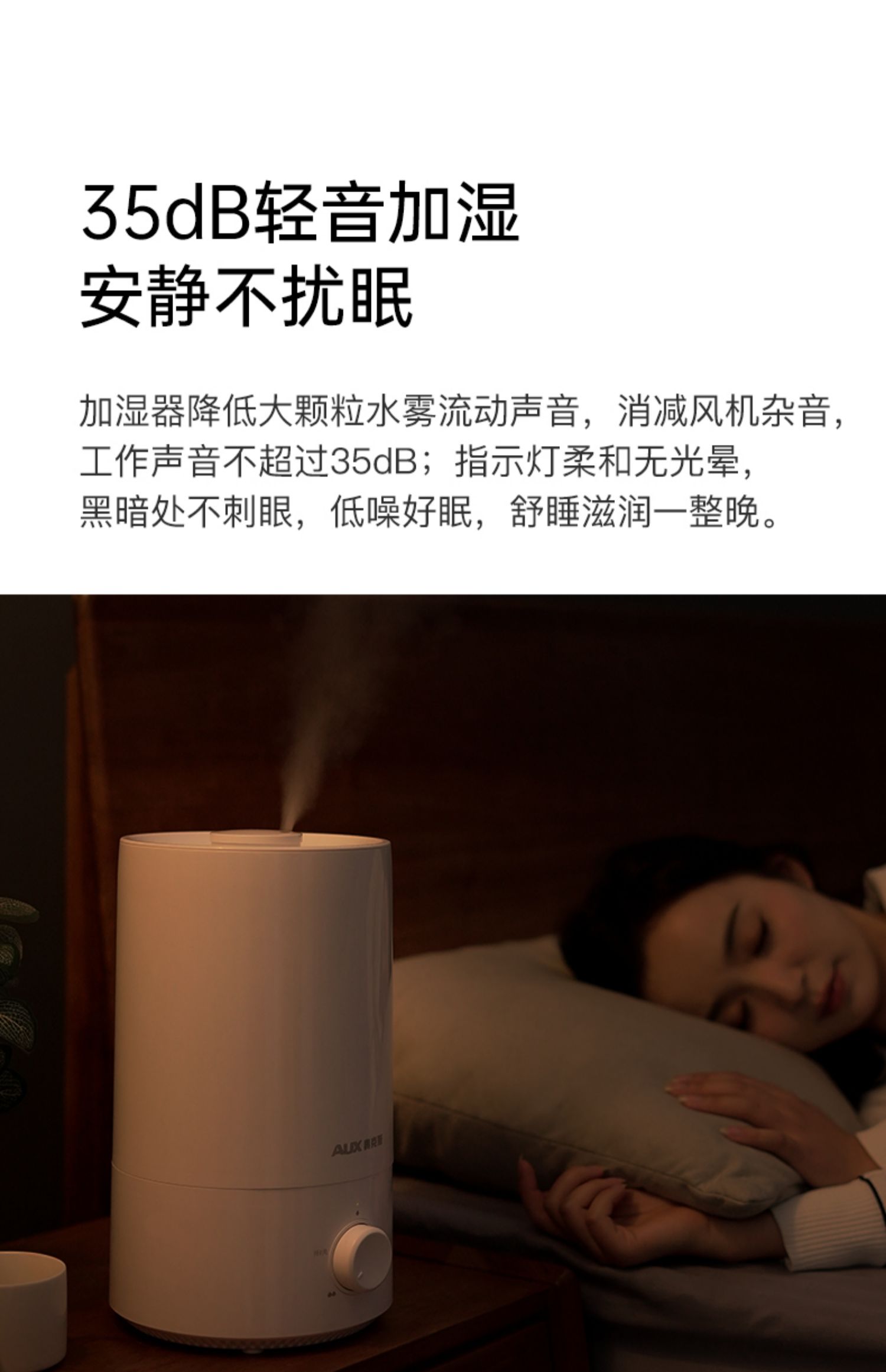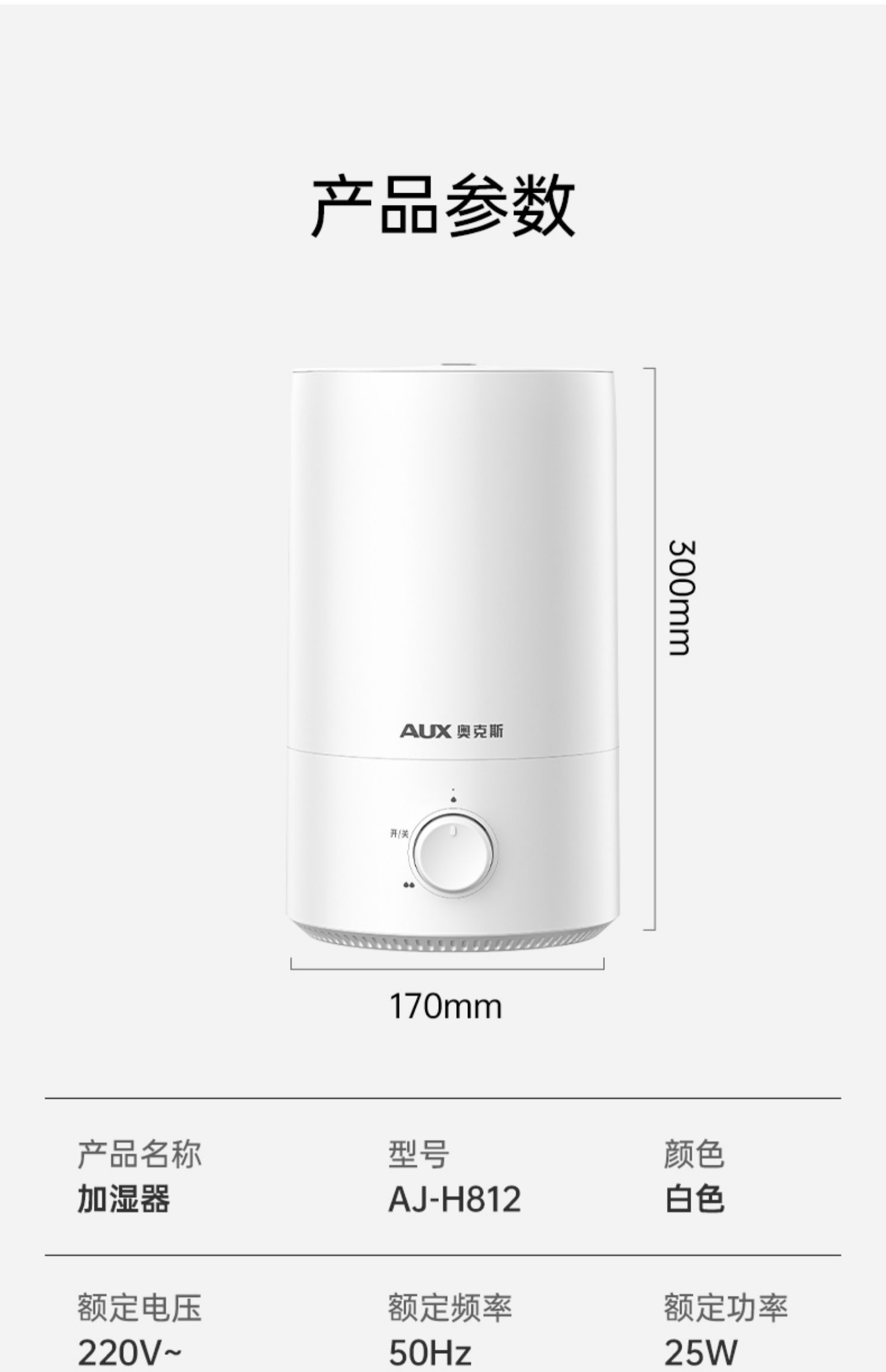 奥克斯静音加湿器,超声波分子雾化,滋润你的每一寸肌肤,孕妇婴儿很适用,静音运作,滋润补水,水雾轻柔,温润空气,让肌肤喝饱水!