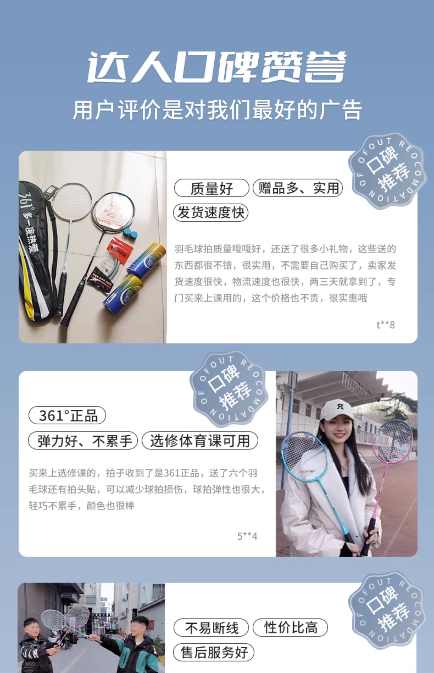 361°耐打羽毛球拍,铝合金材质,高强度不易变形,提高耐用度,减震手柄,轻盈手感,攻守平衡,颜值出众~送耐打专用球3只,原装拍包,颜色随机手胶2个!