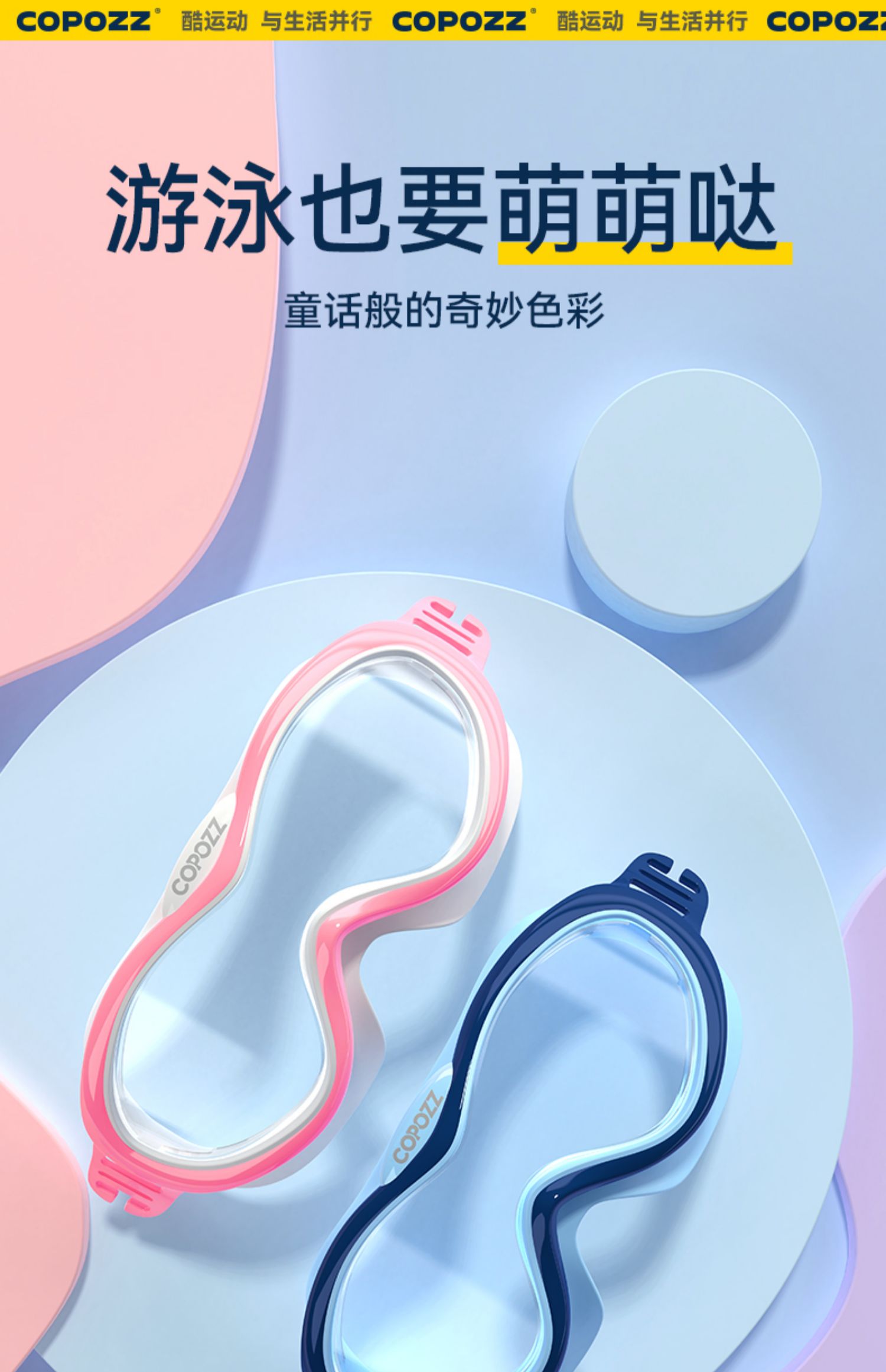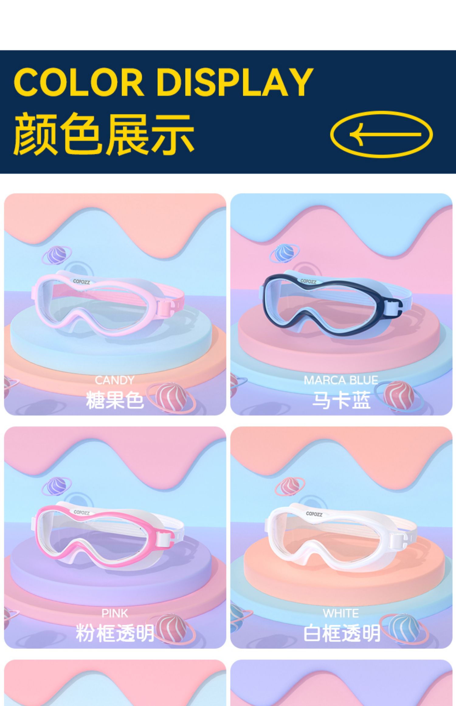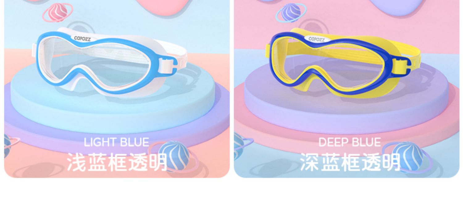 儿童大框泳镜,高清防雾,3D贴合镜圈,佩戴舒适,方便调节,细腻做工,呵护童真,让宝宝放心游泳~