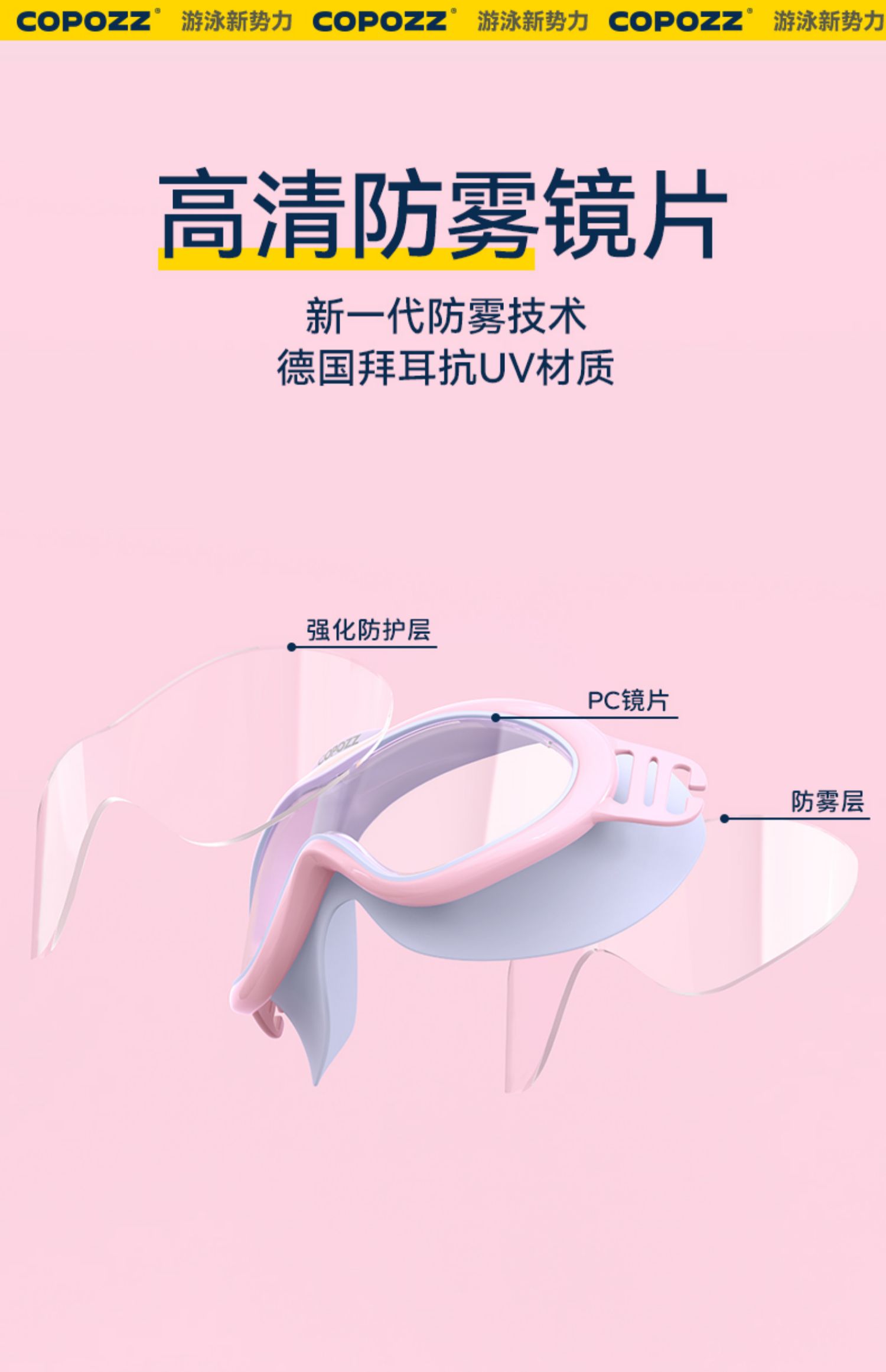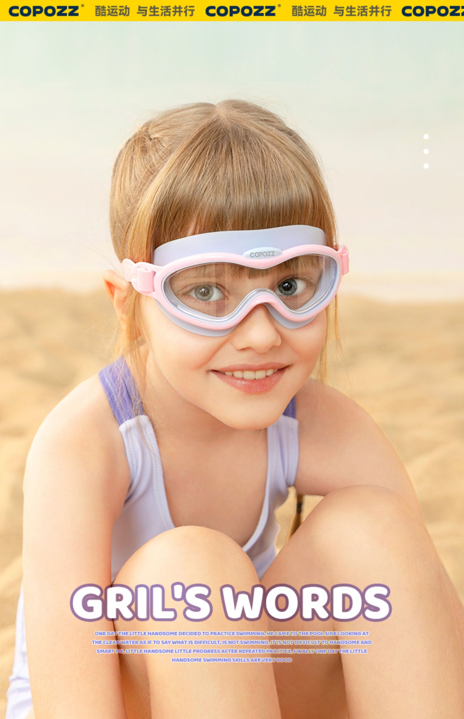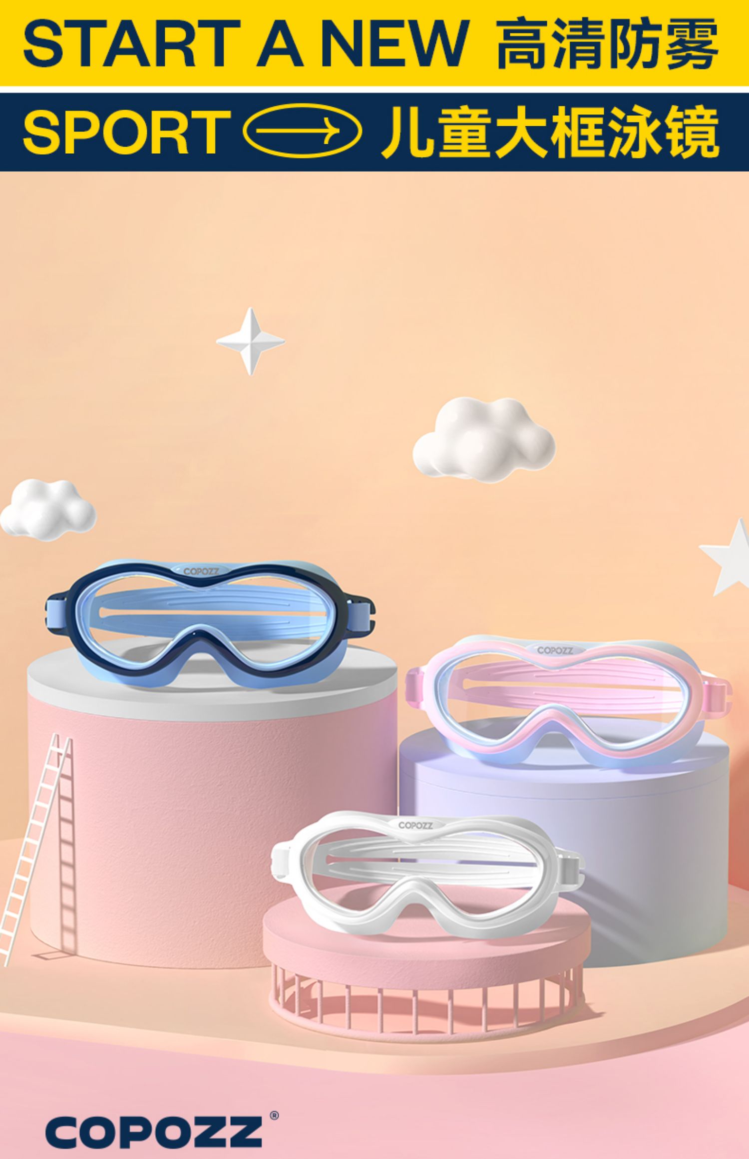 儿童大框泳镜,高清防雾,3D贴合镜圈,佩戴舒适,方便调节,细腻做工,呵护童真,让宝宝放心游泳~