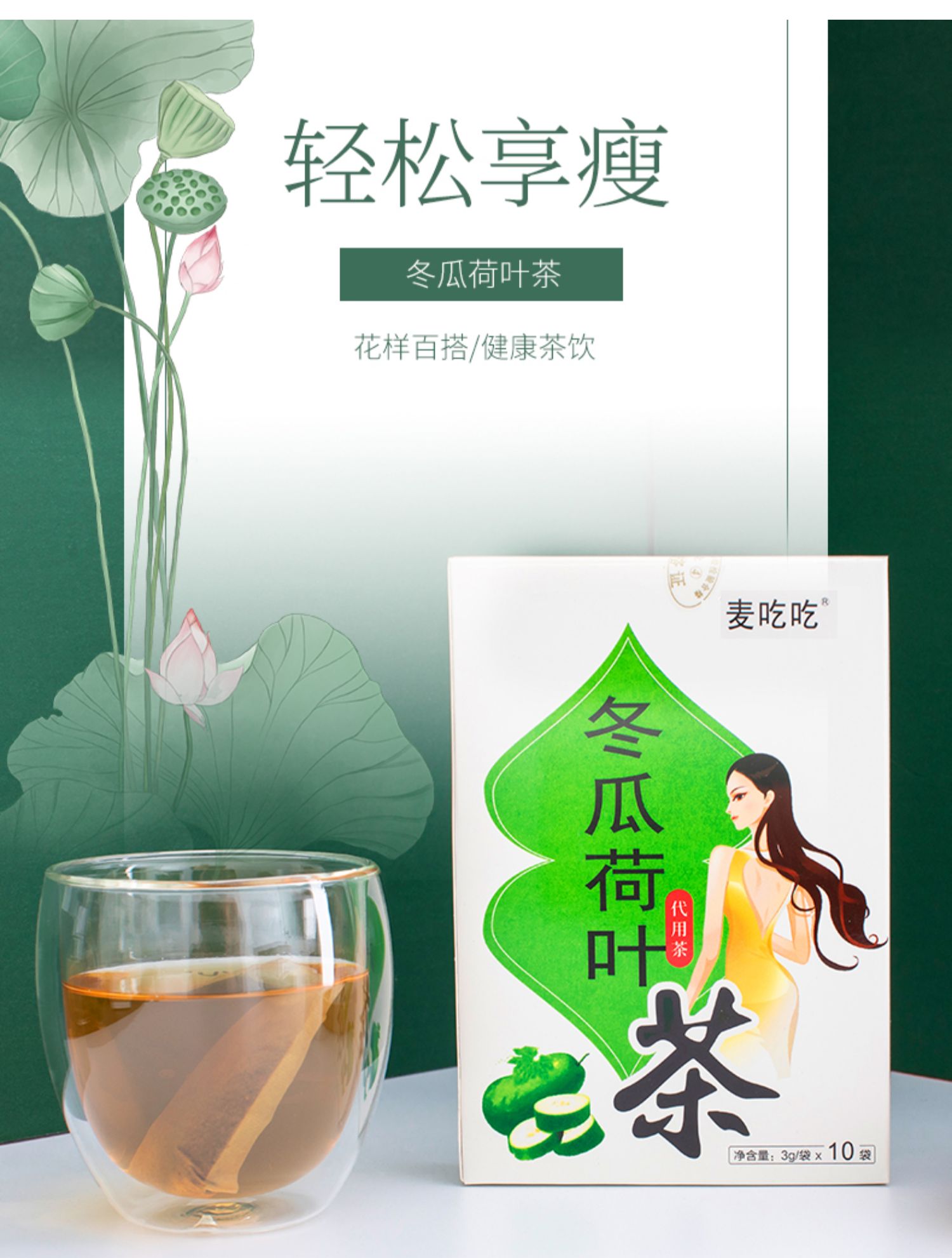【减肥佳品】减肥冬瓜荷叶茶,排毒养颜,甩走油脂,越喝越轻盈。肚子小一点,穿衣更有型、冬瓜荷叶茶,轻松喝出S型好身材,爱美爱瘦的姐妹们的福利!【赠运费险】