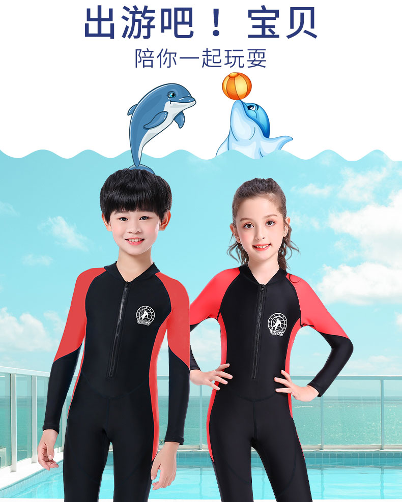 儿童长袖防晒泳衣高效防晒,防晒系数达到UPF50+;久洗不掉色,快干保鲜,色泽度高;弹性面料,舒适不紧绷,快干吸水,宝宝更舒适