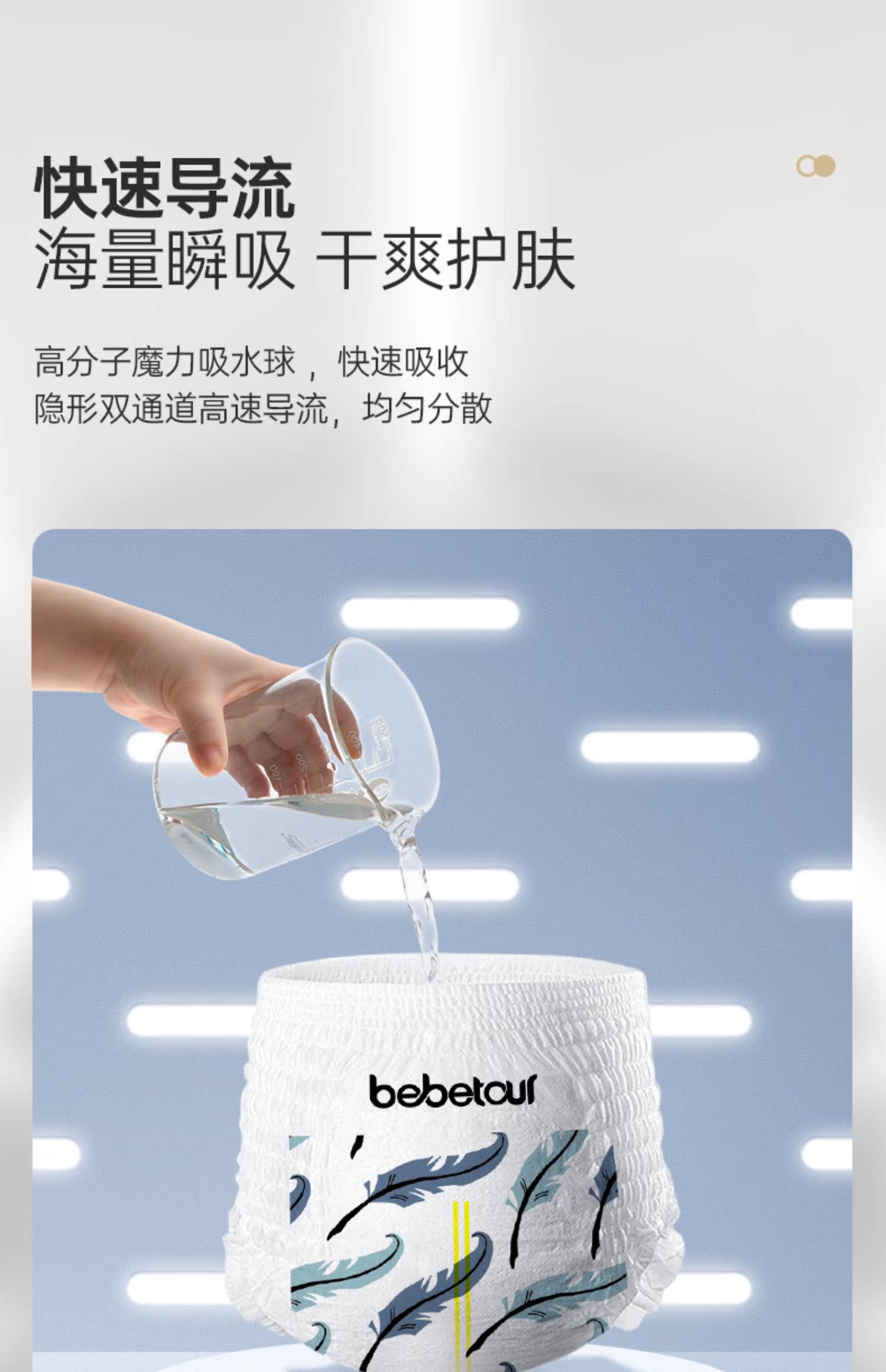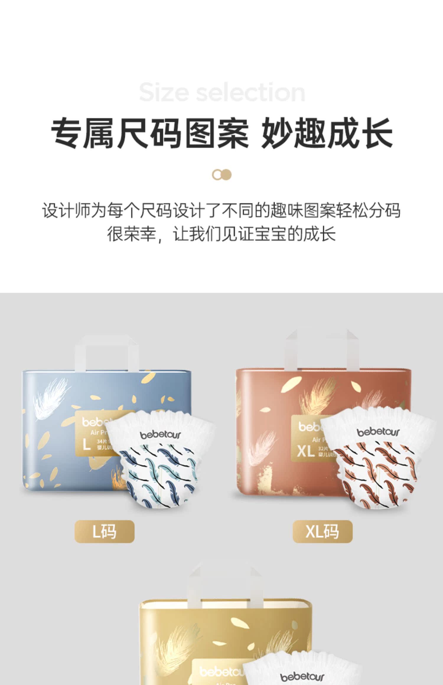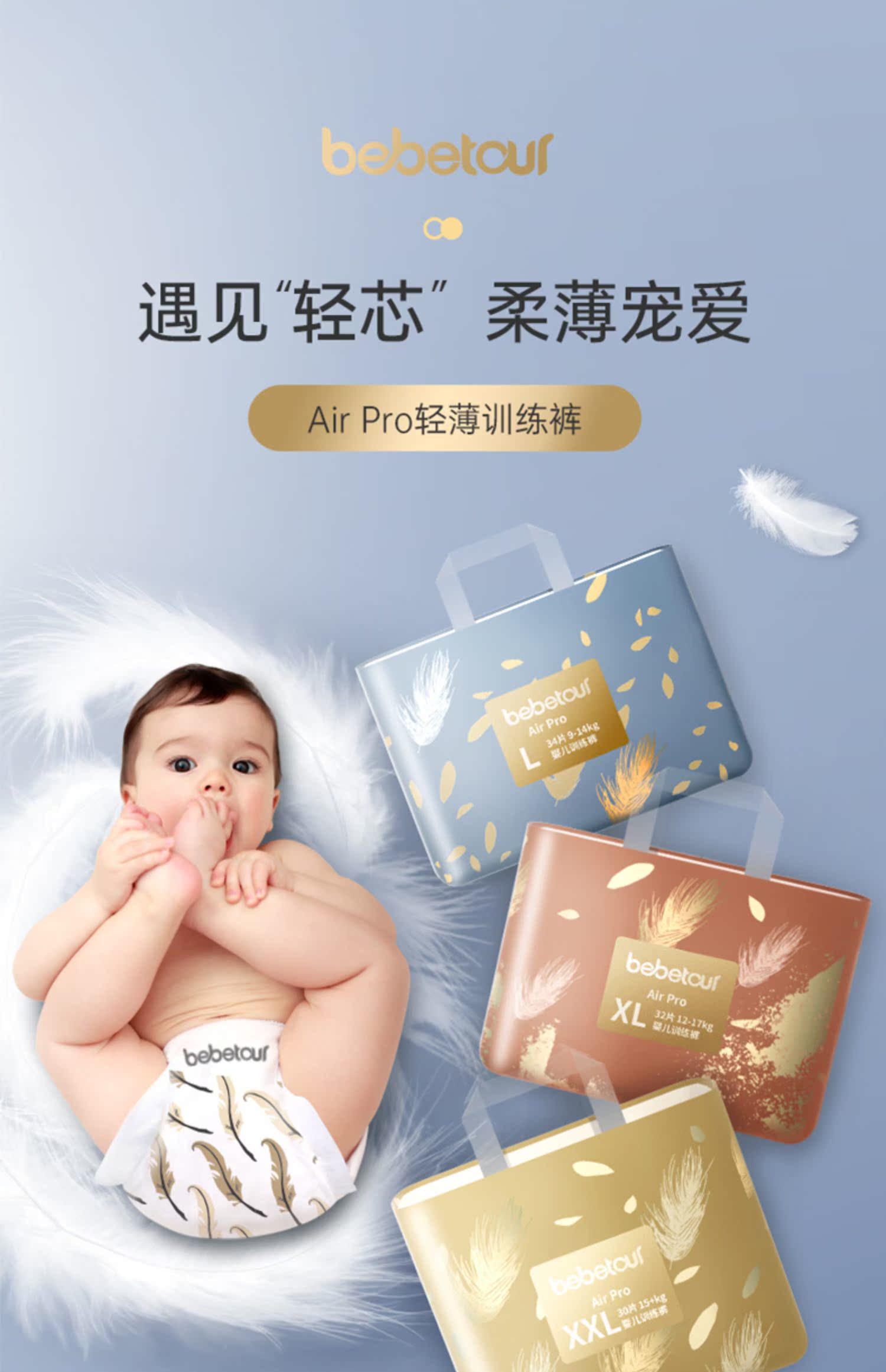 拍4券后90,折45/包,bebetour拉拉裤AirPro婴儿超薄干爽宝宝训练裤L-XXL尿不湿*1包,透气又柔软,肌肤无负担