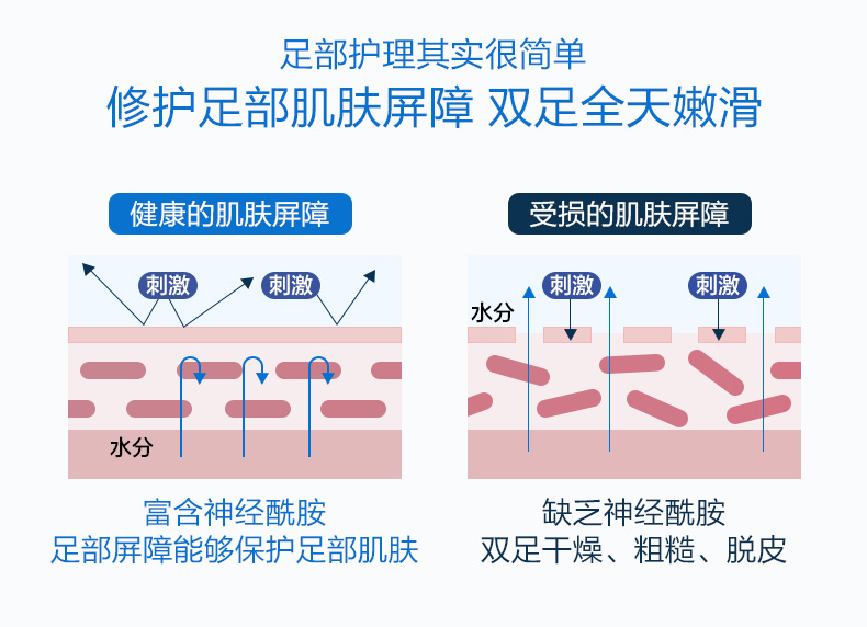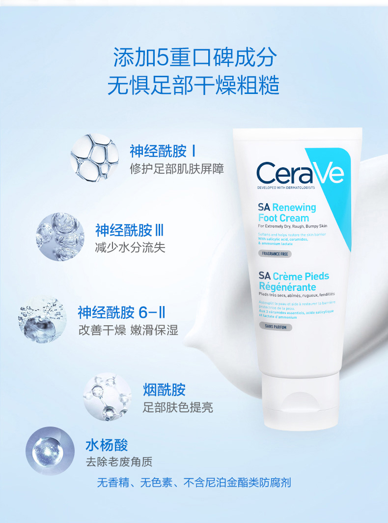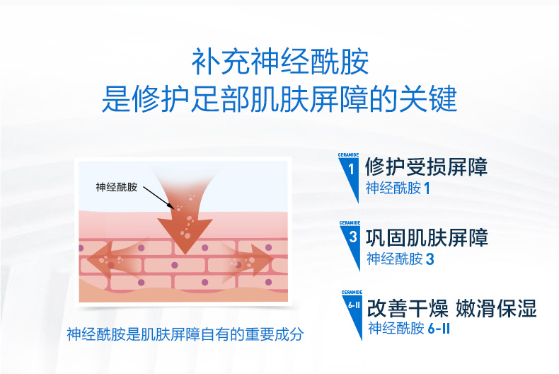 添加五重口碑成分,滋润双足,改善干裂,祛除足部废老角质,亮肤去暗沉