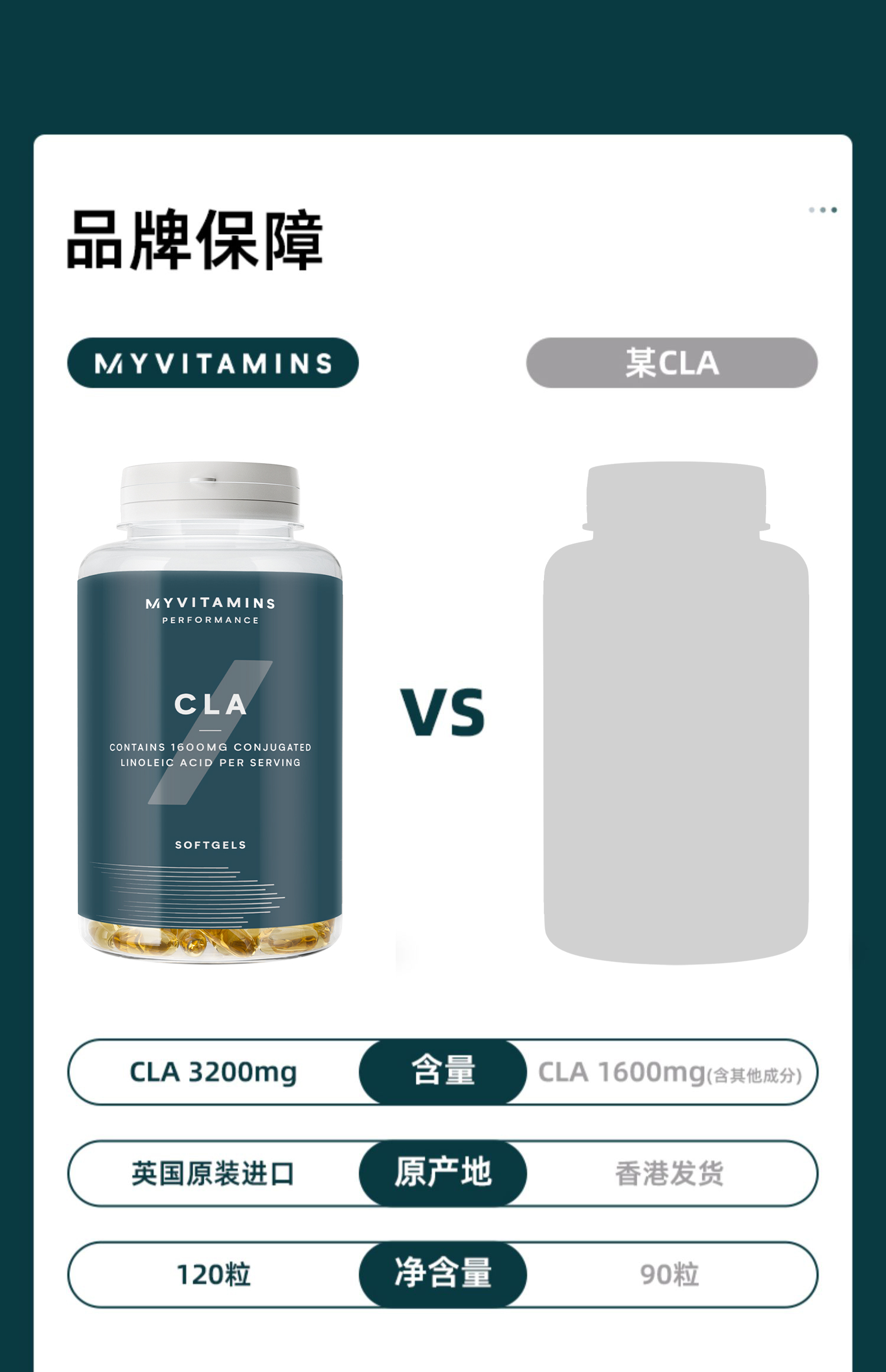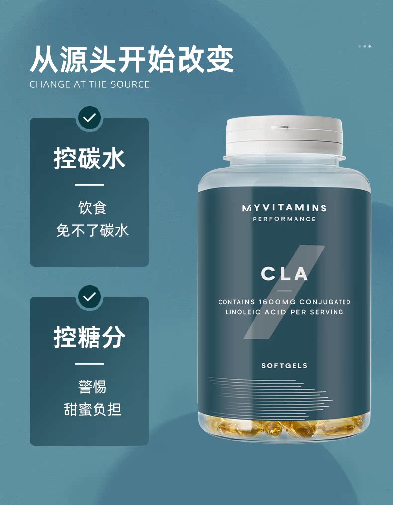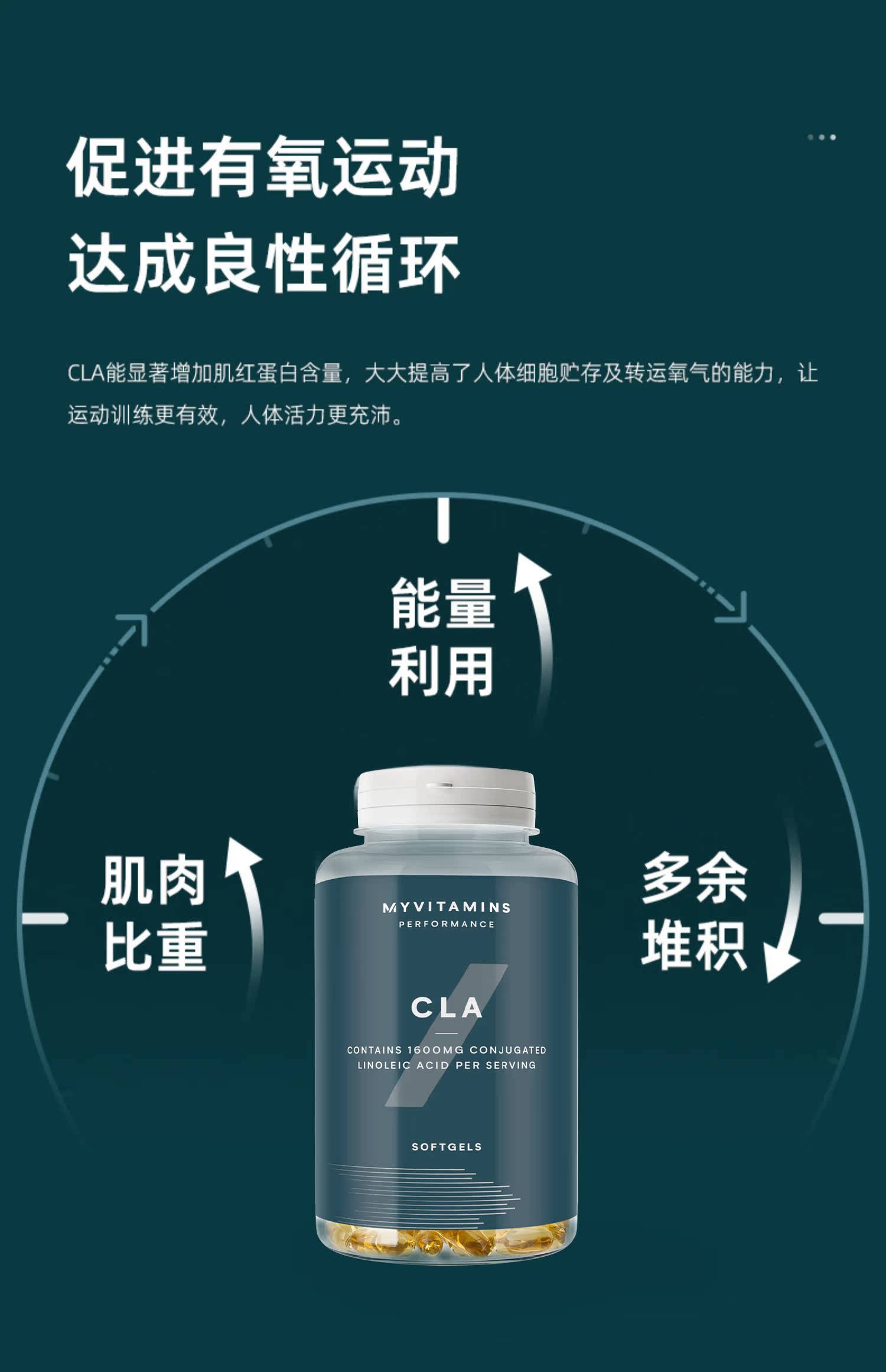【下单立减10%,拍2件7.5折】Myvitamins英国CLA共轭亚油酸120粒阻断碳水糖脂肪补剂软胶囊进口,超赞~