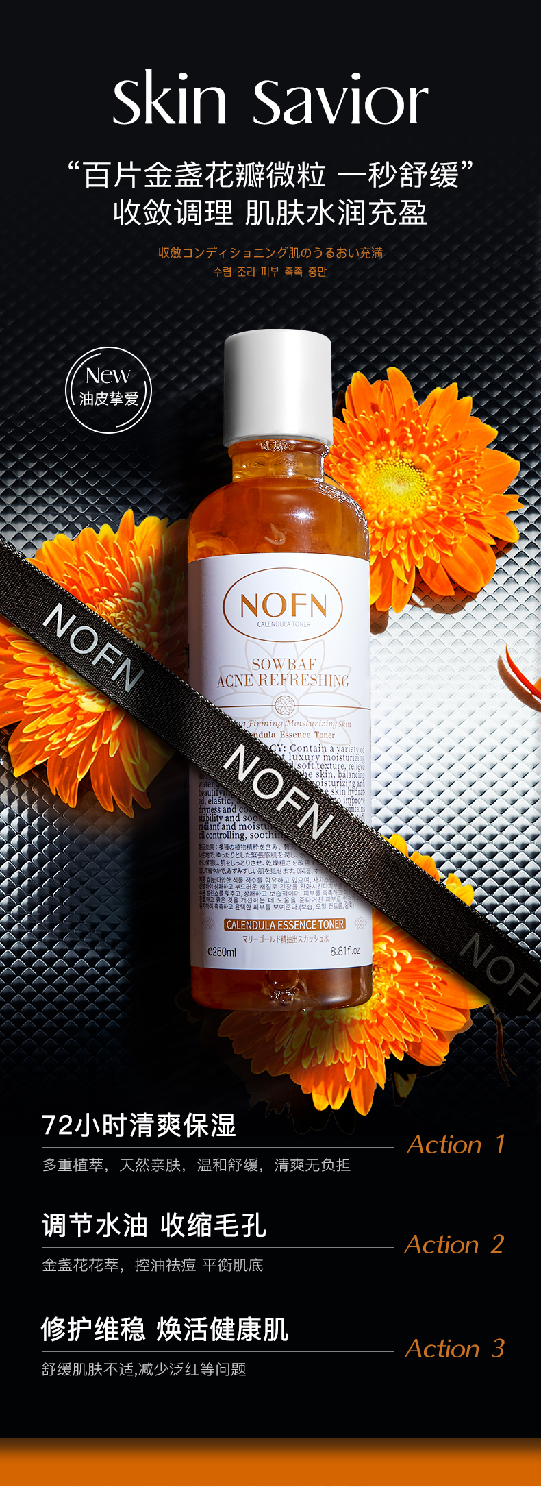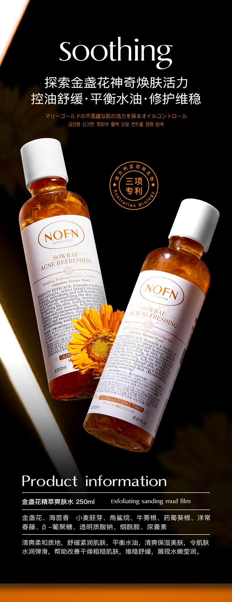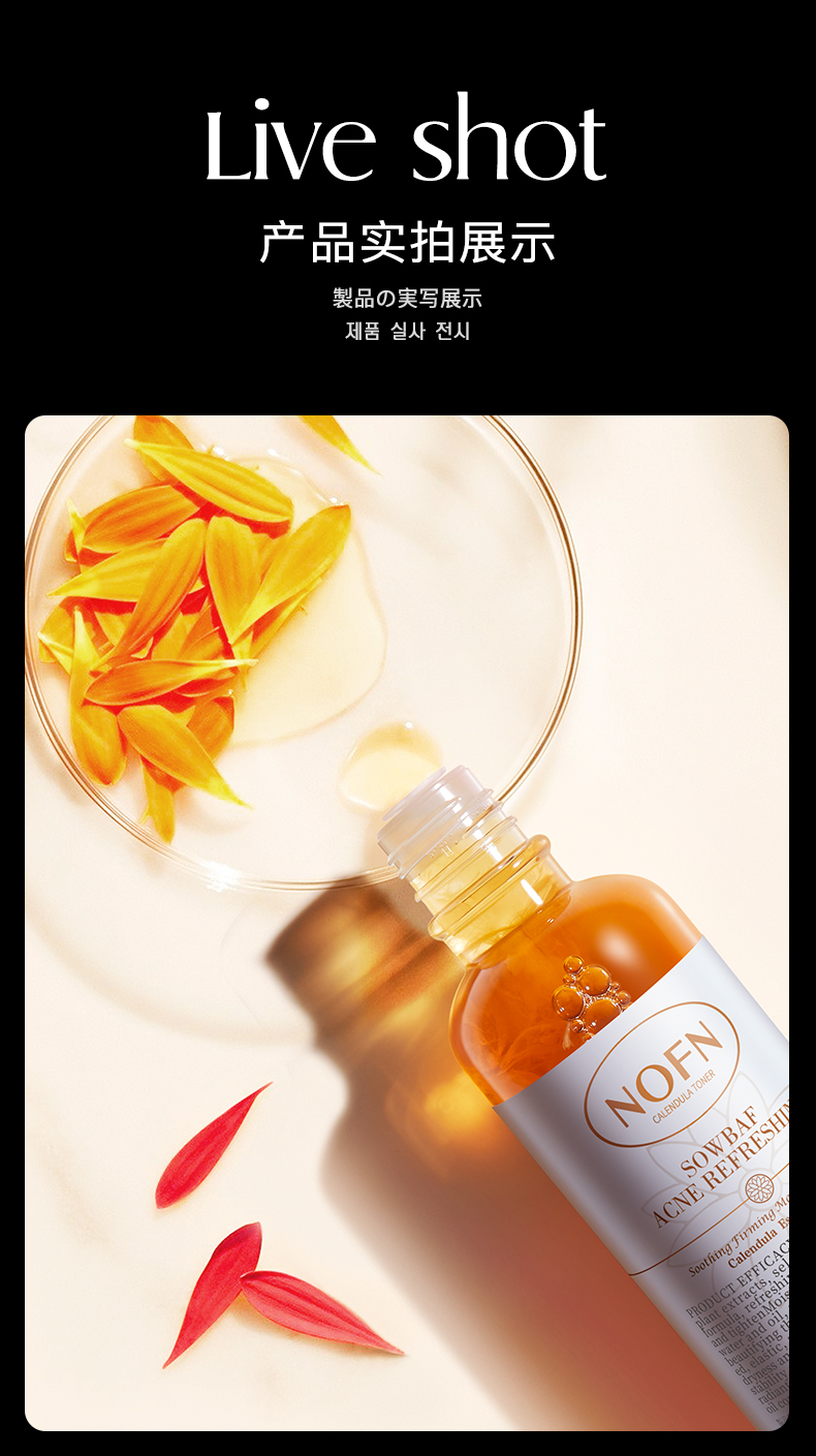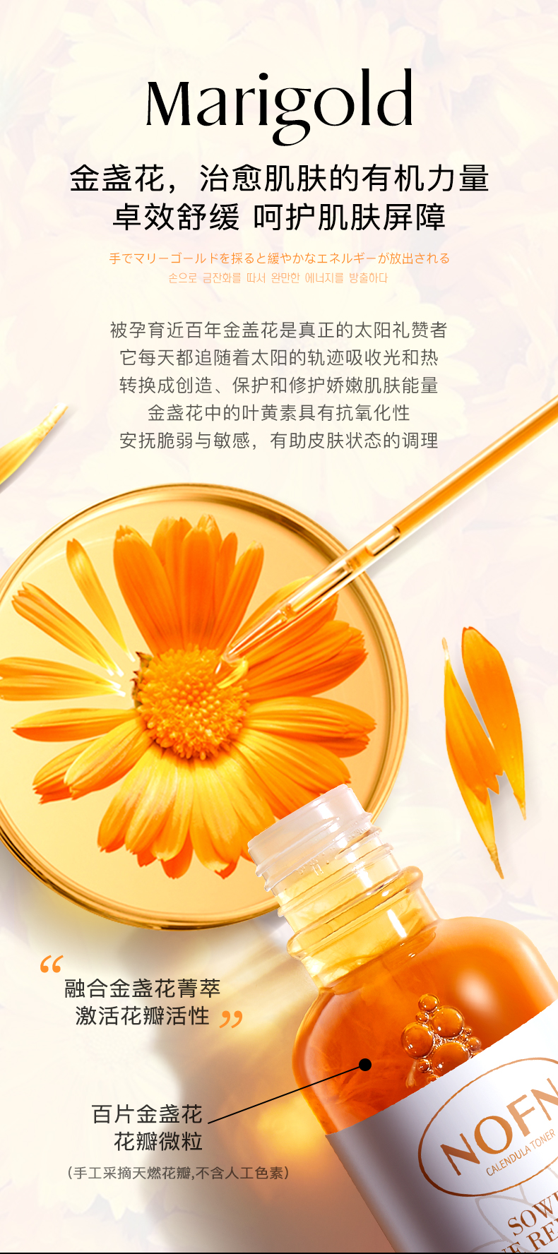 金盏花爽肤水!满满的一大瓶金盏花瓣!保留了它原有的活性!消炎舒缓!清爽的水状质地!轻轻拍打就吸收啦!清爽不粘腻!一瓶水=爽肤水+去闭口/痘精华水+控油水+舒缓精华水!!