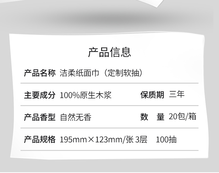 【1件5折!】洁柔抽纸定制款软抽面巾纸,3层加厚,100抽/包,整箱20包!居家必备!
