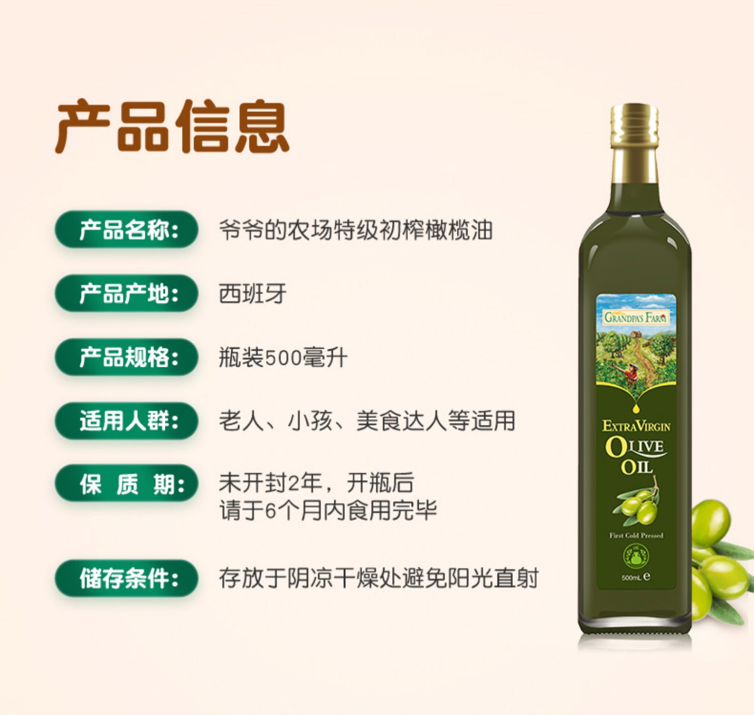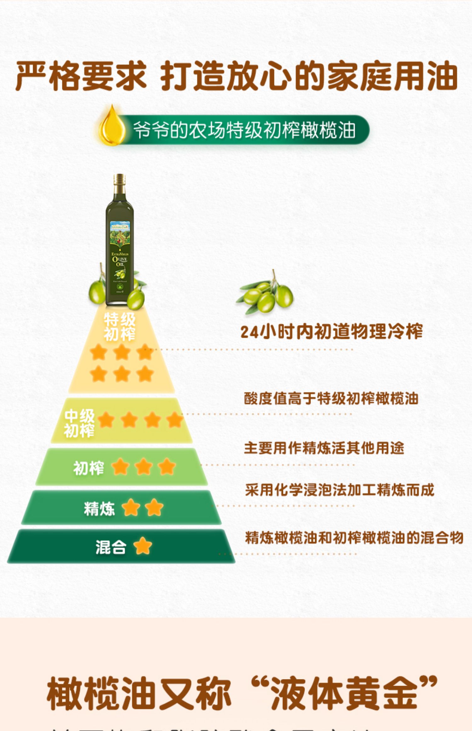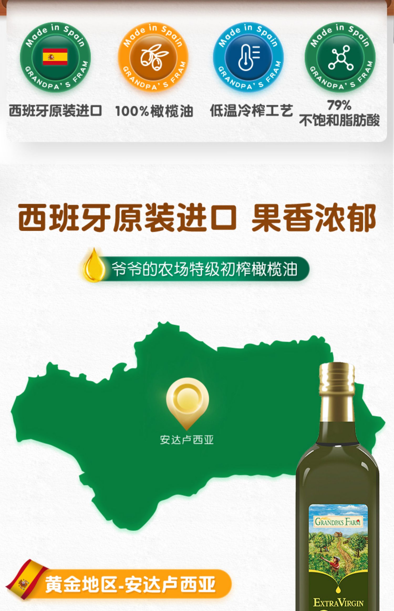 【拍两件!均价65.5/瓶,叠88vip=62/瓶】爷爷的农场橄榄油500ml*2,科学配比,营养丰富,煎炸烹煮,美食享受,含不饱和脂肪酸,降低胆固醇,健康食用油,超赞~