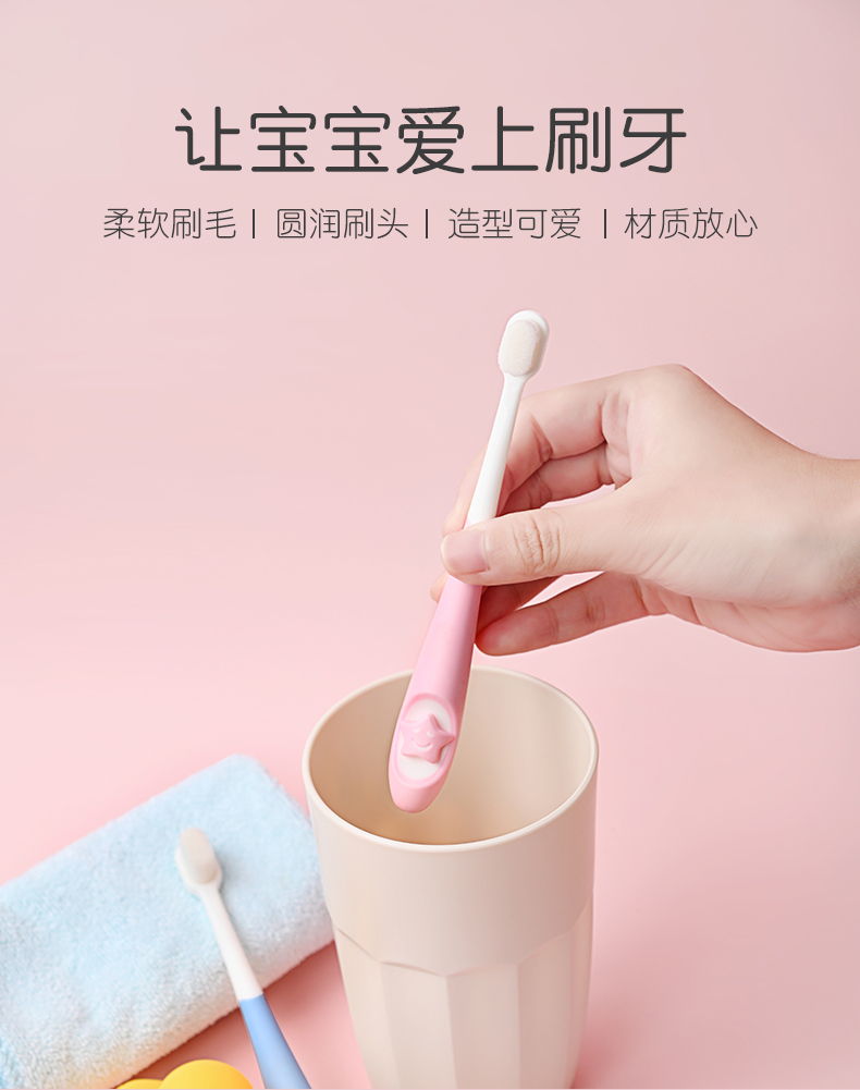 德露宝儿童软毛牙刷2支!专为宝宝设计,轻柔刷毛,圆润光滑,不伤口腔~0.07mm超微细毛,可深入口腔盲区清洁,牙齿越刷越白净,细心呵护每一颗乳牙~【包邮】