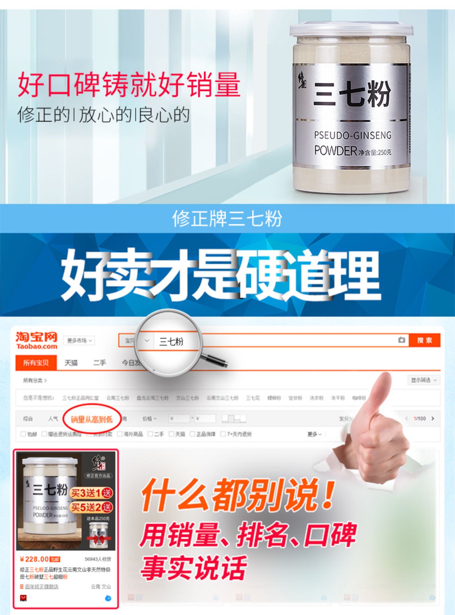 修正正品,养生必备,精细三七粉,口感细腻,提高免疫力。