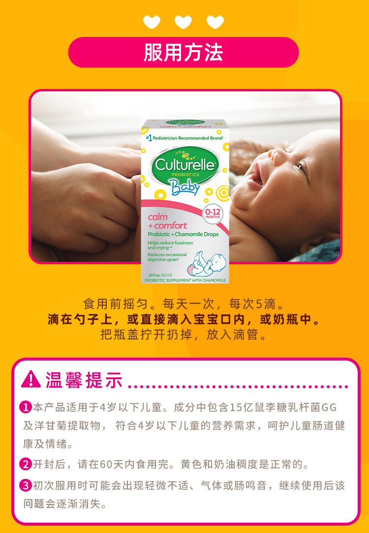 天然温和,呵护宝宝肠道,0-4岁适用,天然洋甘菊萃取,每天5滴,解决宝宝哭闹。赠运费险