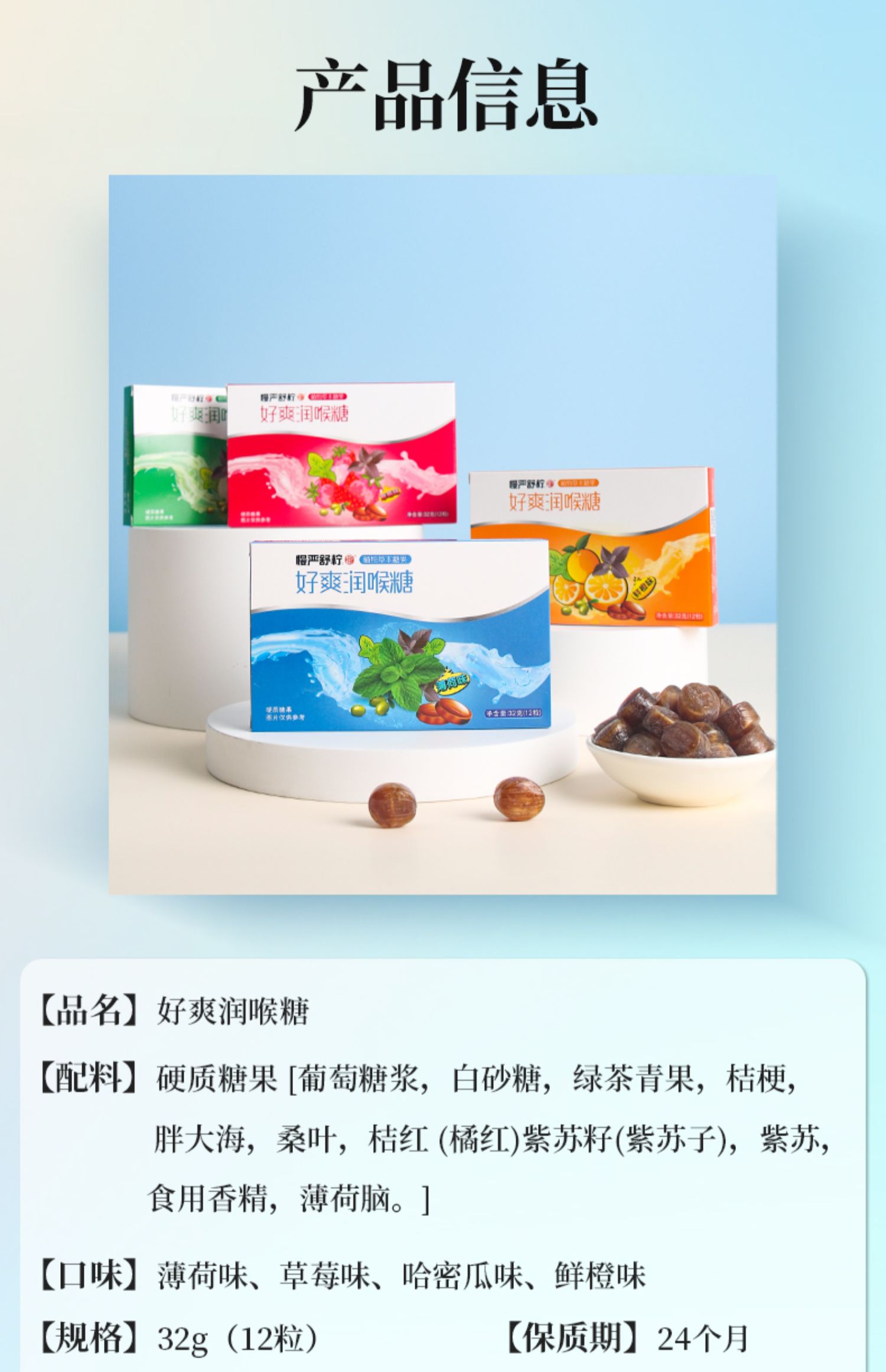 【32g*6盒】慢严舒柠护嗓润喉糖,专业护嗓33年~家中常备,慢严舒柠润喉糖!独立包装,出行包里轻松携带~草本清甜!温和护嗓,清凉不甜腻~不刺激肠胃!