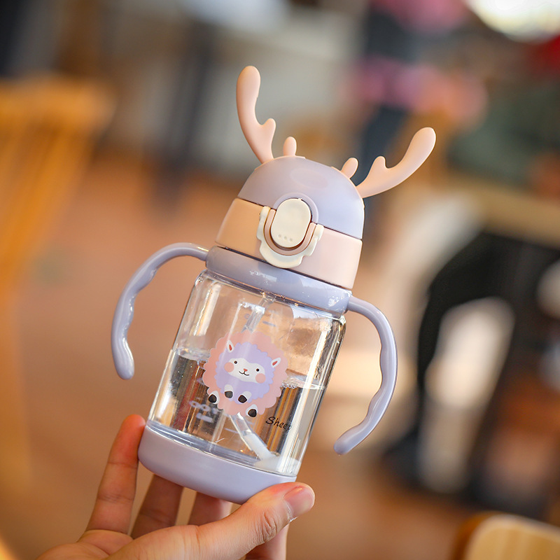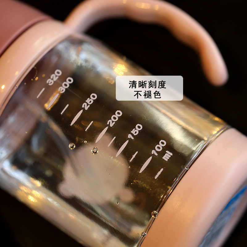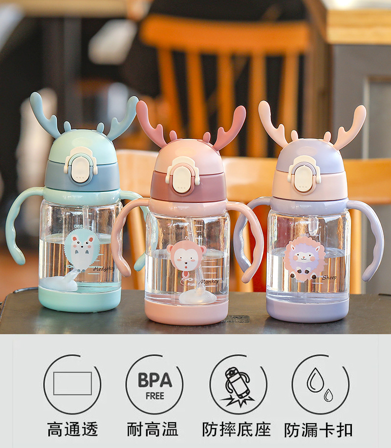 婴童学饮杯,高强度耐摔,耐磨。不含双酚A,食品级PP材料,V字咬合吸管+防呛进气孔三重防漏,开盖倒置也不漏,360度重力球设计躺饮防呛,全身可清洗,让宝宝每一口都放心