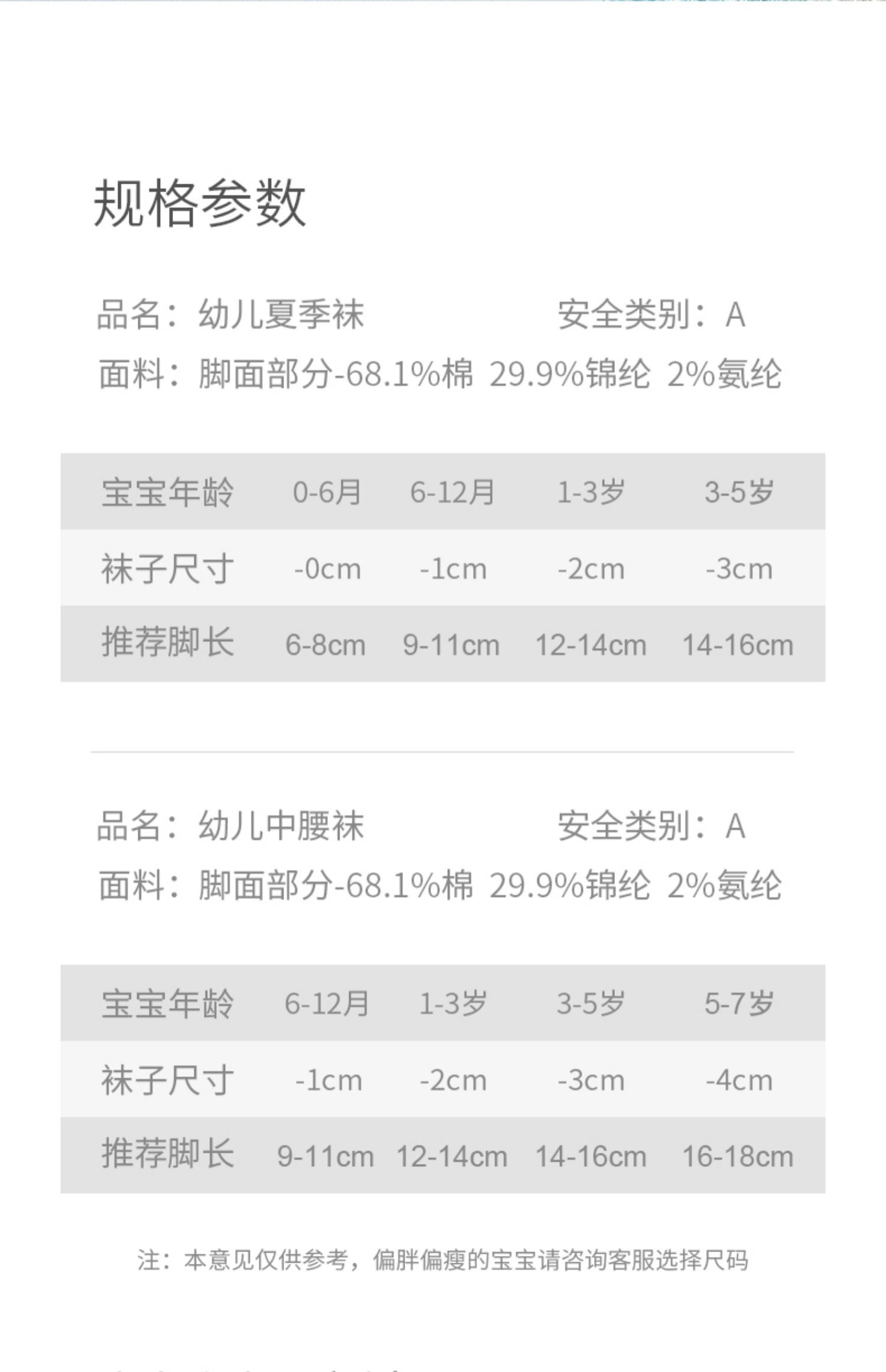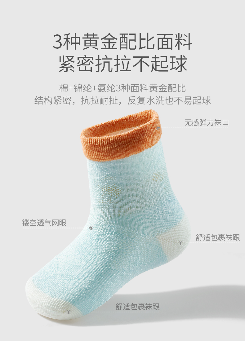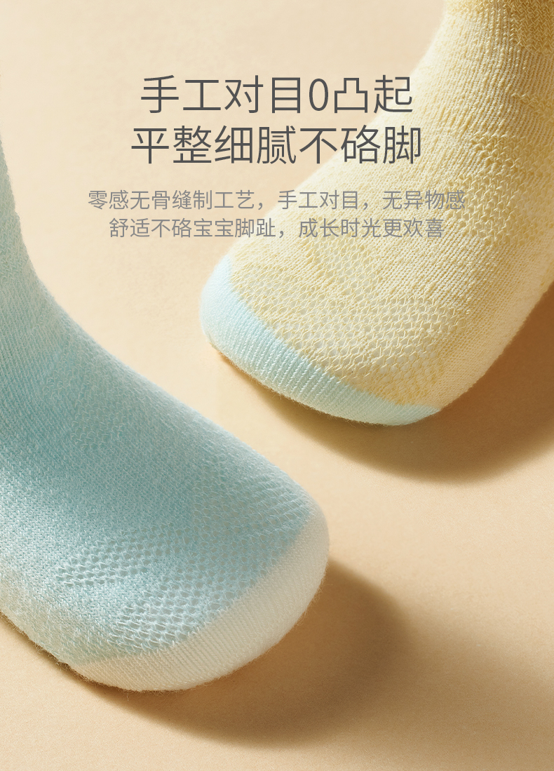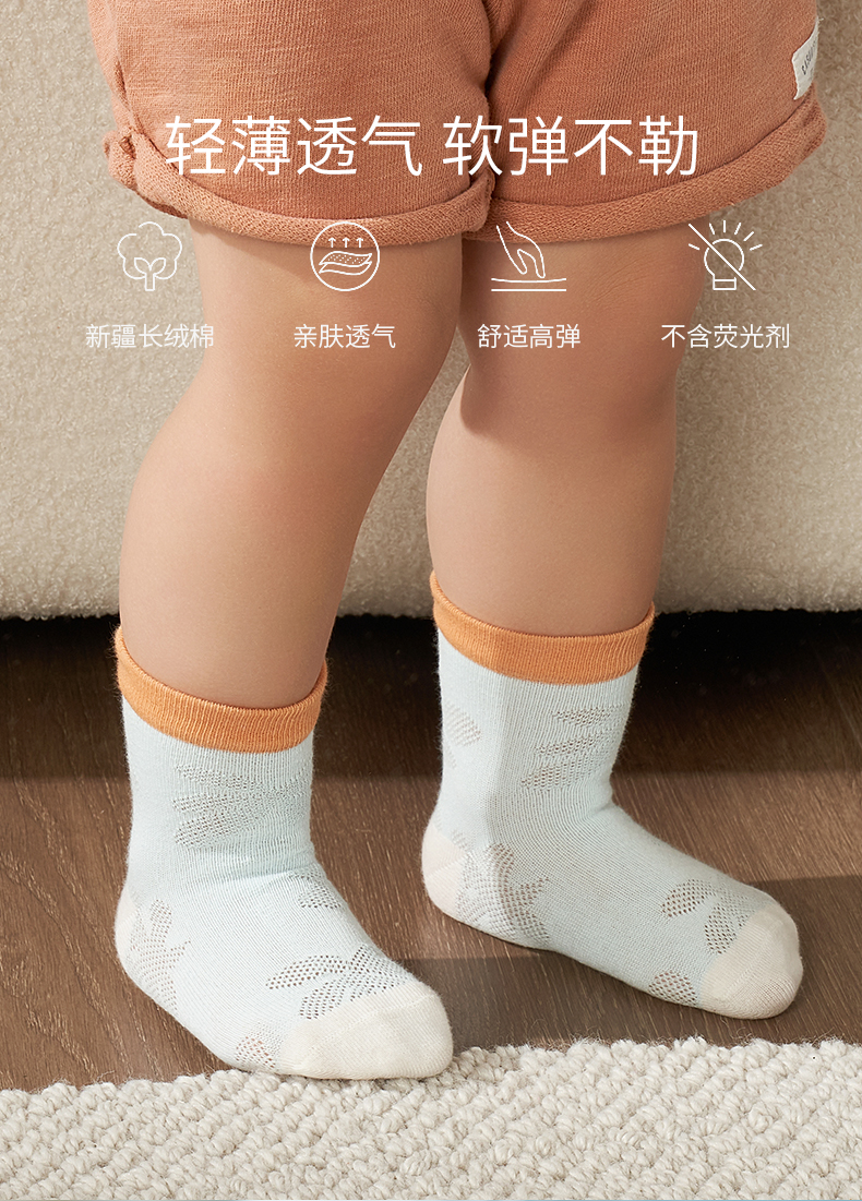 【轻薄透气,软弹不勒】吸湿透气不闷热,小脚随时在呼吸,无勒感弹力袜口,松紧恰到好处,活性印染不掉色,Color持久鲜亮,立体裁剪袜跟耐磨防滑不跑偏,三种黄金配比面料,紧密抗拉不起球,日照充足新疆棉,温柔宠爱初生肌,A类标准0荧光,亲密接触更安心