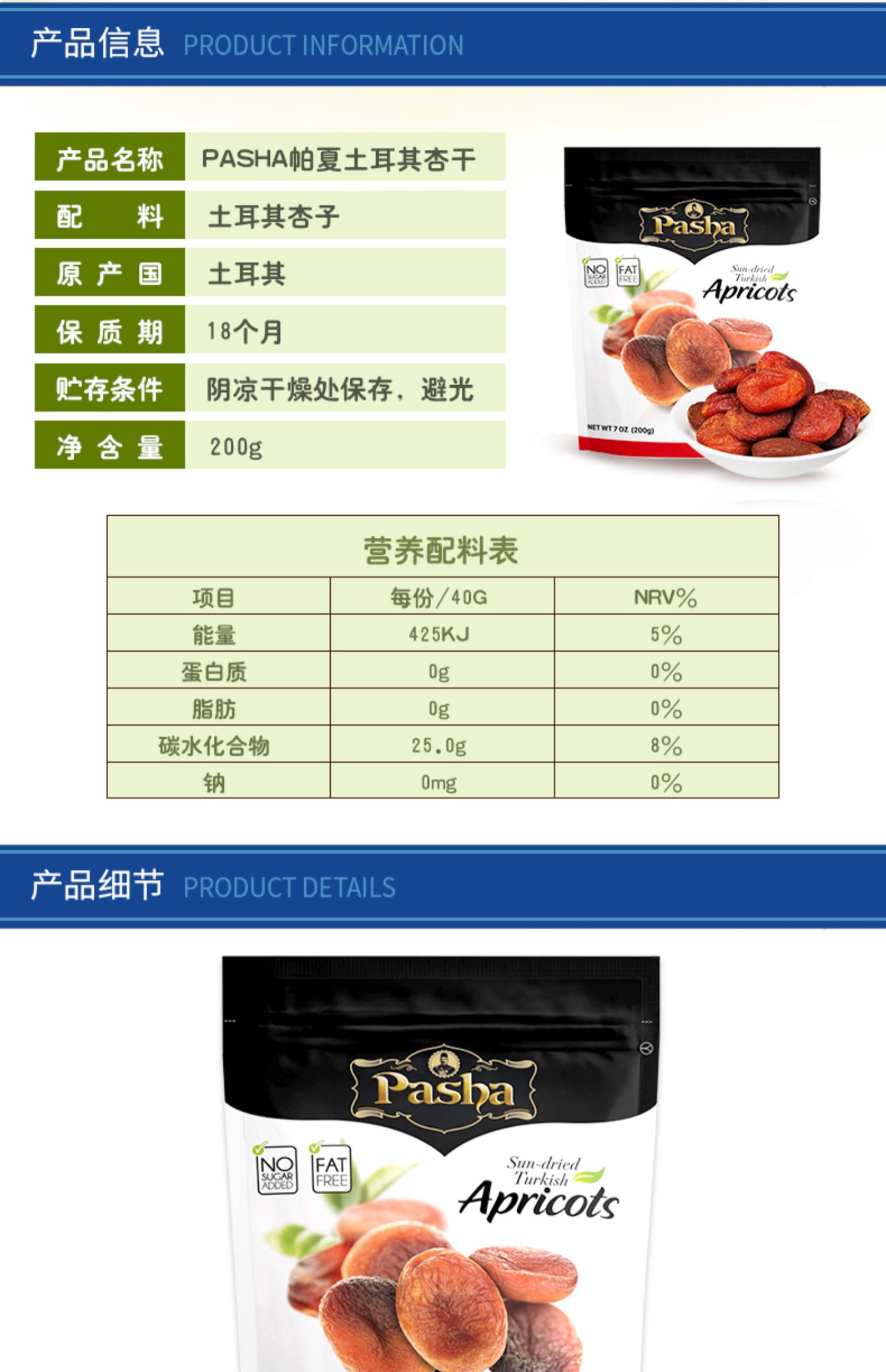 【超值进口日满300减30,满1件8折】麦德龙帕夏土耳其进口无添加杏干200gx5包欧洲进口蜜饯果干,颗粒饱满,口感软糯,丝滑,无添加,天然美食,一口入嘴,鲜甜带酸,美味悄悄在嘴角洋溢~