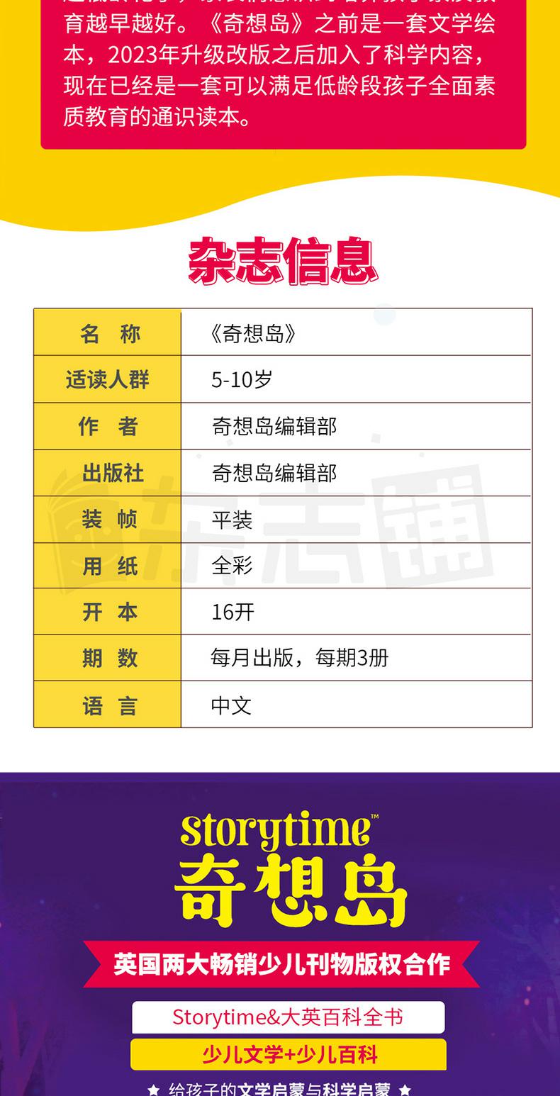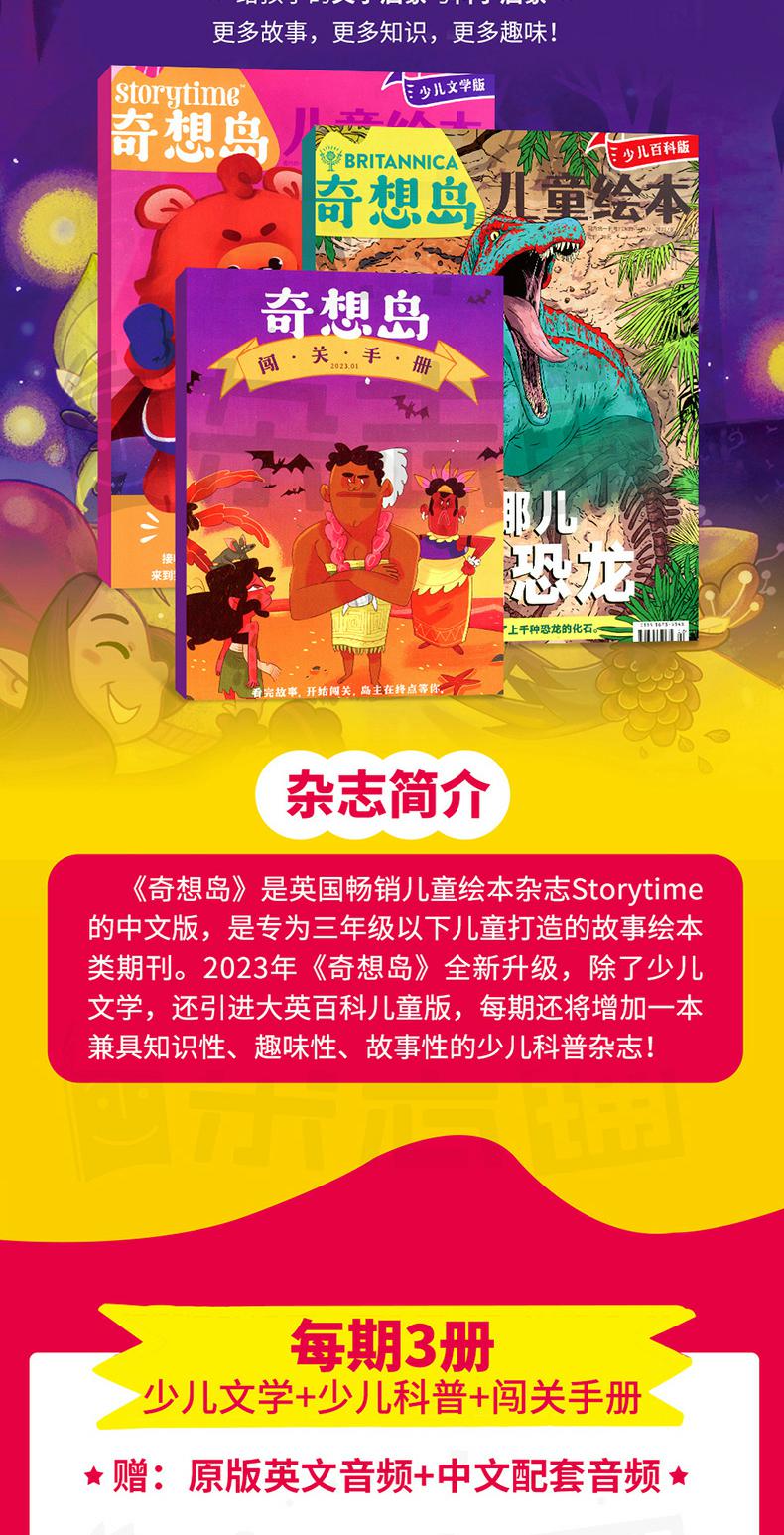 【英国引进】经典文学作品,英国storytime中文版杂志,奇想岛,赠闯关手册,全3册,少儿文学故事刊物。2023年新版,16开大版本印刷,插图精美,宝宝童话故事绘本,儿童课外阅读必备,中小学生必读课外读物。