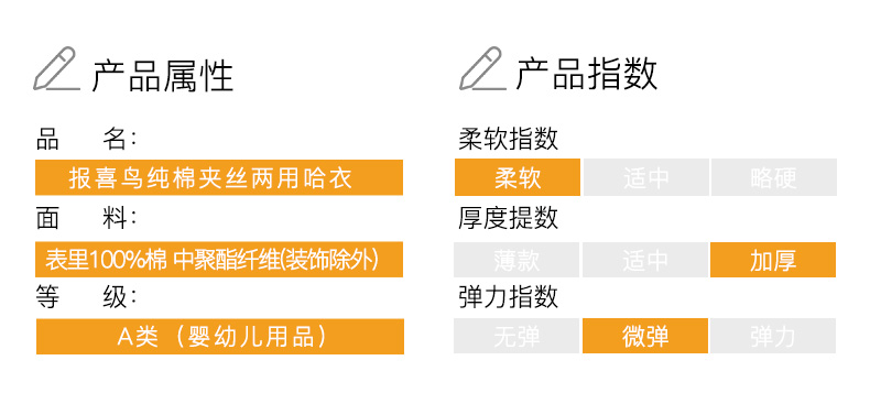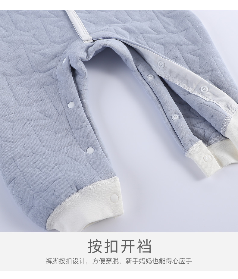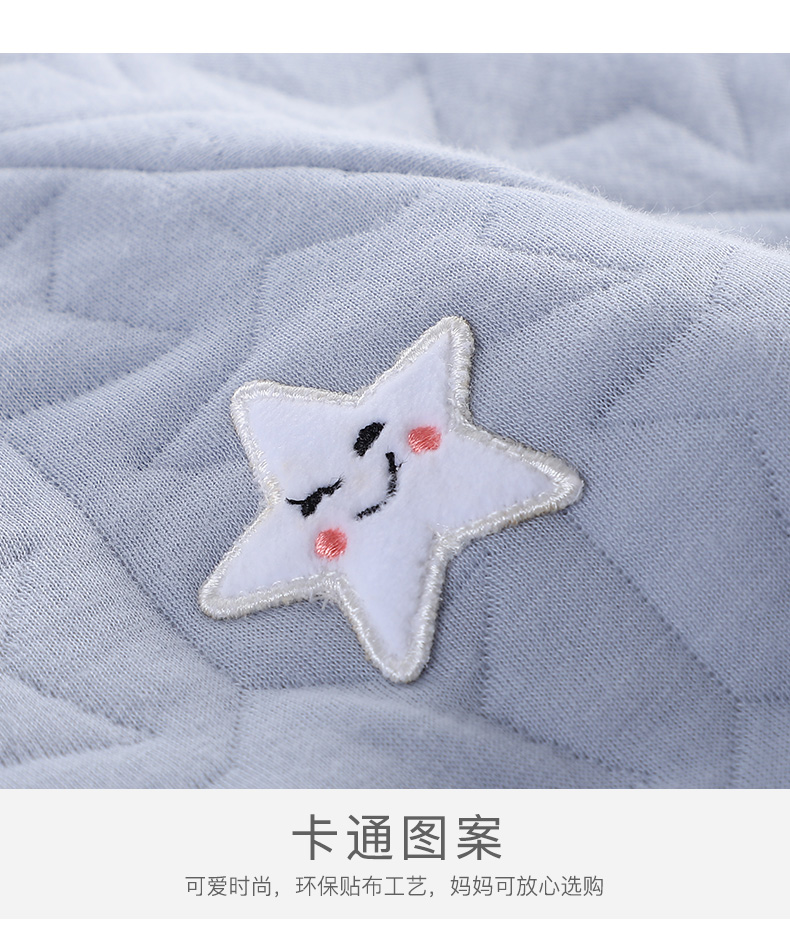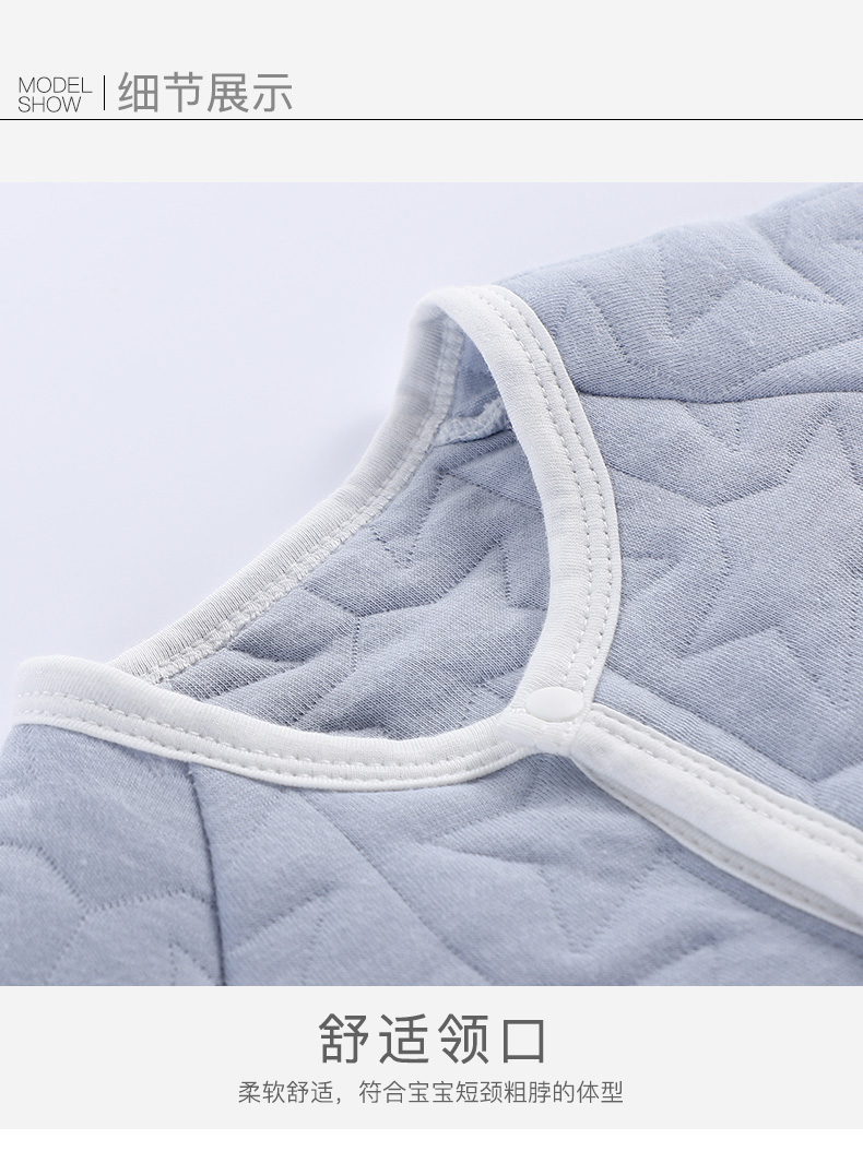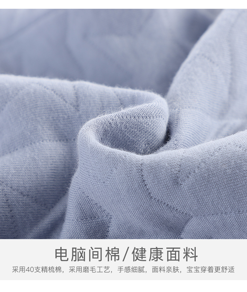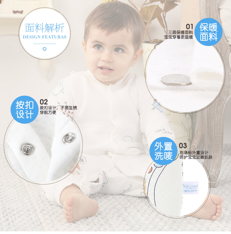 A类纯棉材质,柔软舒适,三层保暖工艺,秋冬可穿,卡通童趣印染,可爱时尚,舒适领口,按扣设计,专为宝宝量身定制,妈妈品质之选!!!