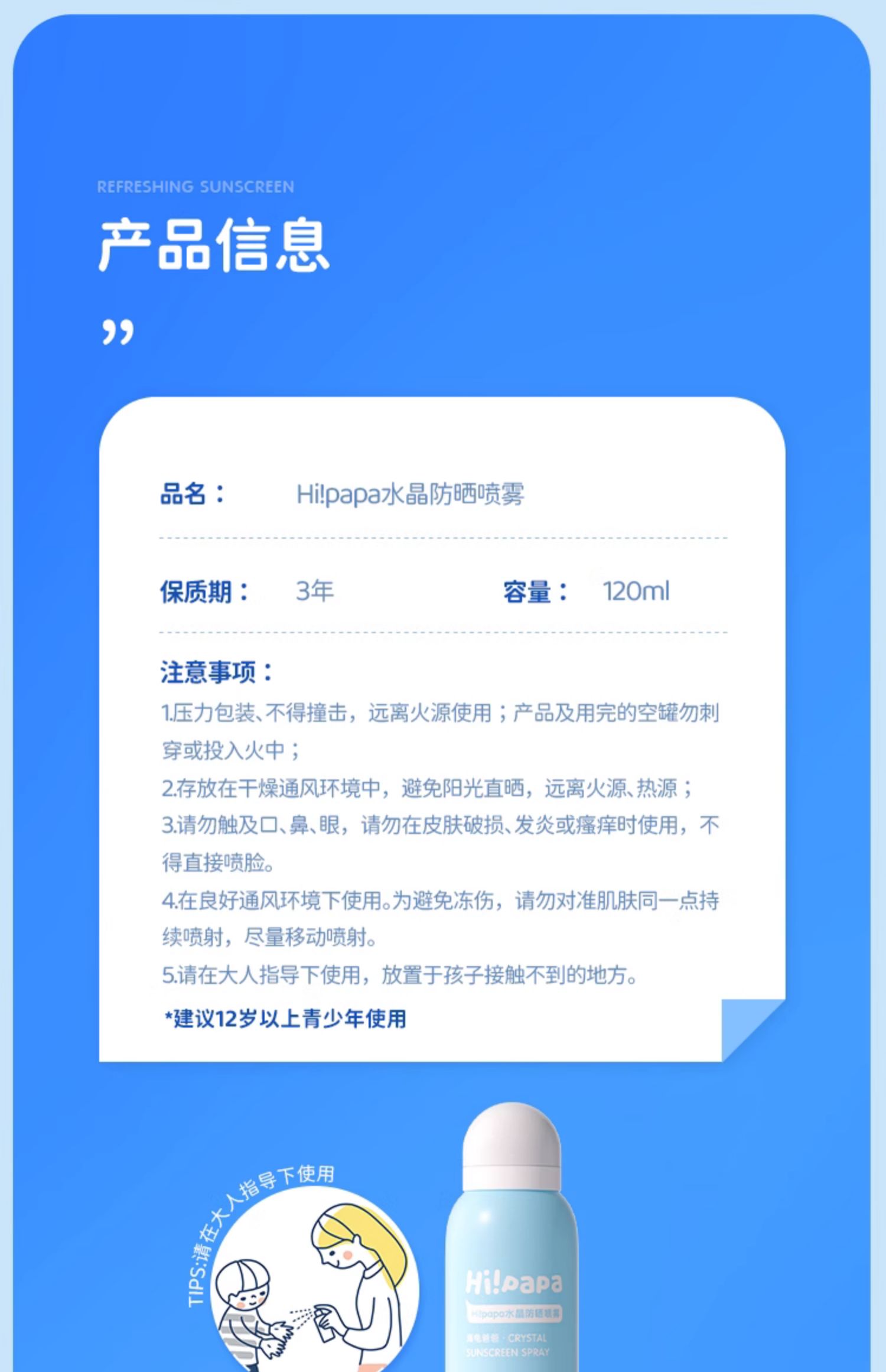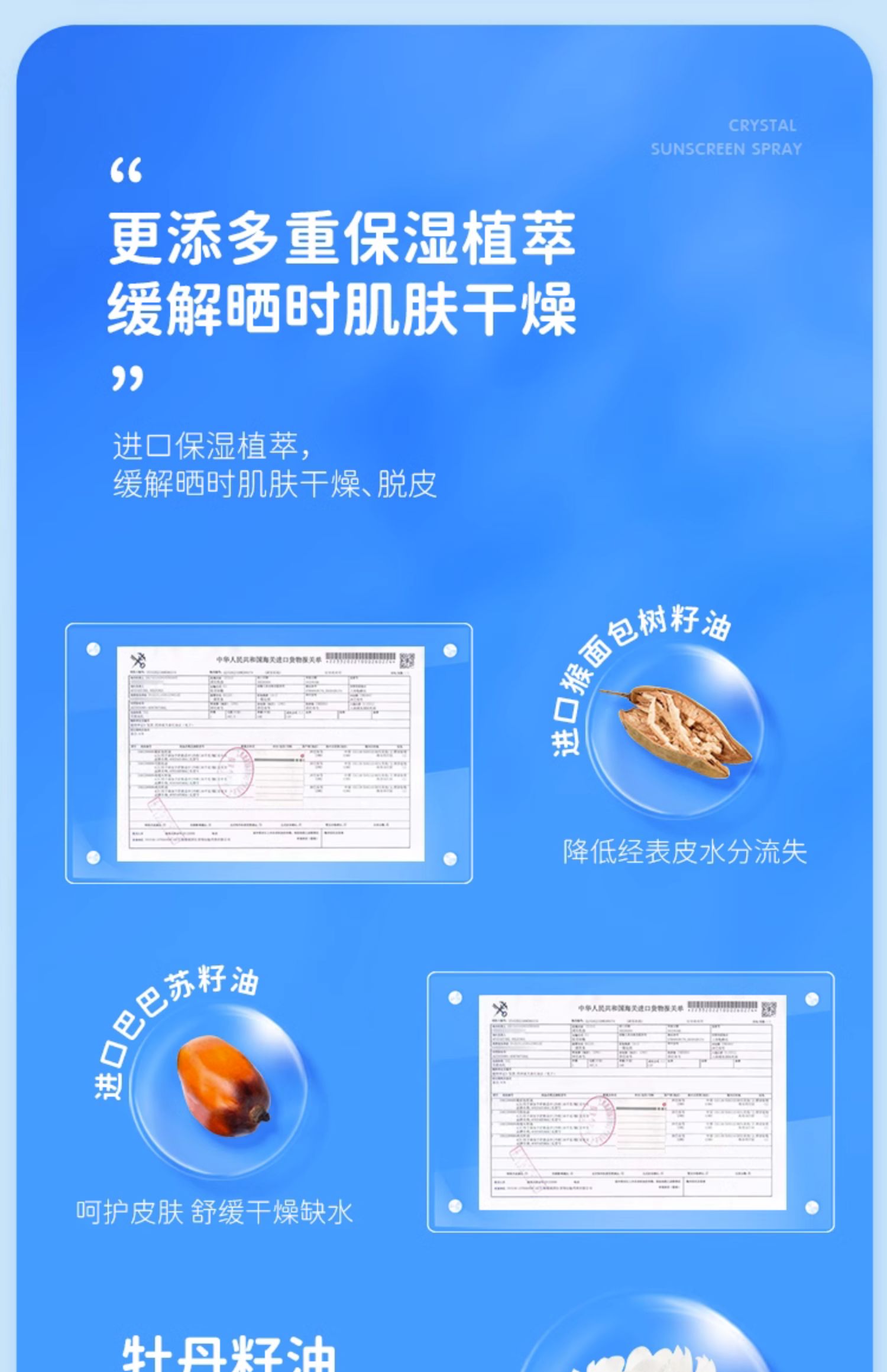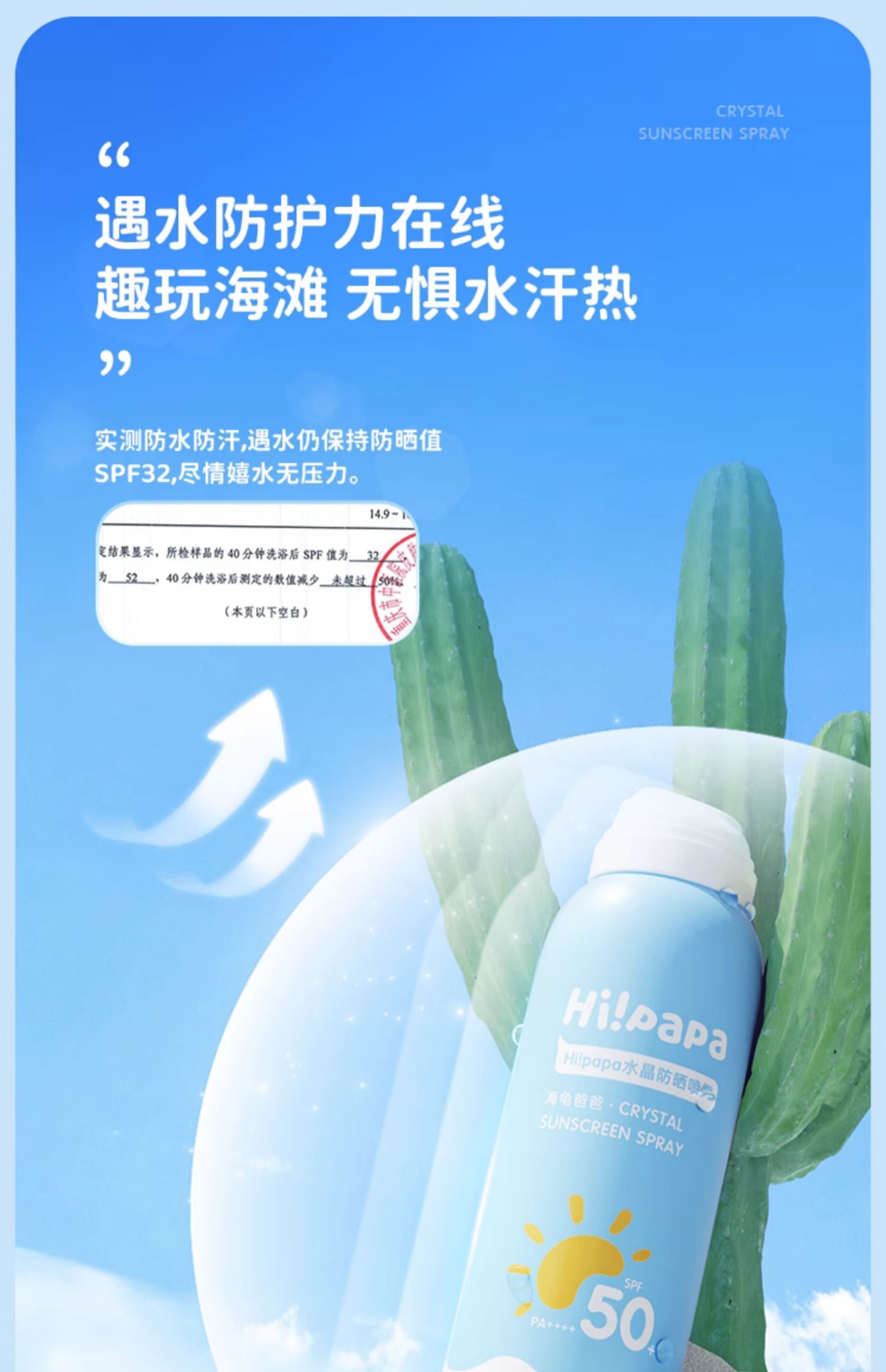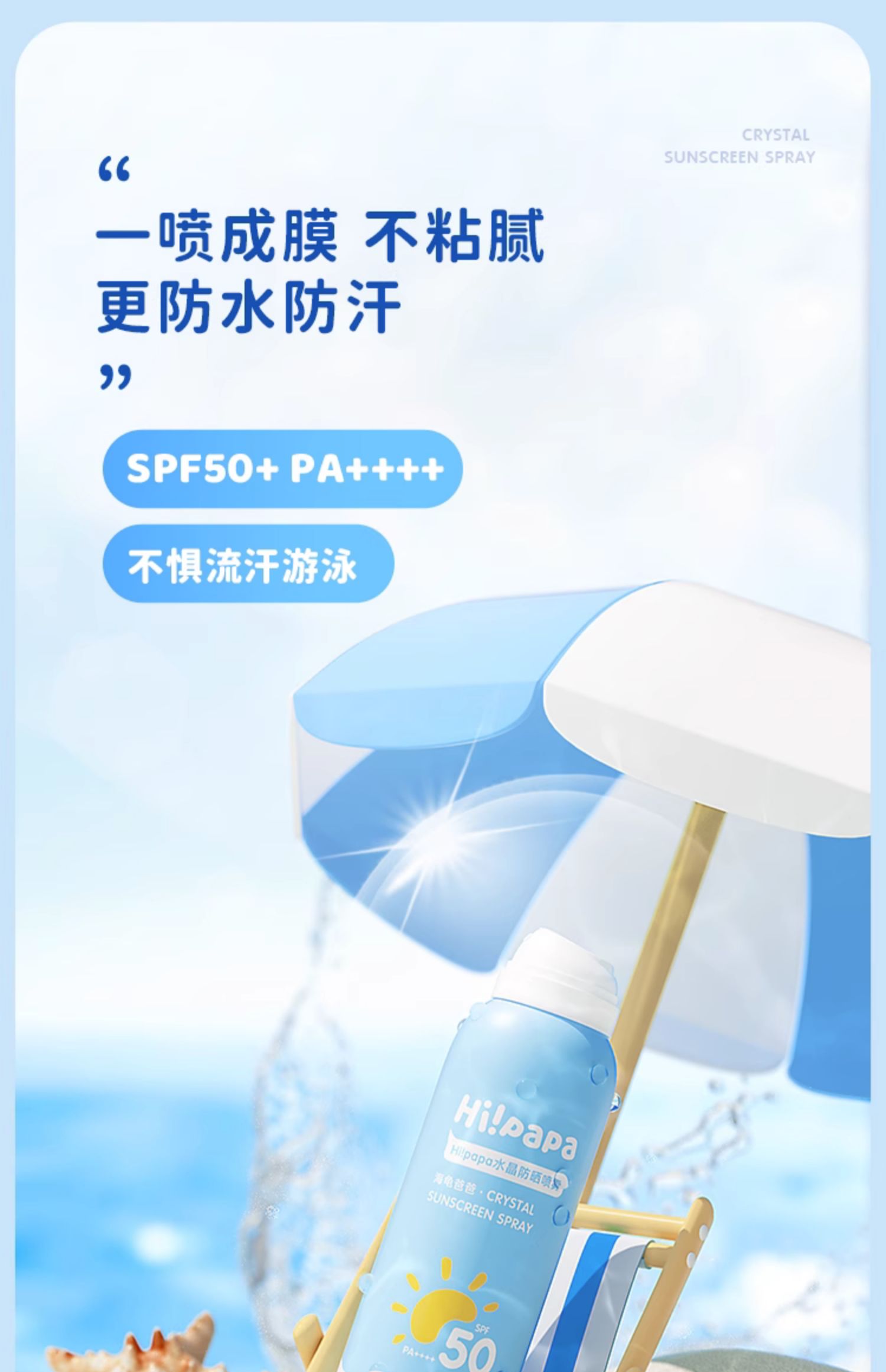 夏季必备!海龟爸爸水晶防晒喷雾,SPF50+防晒红12h,MPA+++防晒黑16h,遇水保持SPF32,不含有害粉尘,自然无色易喷快速成膜,敏感清爽不易过敏。携带方便随时随地方便补喷~【赠运费险】