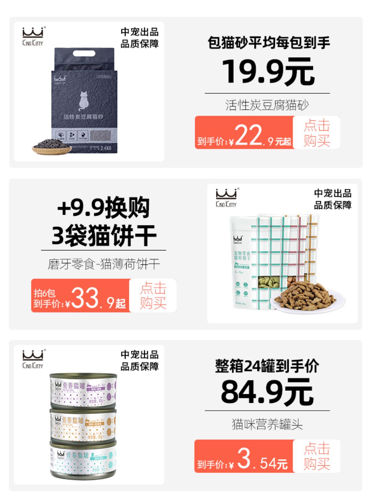 主打性价比 KingKitty猫零食鱼籽酱猫条6包共30支14.9元 安全无添加,适口性非常好 三种口味可选,高冷喵都馋!!