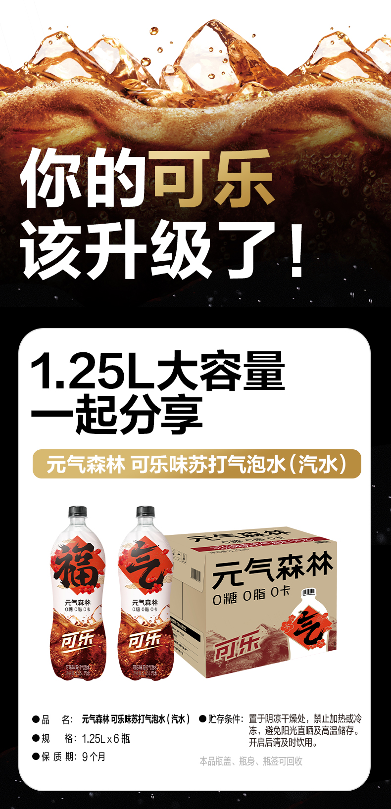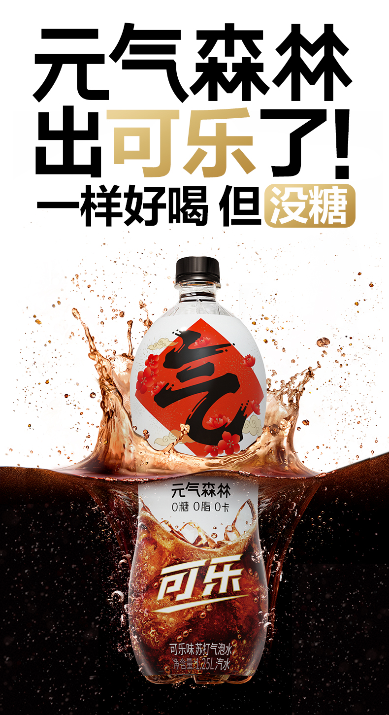 【下单立减20元,领5元元券,到手54.9元】新客5元福袋到手49.9元!元气森林气泡水饮料0糖0脂0卡可乐味1.25LX6瓶,夏天冰镇来一瓶!