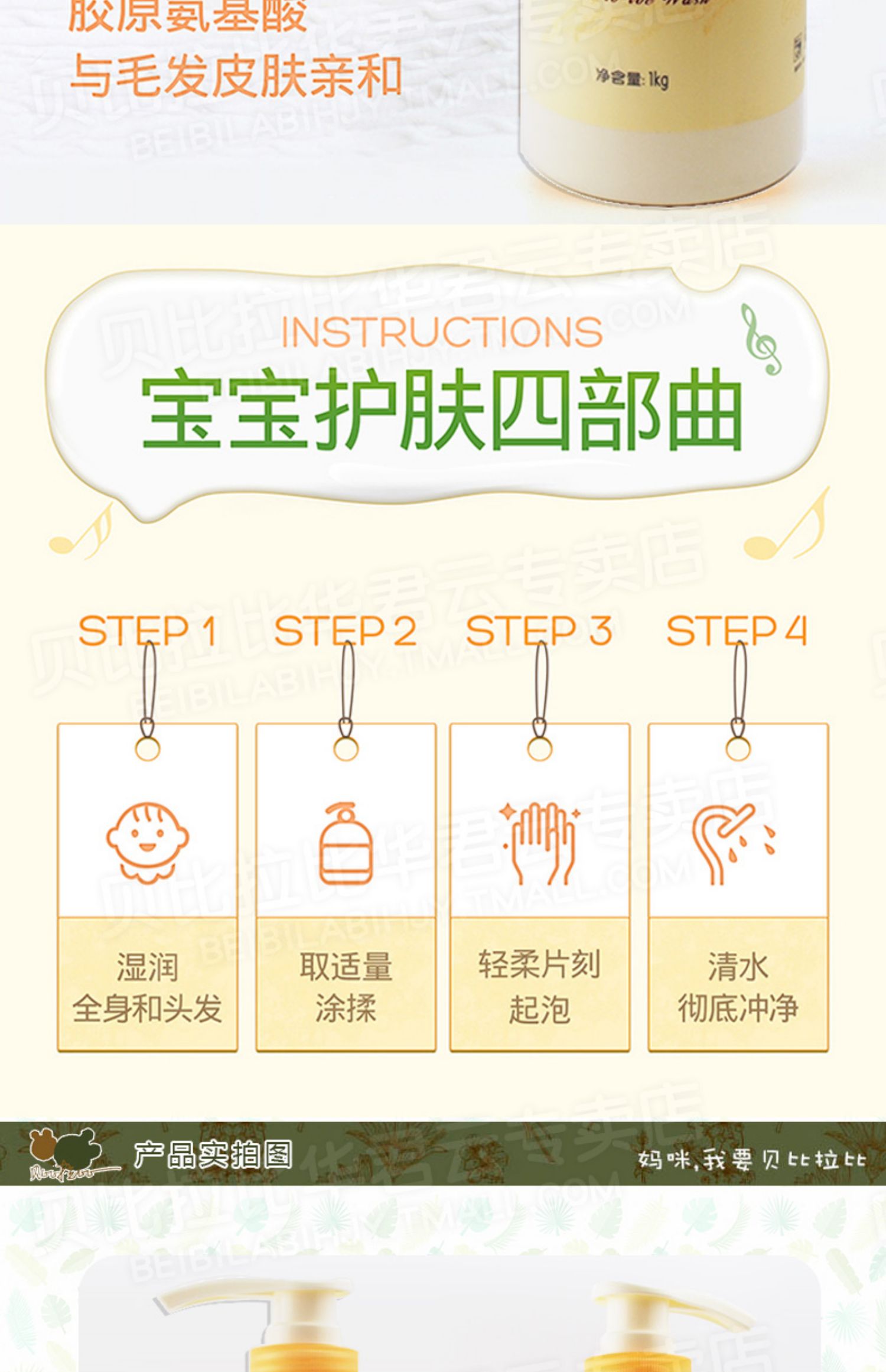 贝比拉比婴儿舒缓洗发沐浴二合一,纯植物配方,原料温和,不含多种化学成分,更亲肤。气味温和,不刺鼻。新一代亲肤活性成分,亲和婴儿皮肤,功效出色,安心舒适