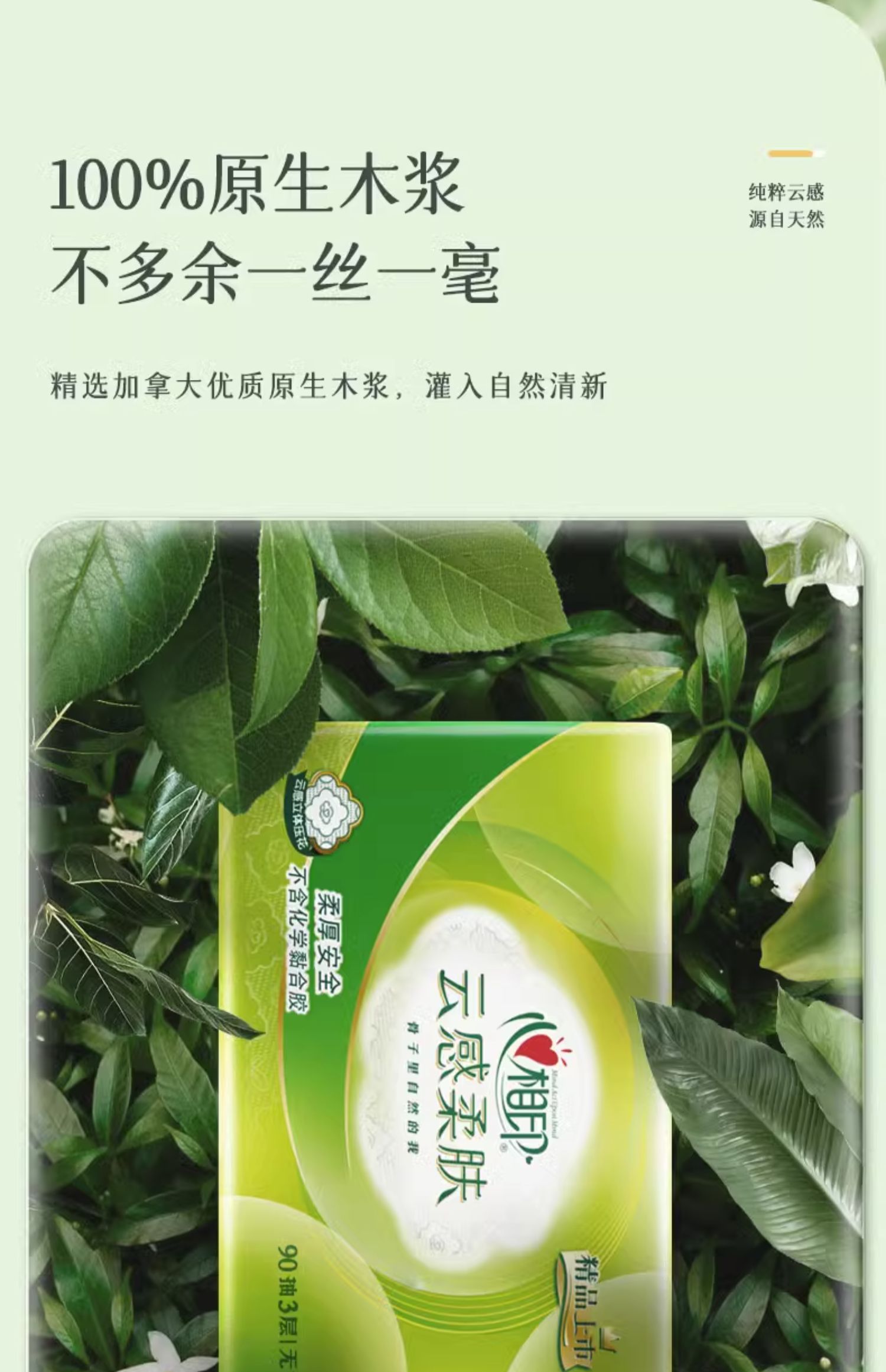 抢36包的套餐,【心相印旗舰店】三层加厚加大,130mm×190mm,独创云感立体压花,棉柔亲肤云感立体压花空气枕;进口原生木浆,不含化学粘合胶,更健康;WEC推荐产品,不含可迁移性荧光增白剂,安全健康;黄金柔韧配比,湿水不易破,棉柔亲肤无刺激!!
