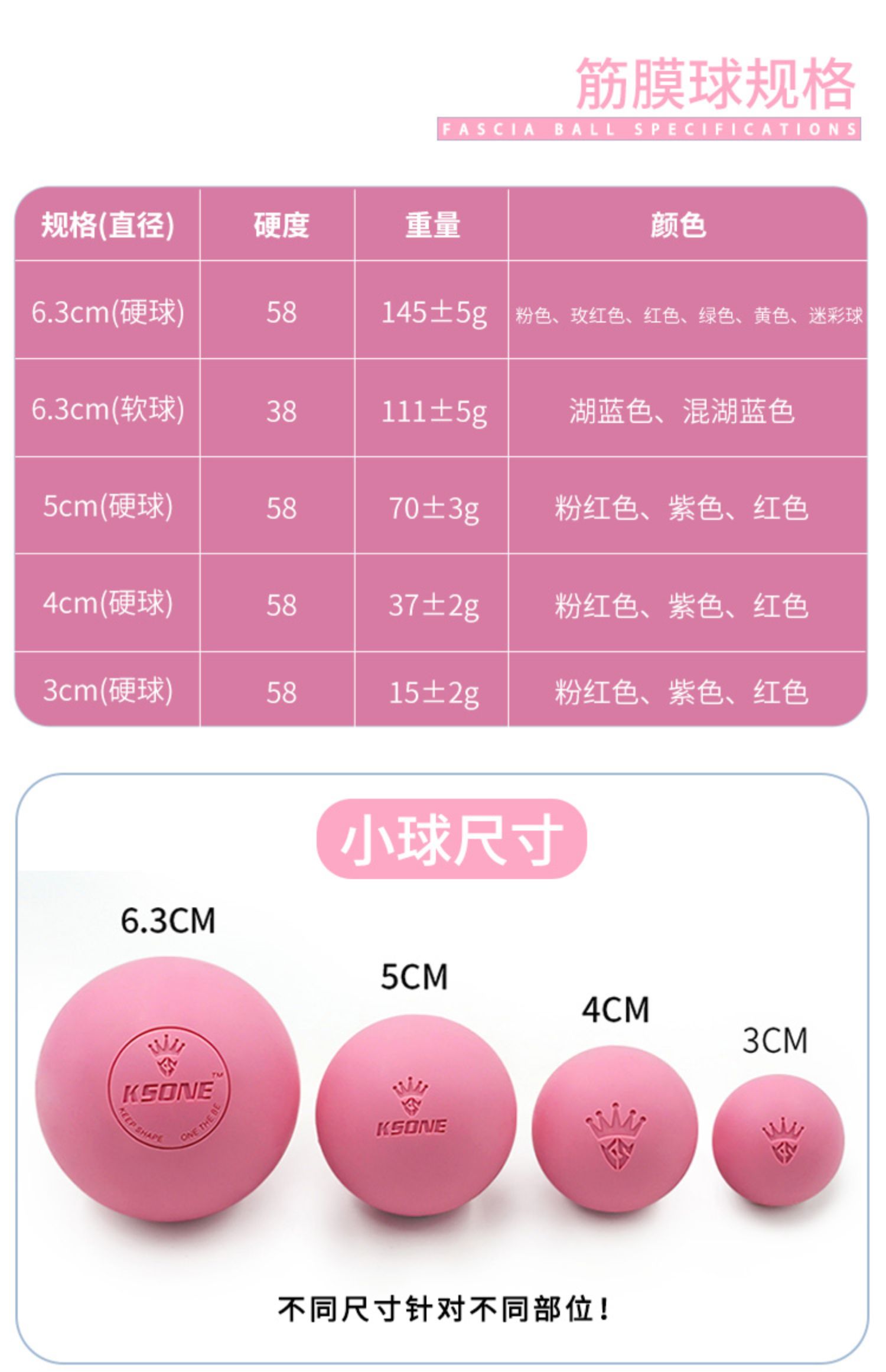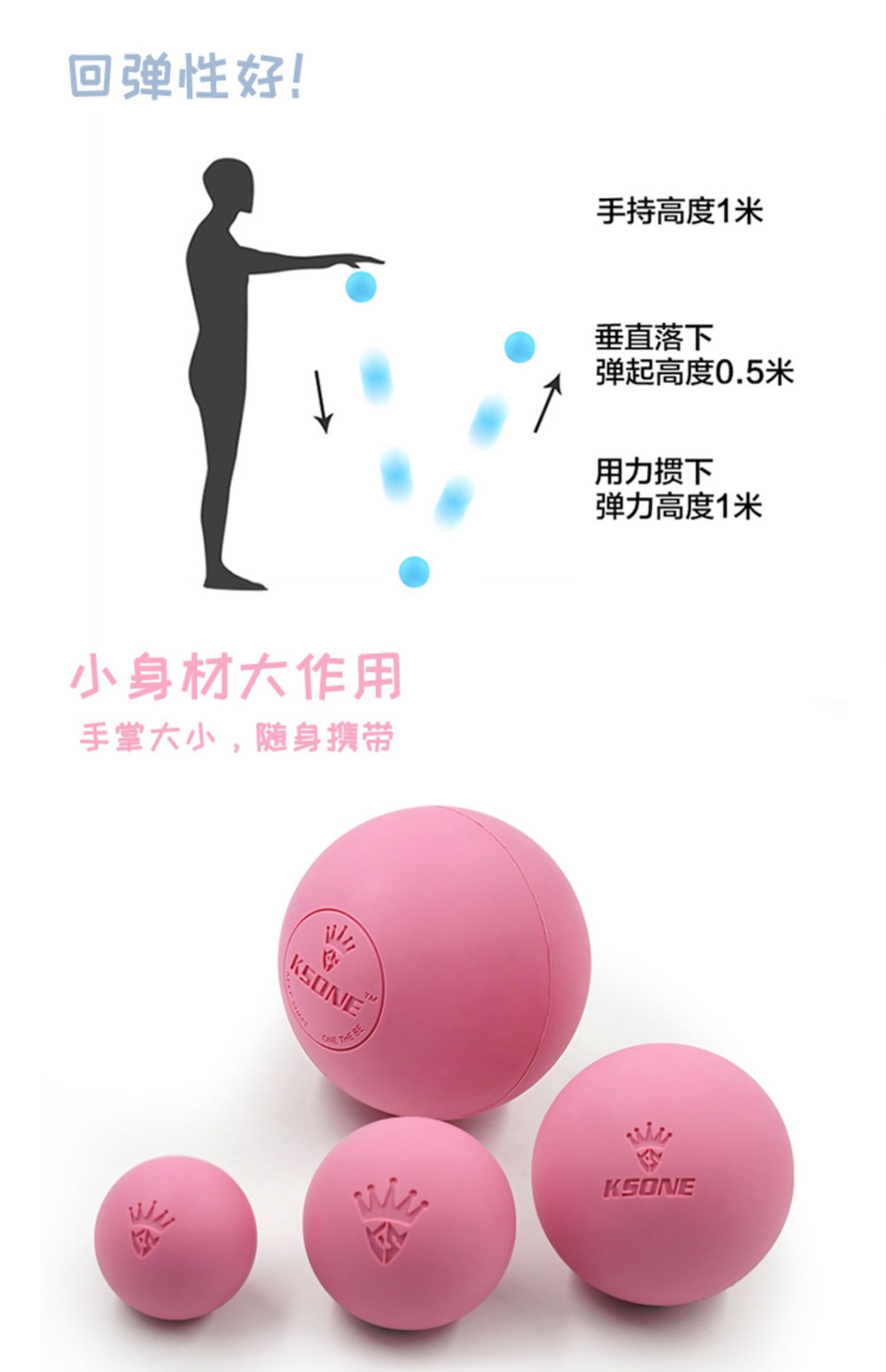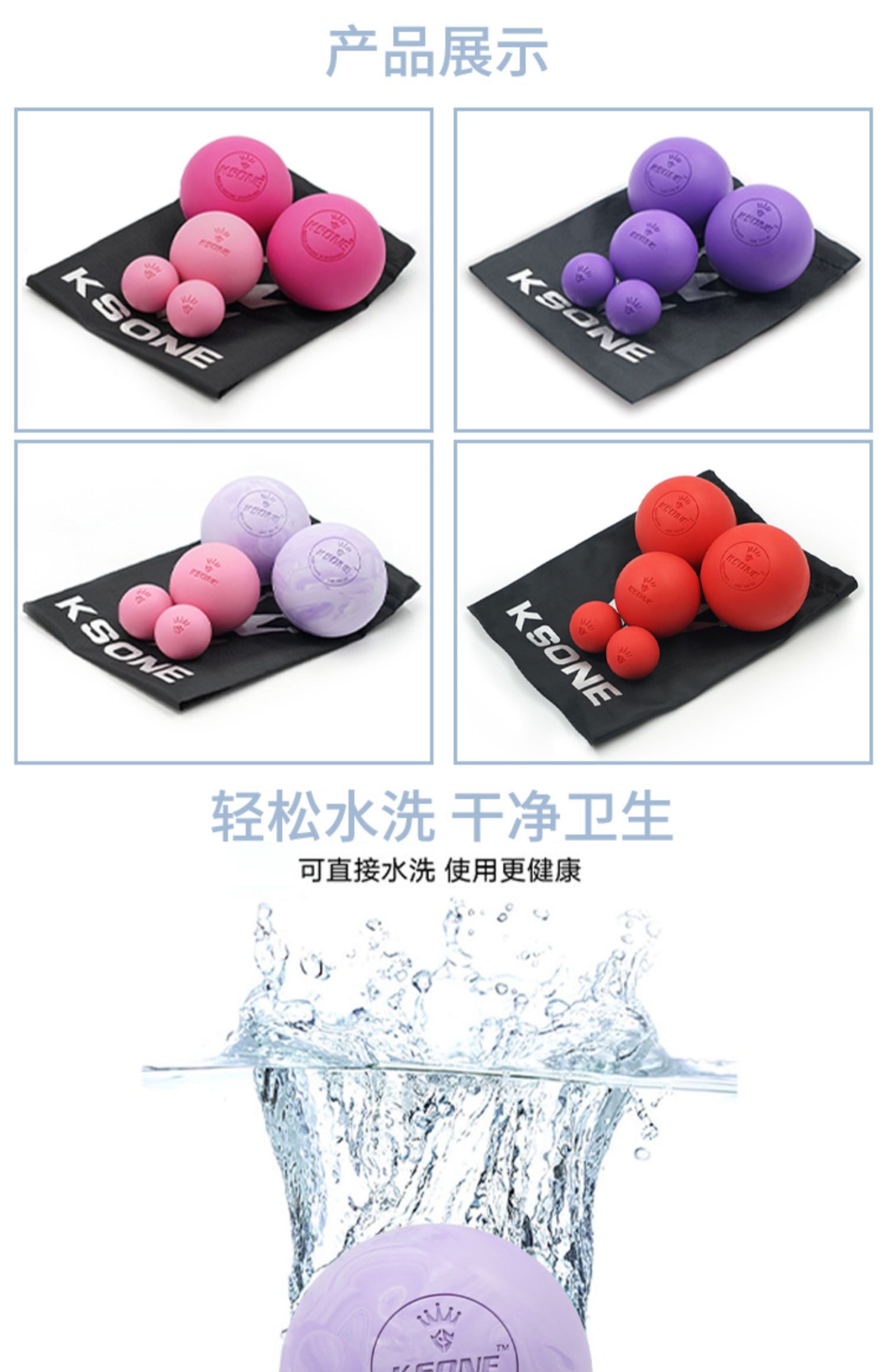 【淘金币可抵0.60元】Ksone筋膜球套装,原生橡胶为原料,安全健康,使用更放心,小身材,大作用,不同尺寸针对不同部位,轻松水洗,干净卫生,随时随地享受按摩的乐趣!