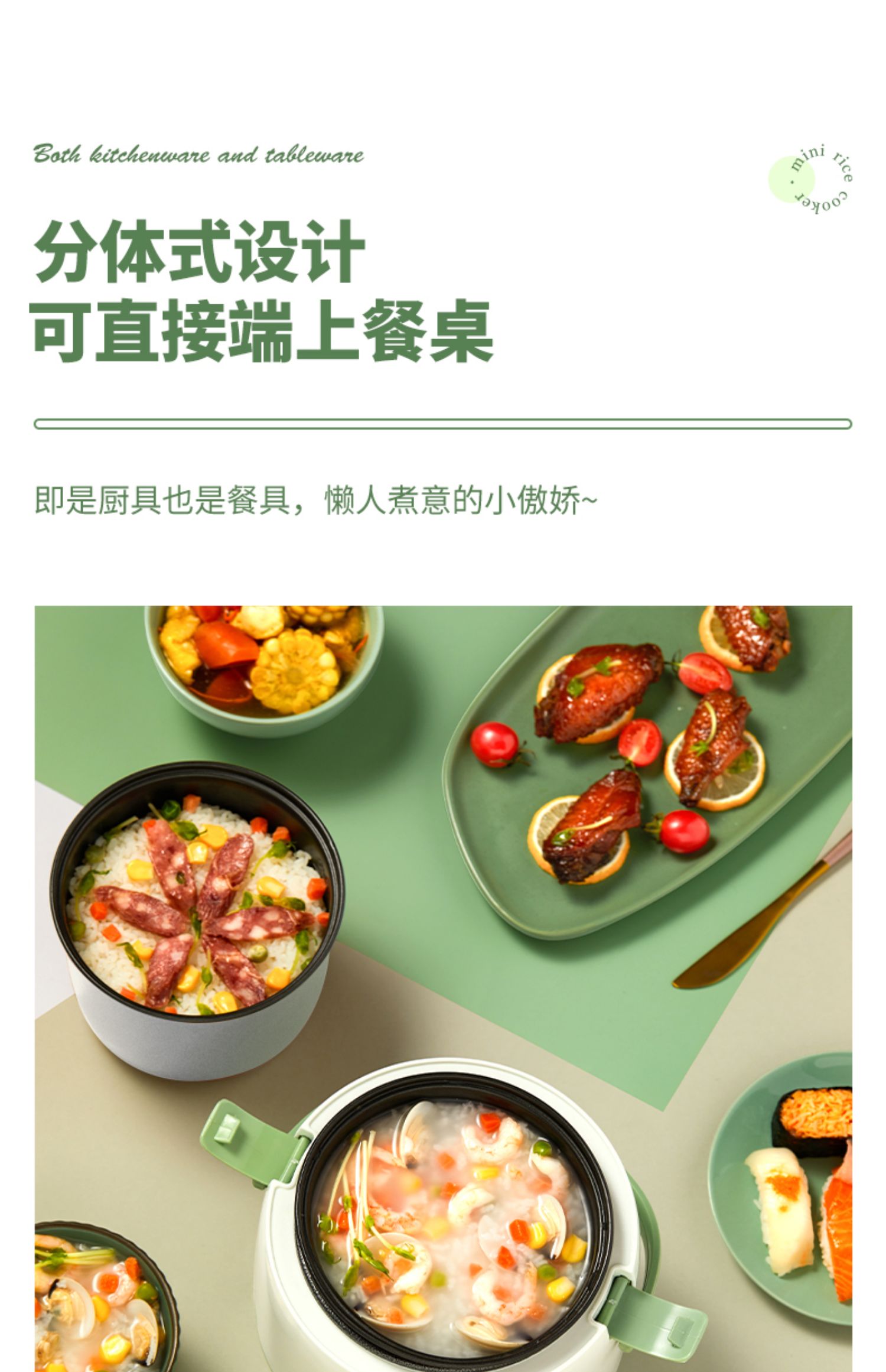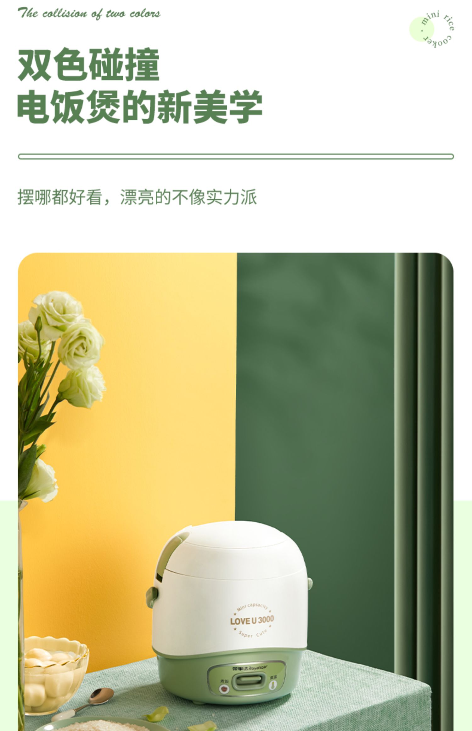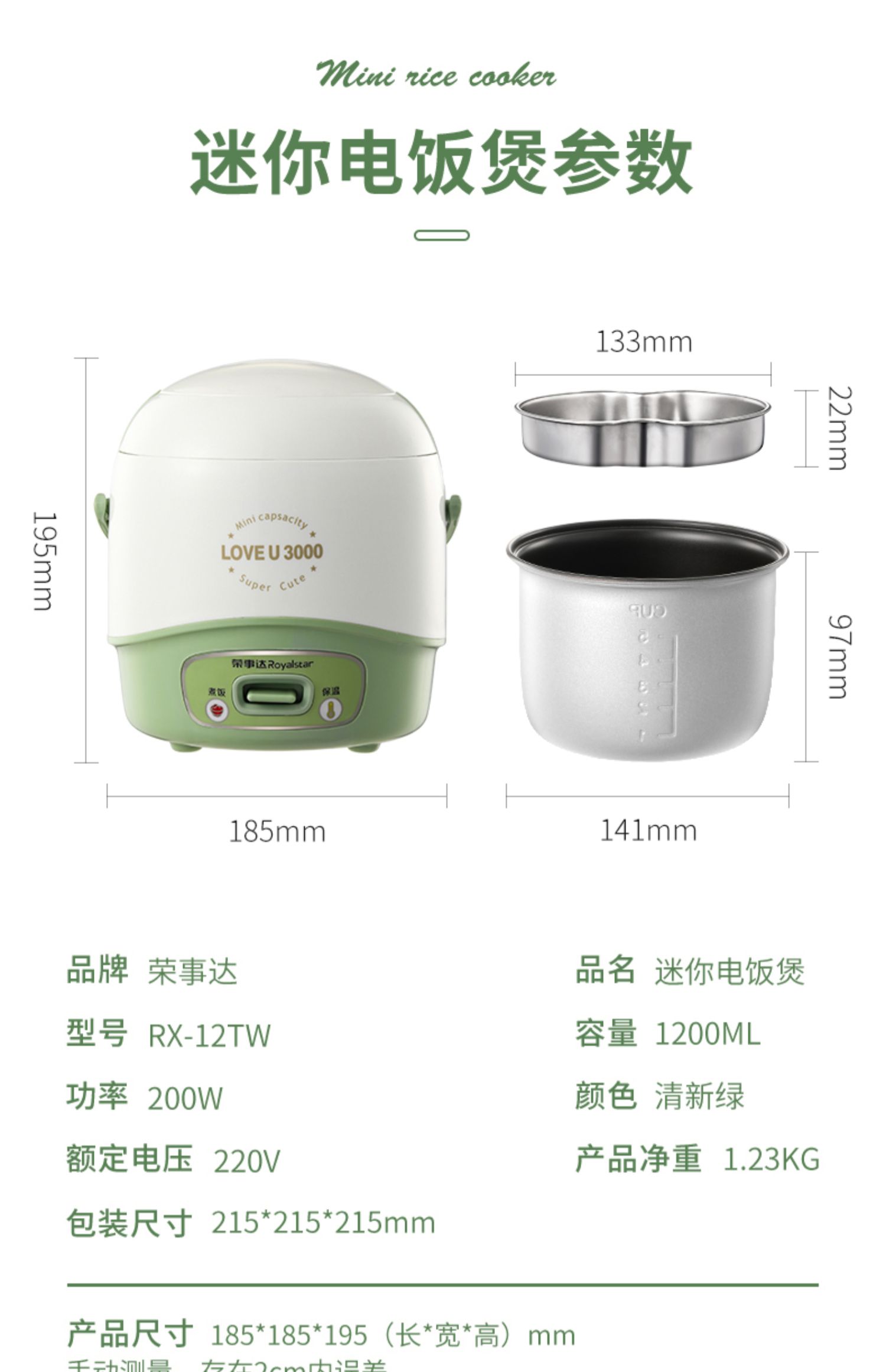 【荣事达大牌,靠谱!抢】这款迷你电饭煲一定要带走,太萌了!蒸饭煮粥都可以,上蒸下煮超方便!不沾内胆清洗快!双重保温,每口饭都是热乎乎的哦【赠运费险】