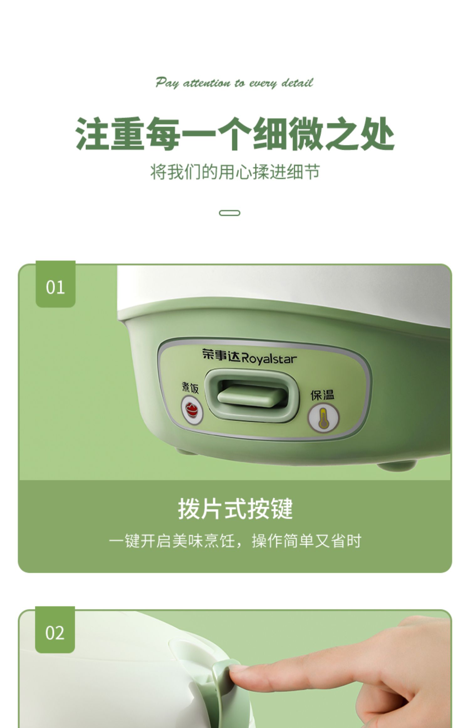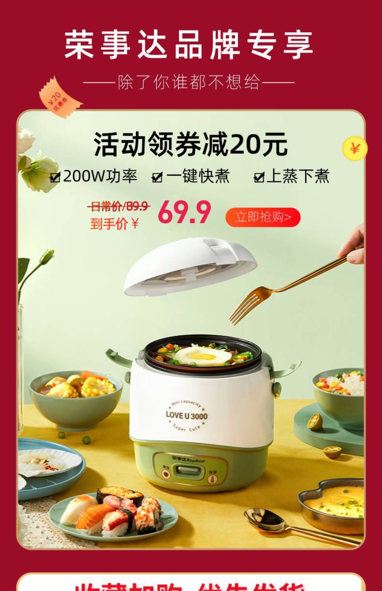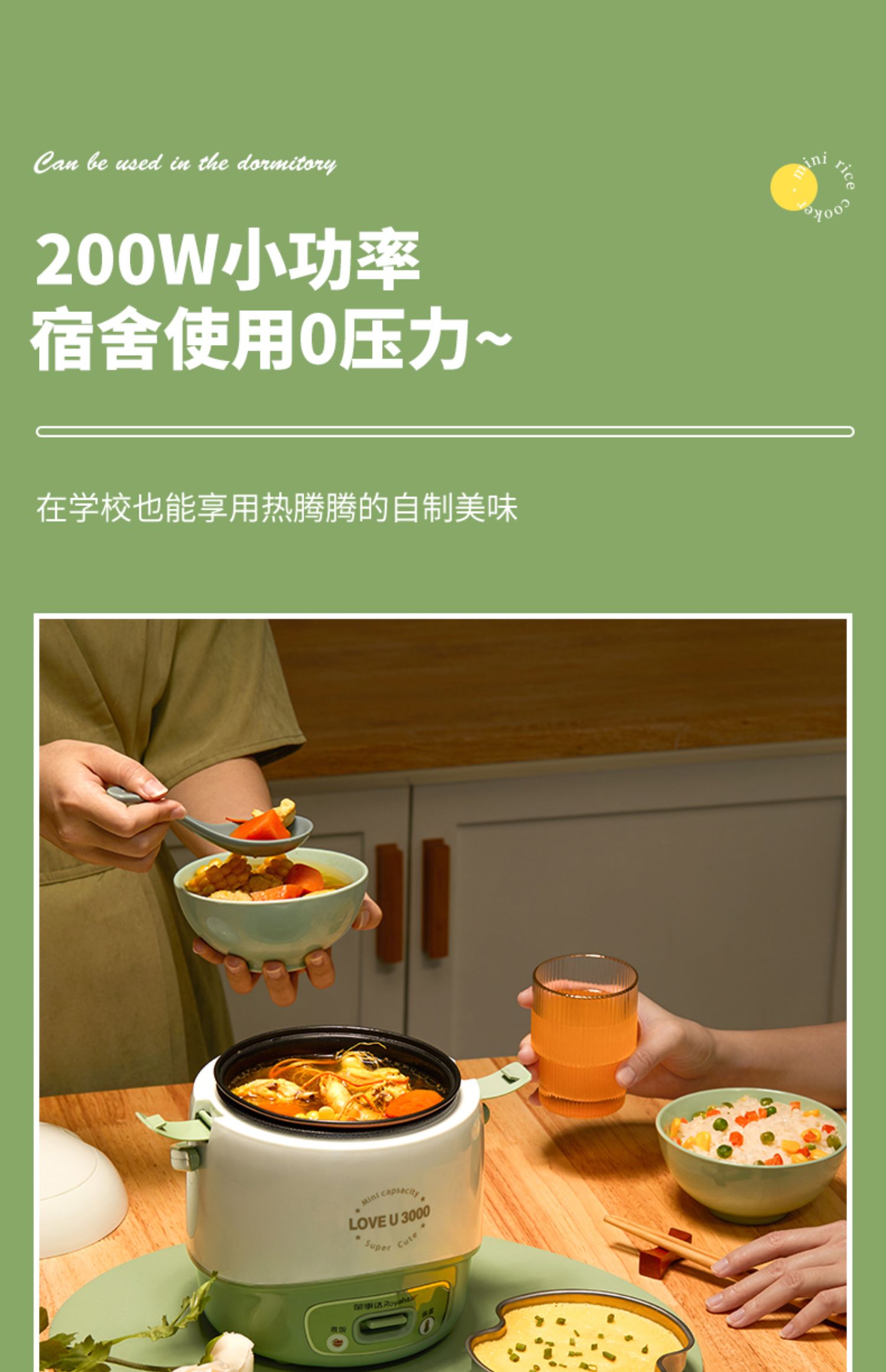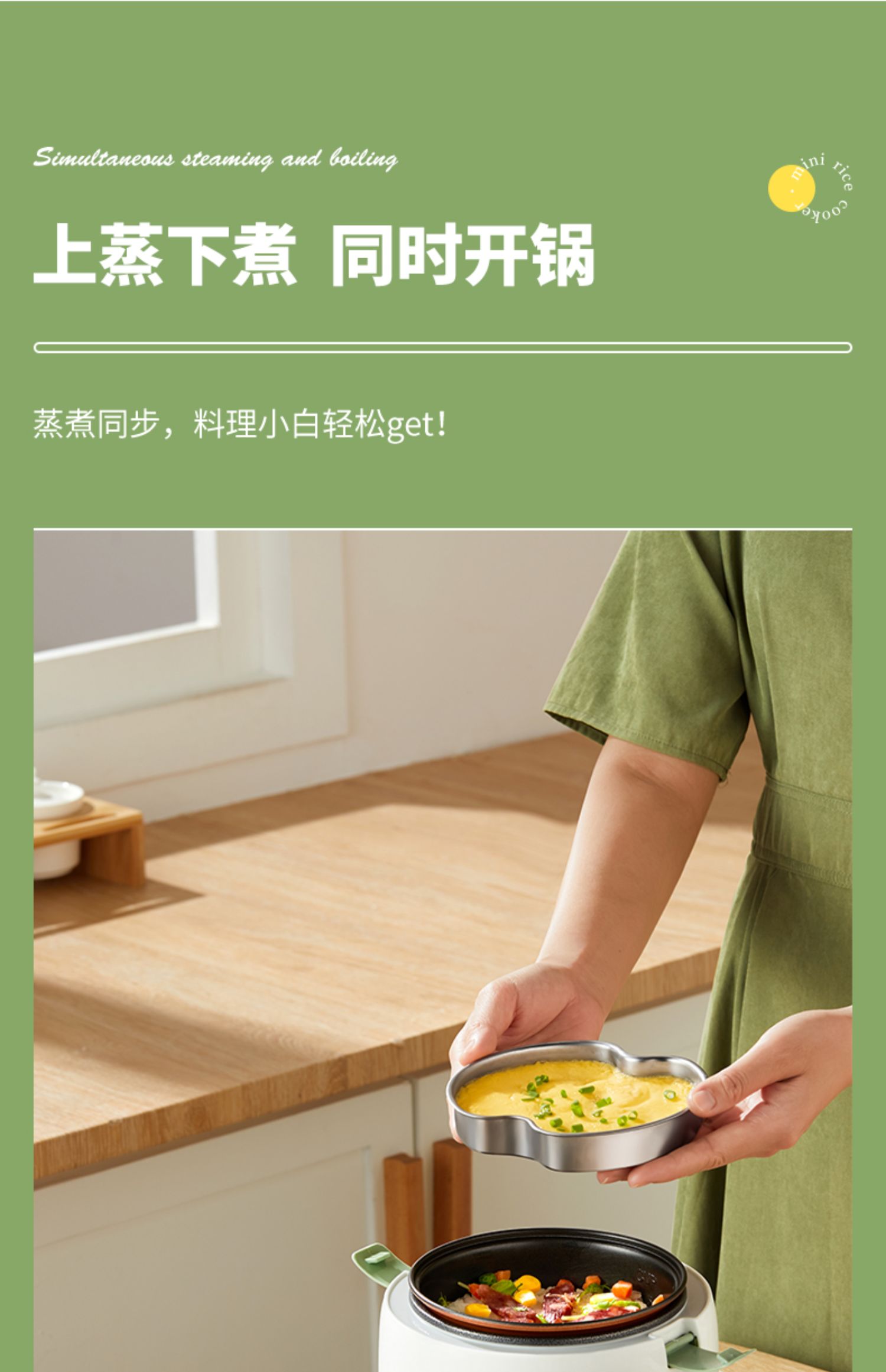 【荣事达大牌,靠谱!抢】这款迷你电饭煲一定要带走,太萌了!蒸饭煮粥都可以,上蒸下煮超方便!不沾内胆清洗快!双重保温,每口饭都是热乎乎的哦【赠运费险】