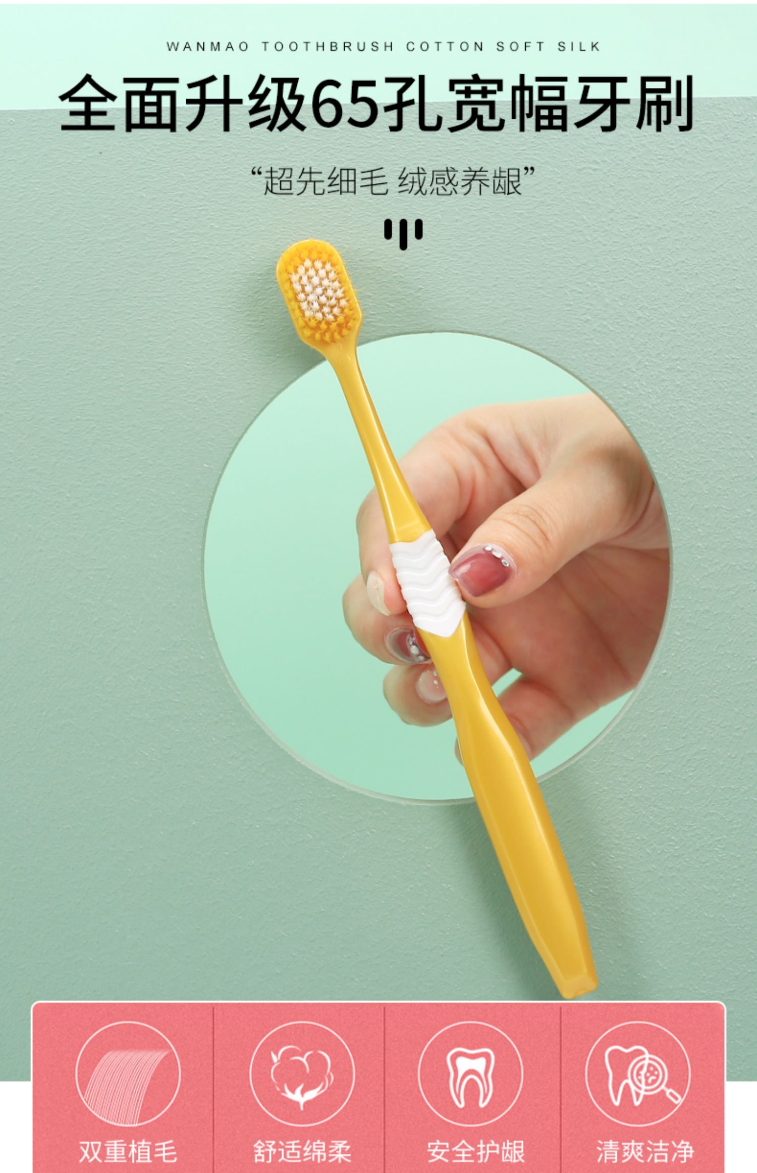 快冲!!65孔网红爆款宽头软毛牙刷,保护牙龈,刷出健康,采用加宽刷头,舒适倍护,全方面清洁牙龈死角也不放过,干净通透无残留,洁净安心!!