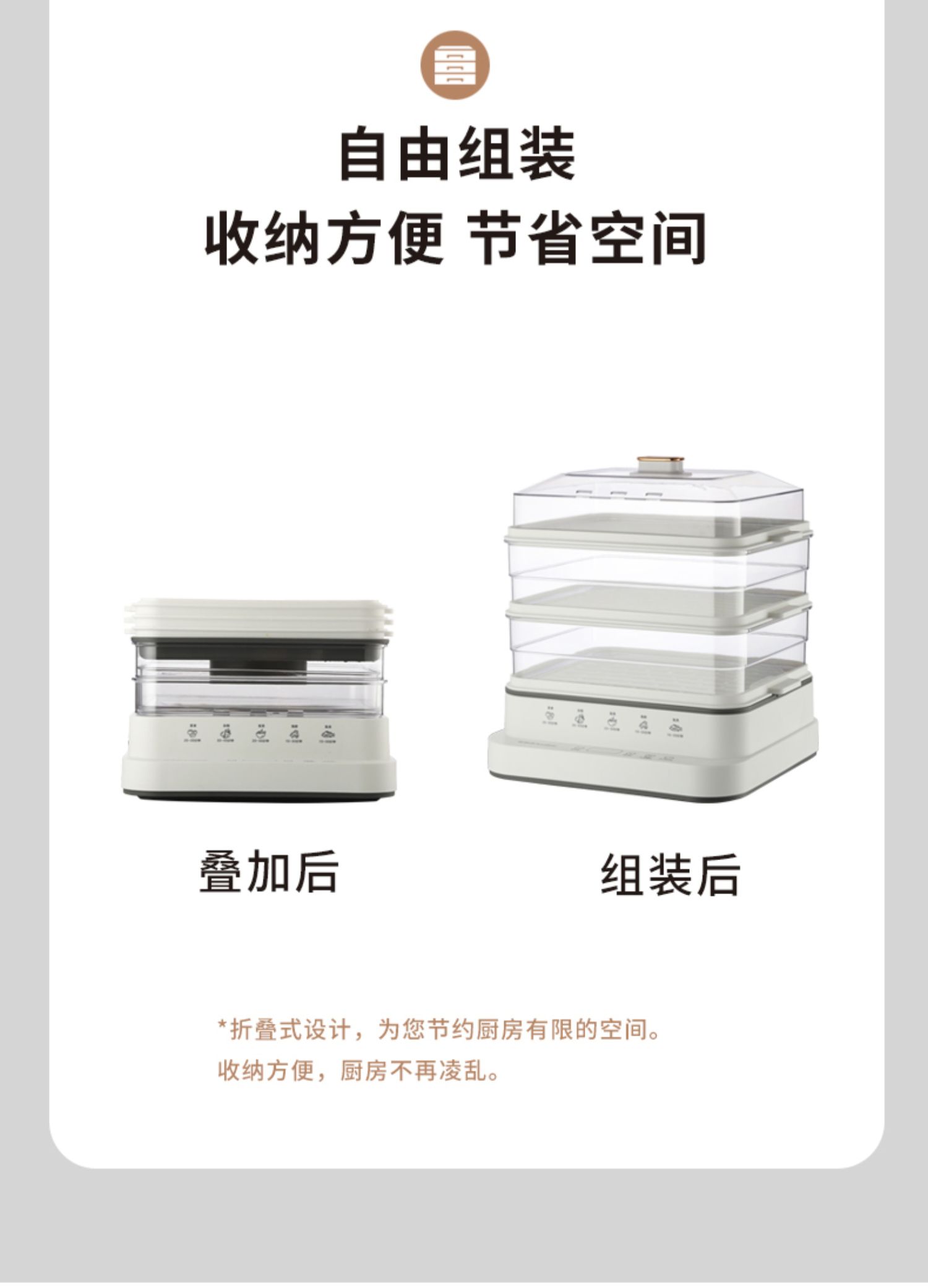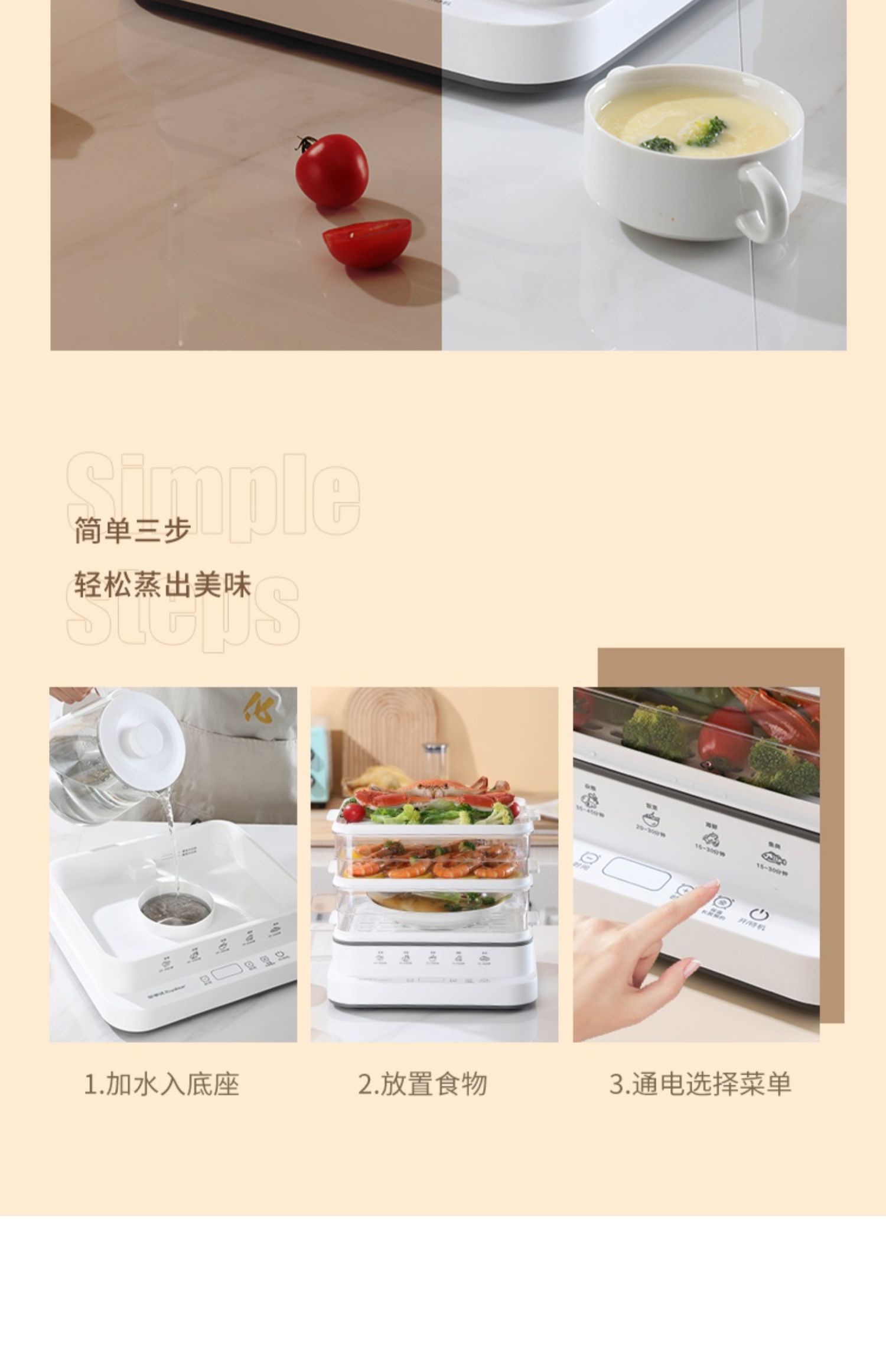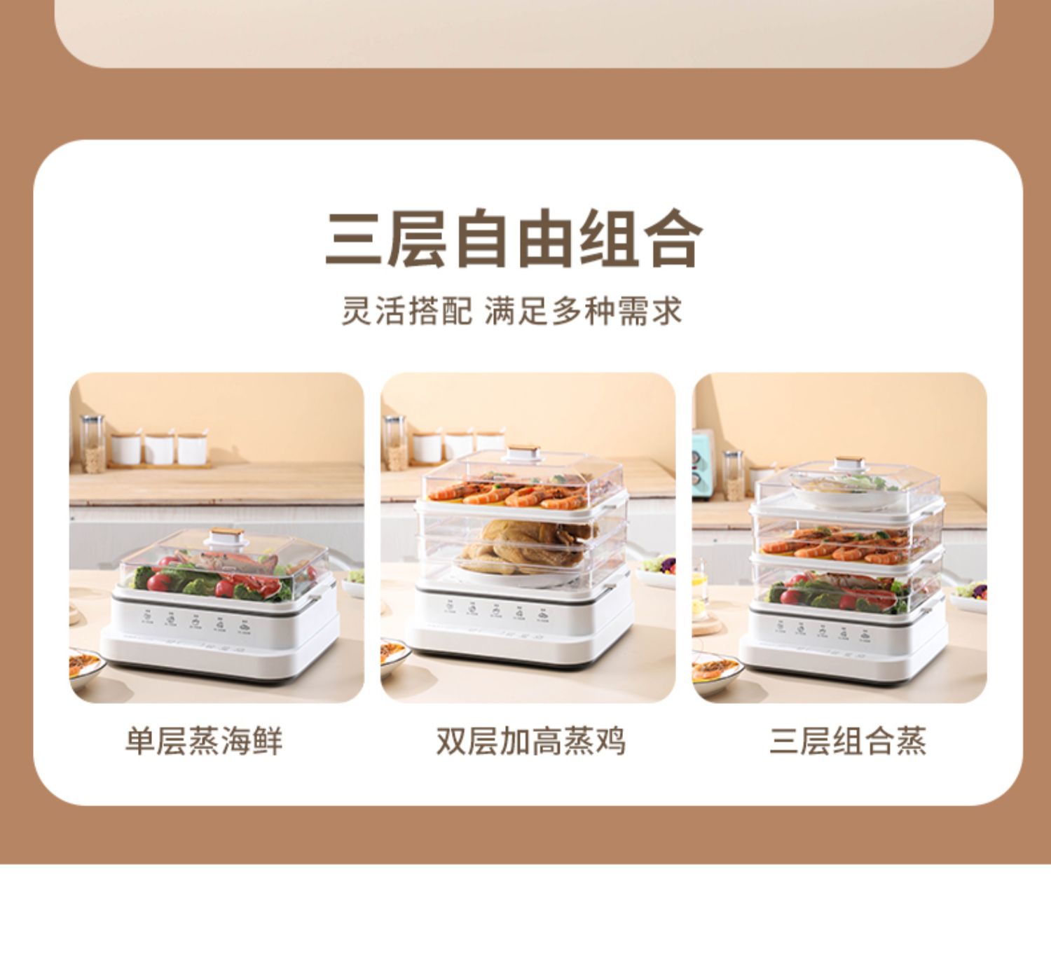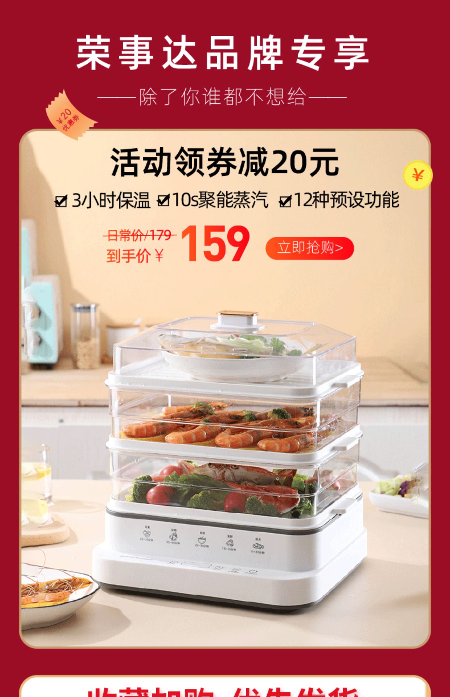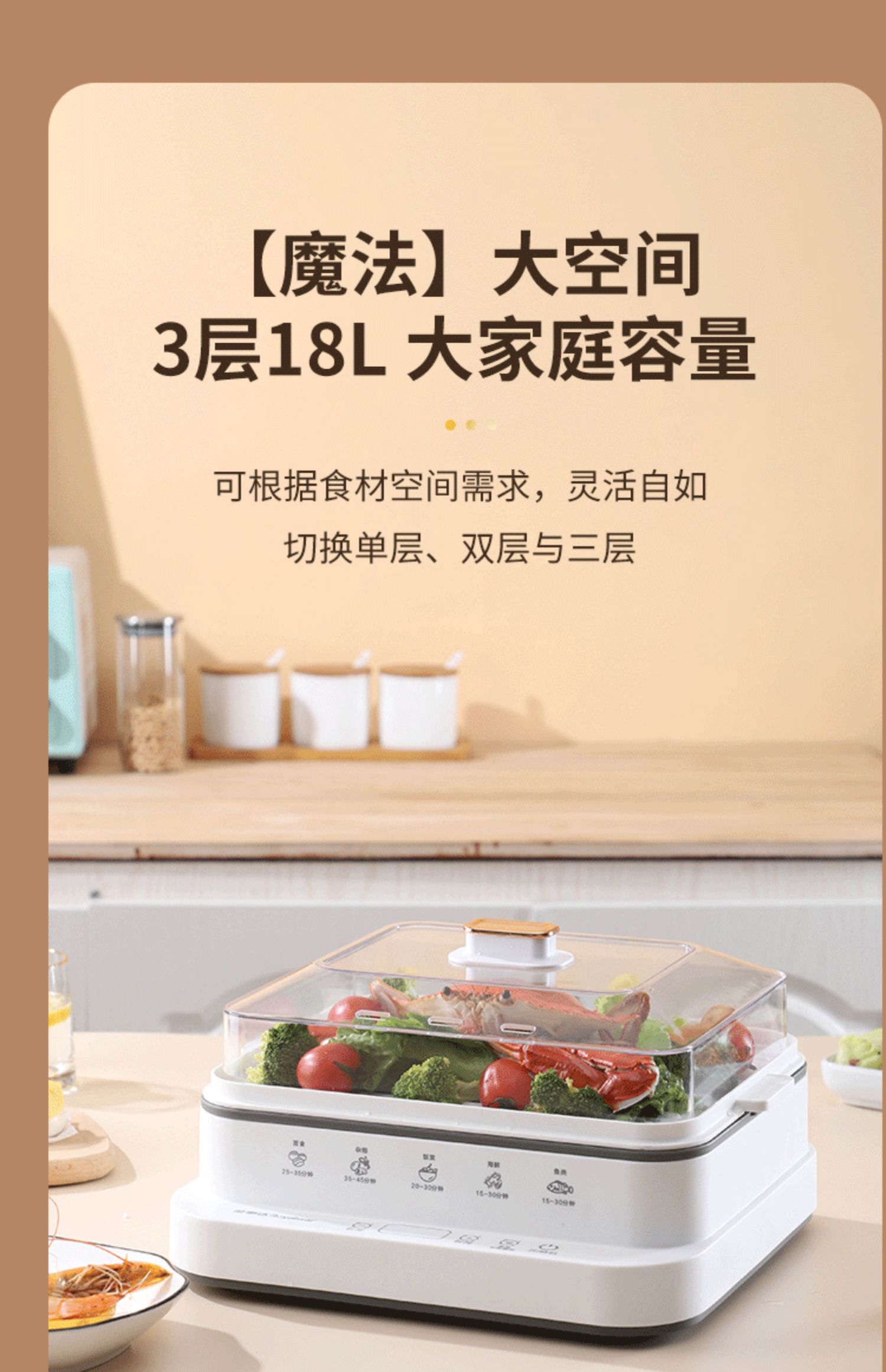 【荣事达】智能电蒸锅三层18L大容量,12H智能预约,防干烧保护,母婴级材质,安全无害!!整体加厚,不易变形,更耐高温!!上蒸下煮不耽误,做饭省时省力更高效!【赠运费险!全国联保】