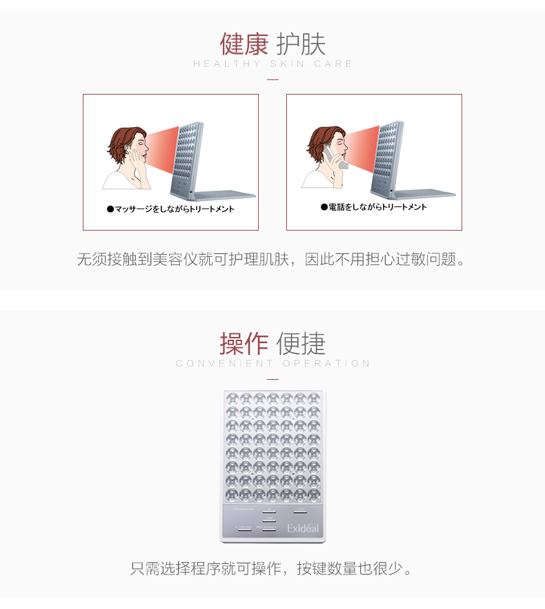 日本Exideal美容仪,光子嫩肤,蓝光淡痘修护,红橙光美白焕颜无暇,肌肤轻松娇嫩蜕变,改变肌肤命运,美容院级的肌肤护理体验。